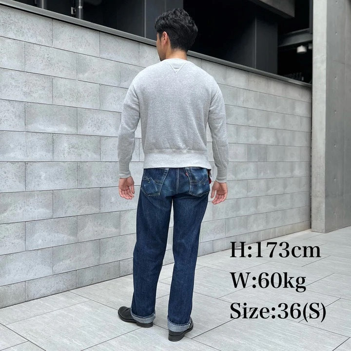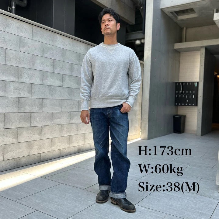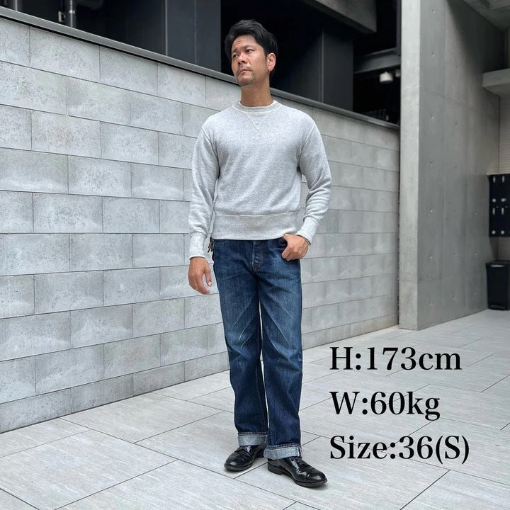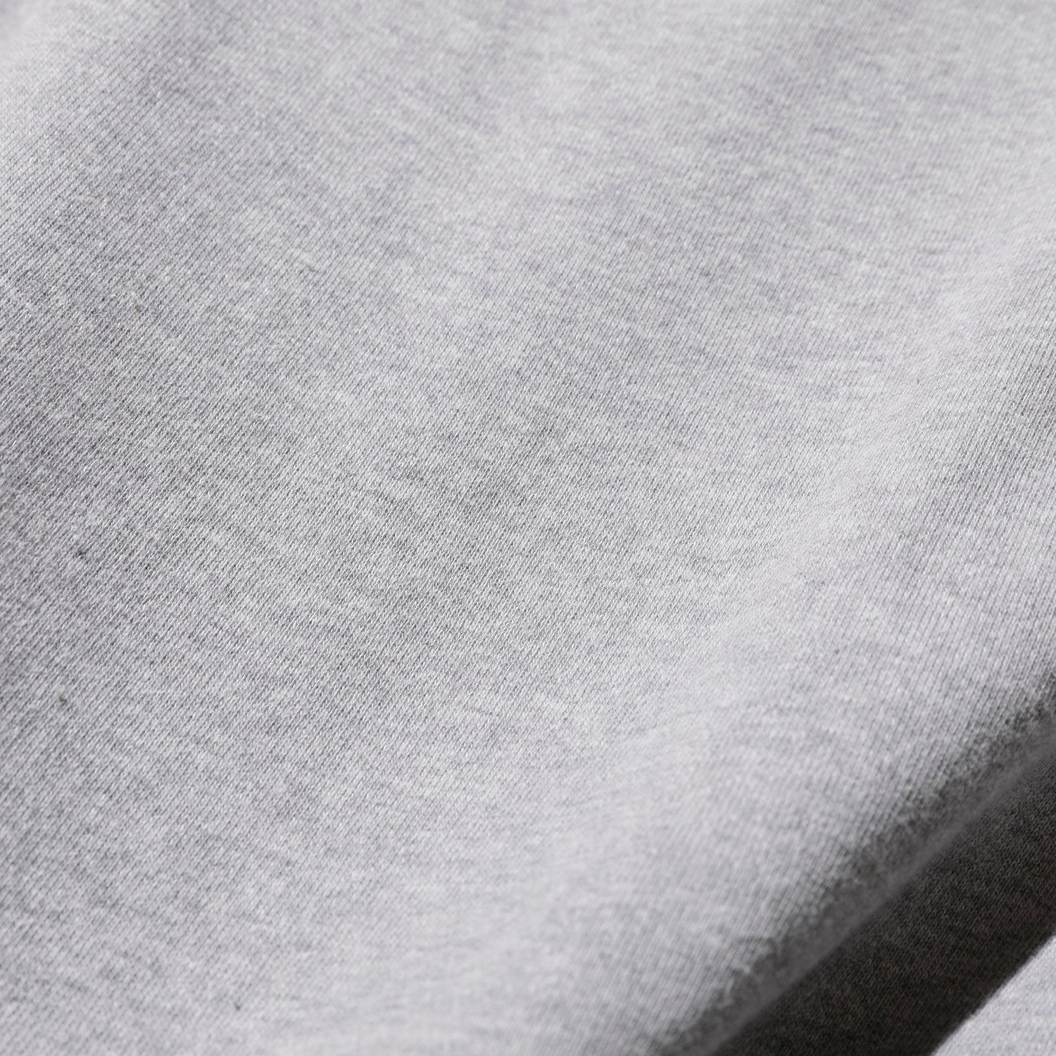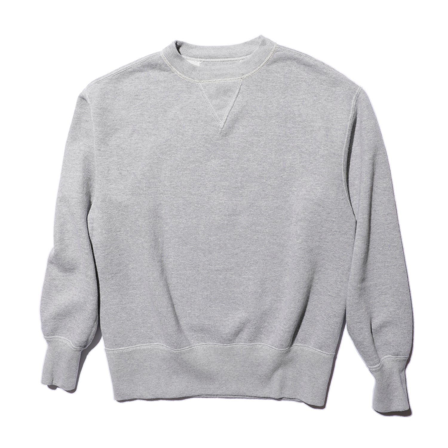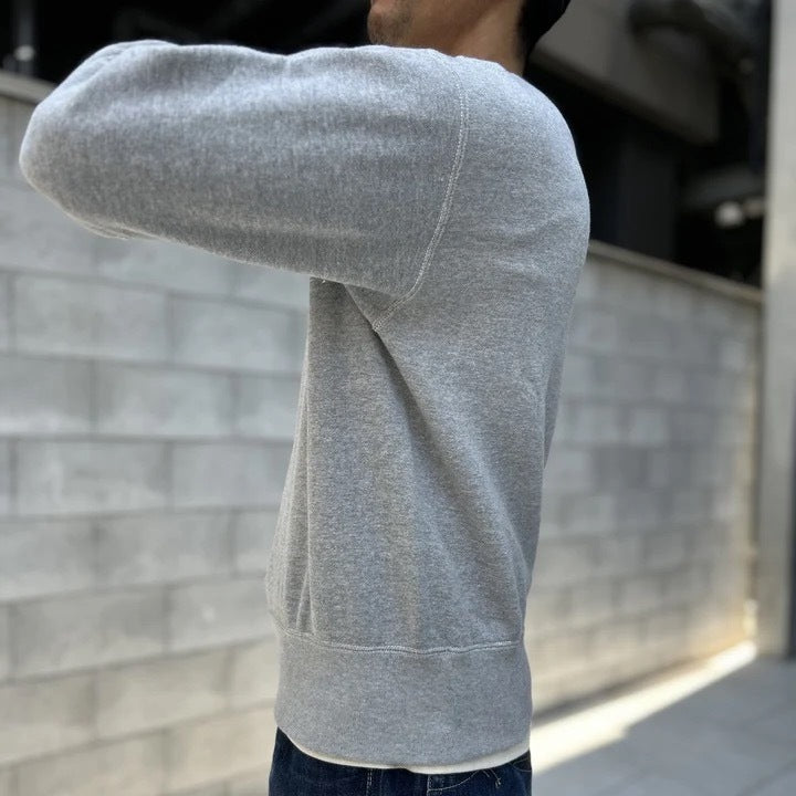 Brutal Fleeceと名付けられたこのスエットシャツは、過酷なトレーニングにも耐えられるタフな作りをイメージし、「BRUTALFLEECE(ブルータル フリース)」と名付けた究極のスウェットシャツ。40年代の両V杢グレースウェットをオリジナルで編み立て、ヴィンテージミシンを駆使して縫製。こだわりのブランド「REBUILT」の協力のもと、徹底的に作り込んだ一着です。生地は表糸に20番トップ糸、中糸に40番生成り糸、裏糸に8番生成り糸を使用し、ヴィンテージさながらの奥行きある杢グレーを再現。中糸の生成りがさりげなく表に現れるよう調整し、トップ糸ならではの自然な杢感を演出。吊り編み機特有