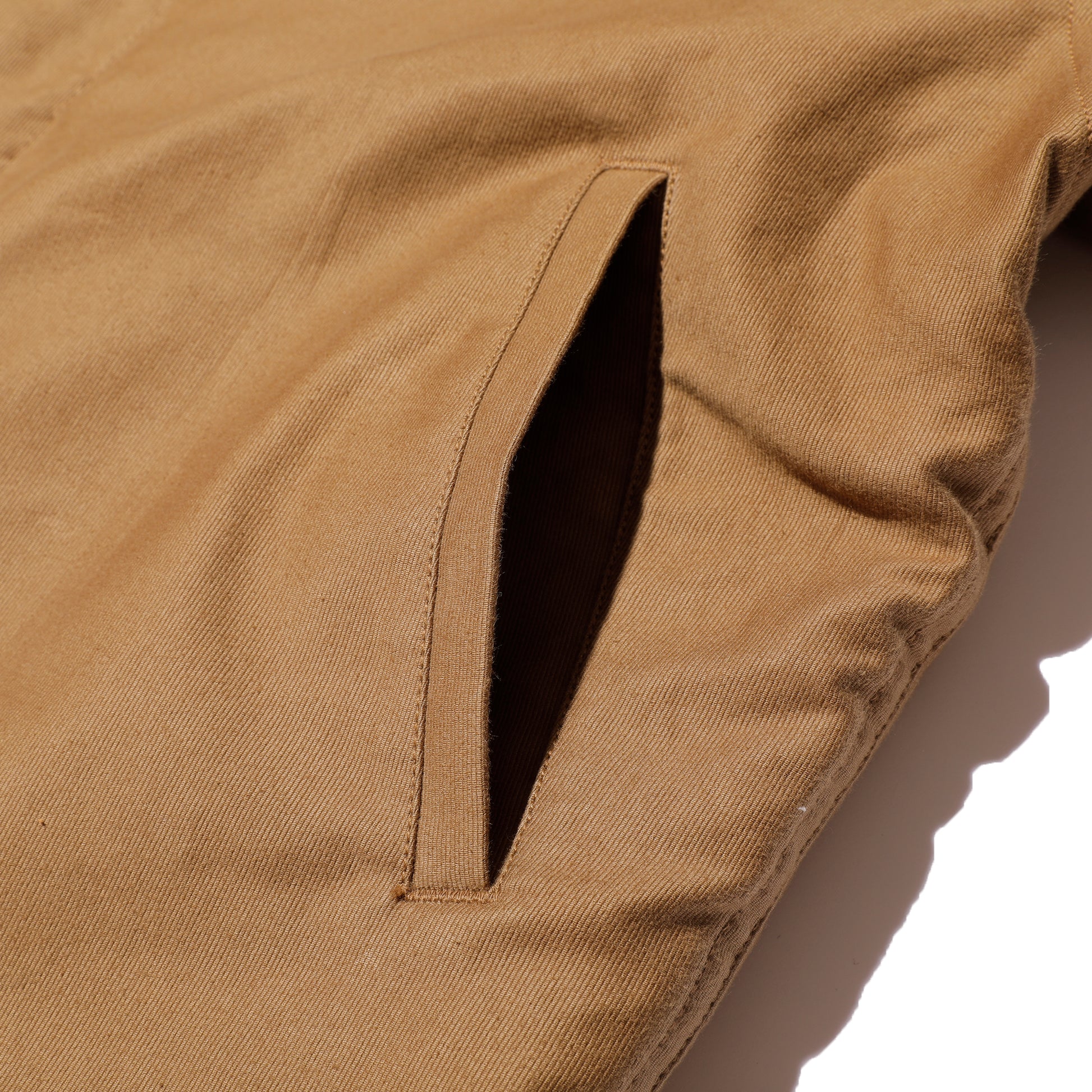 フロントはボタンとジッパーのコンビネーションで、ボタンはナットボタン、ジッパーはTALON。