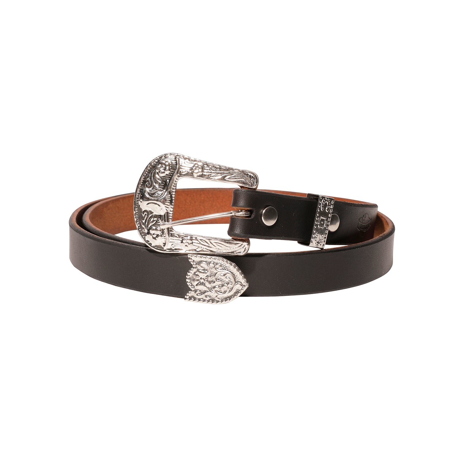 重厚な鉄製バックルとフルグレインレザーを用い、時を重ねるごとに深みと風格を増していく。無駄を削ぎ落とした実直な造りは、まるで荒野を旅する者の腰を支える道具のような存在感を放ち、使い手の人生に寄り添いながら育っていく。
