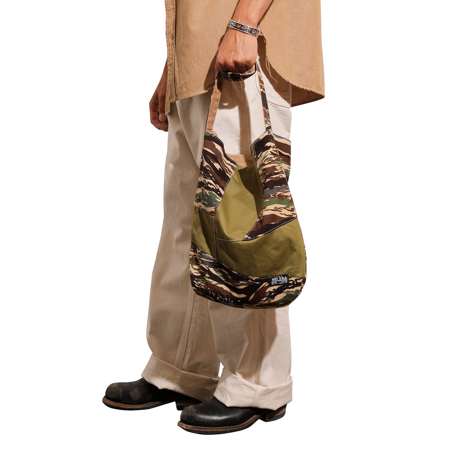 “RUST PACK” は、リバーシブル仕様で表情の異なる3種の生地を採用。JELADOが過去に商品化したファブリックを使用し、どちらもの面も歴史を纏った存在感が際立つ。ミニマルな構造は、ヘリテージギアらしい無骨さを強調。ワンハンドルの簡易的なRuck Sack型ながら、現代の必需品が収まる設計により、現代の日常にも高い実用性を備える。