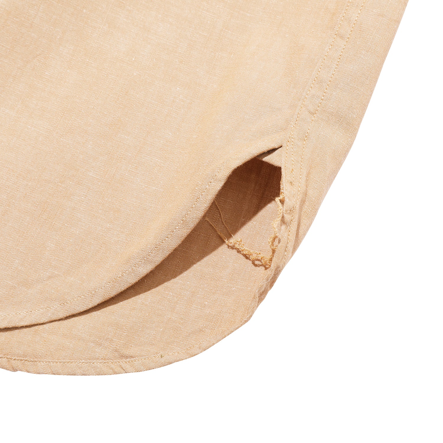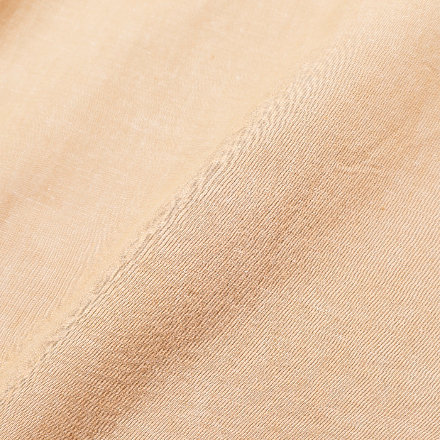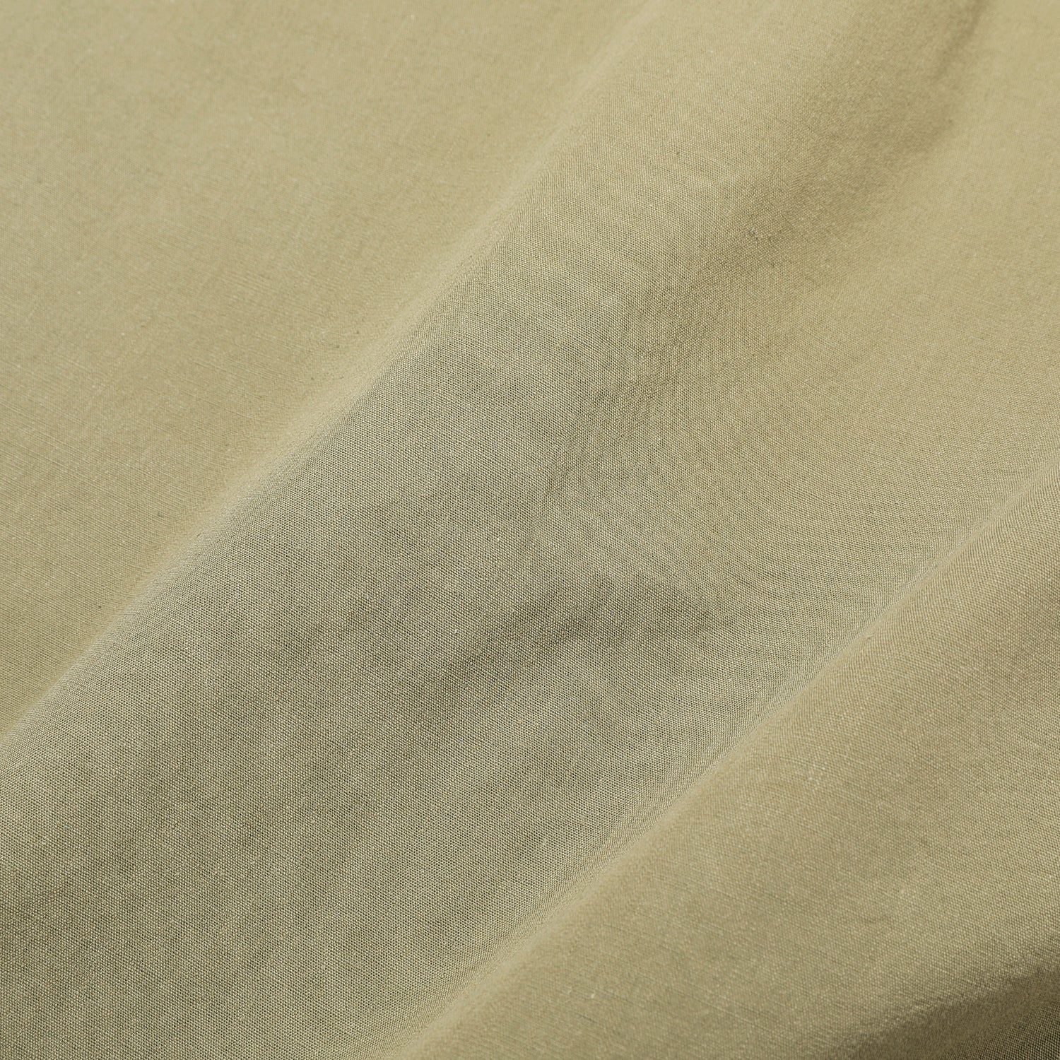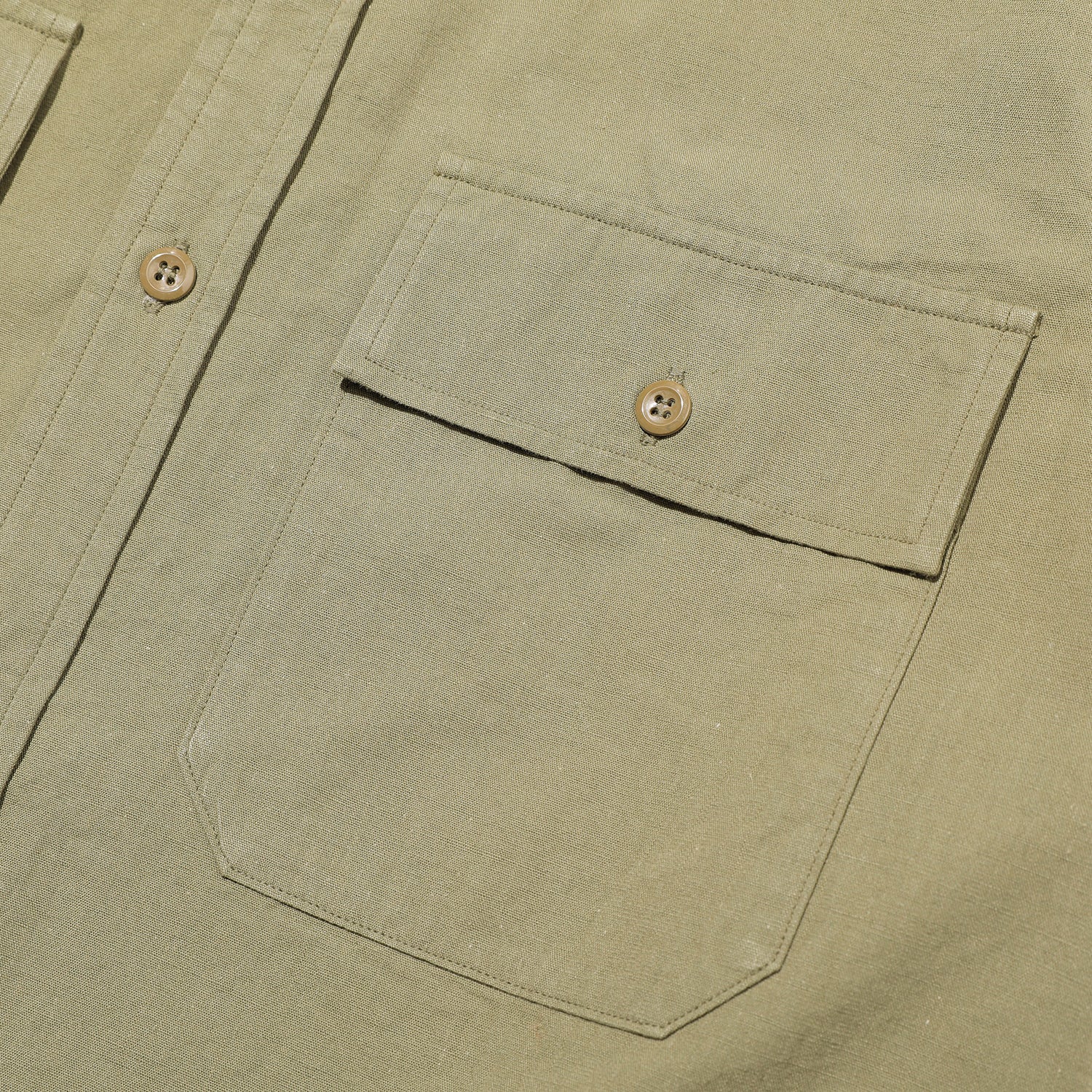 若き日の懐かしさを漂わせながらも、普遍的で長く愛用できるプロダクツを展開しています。前回ご好評いただいた OFFICER SHIRTS を、生地をアップデートして再リリースしました。1950年代頃の USCG(アメリカ沿岸警備隊) のワークシャツをベースに、当時のディテールを忠実に再現しています。身幅に対して大ぶりな胸ポケットや、角ばったフラップポケットなど、ミリタリーならではの特徴が際立つ一枚です。素材には、緯糸に綿麻混紡糸を使用したダンガリー生地を採用。麻混ならではのシャリ感と肌離れの良さを備えており、暑さの厳しい近年の夏に最適な快適さを提供します。