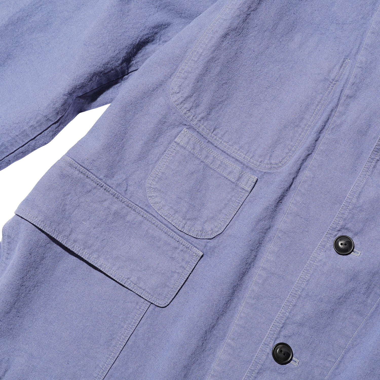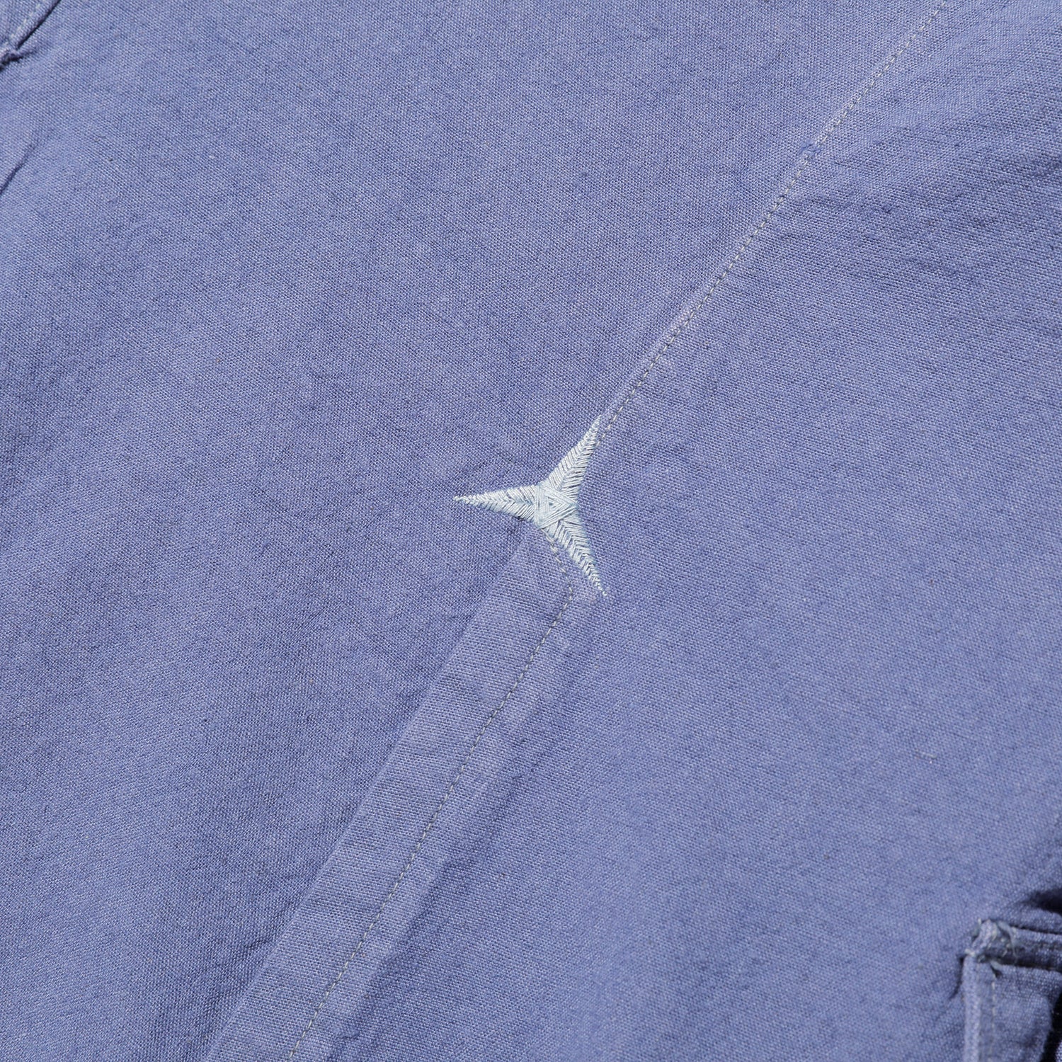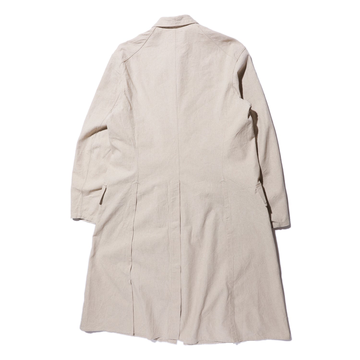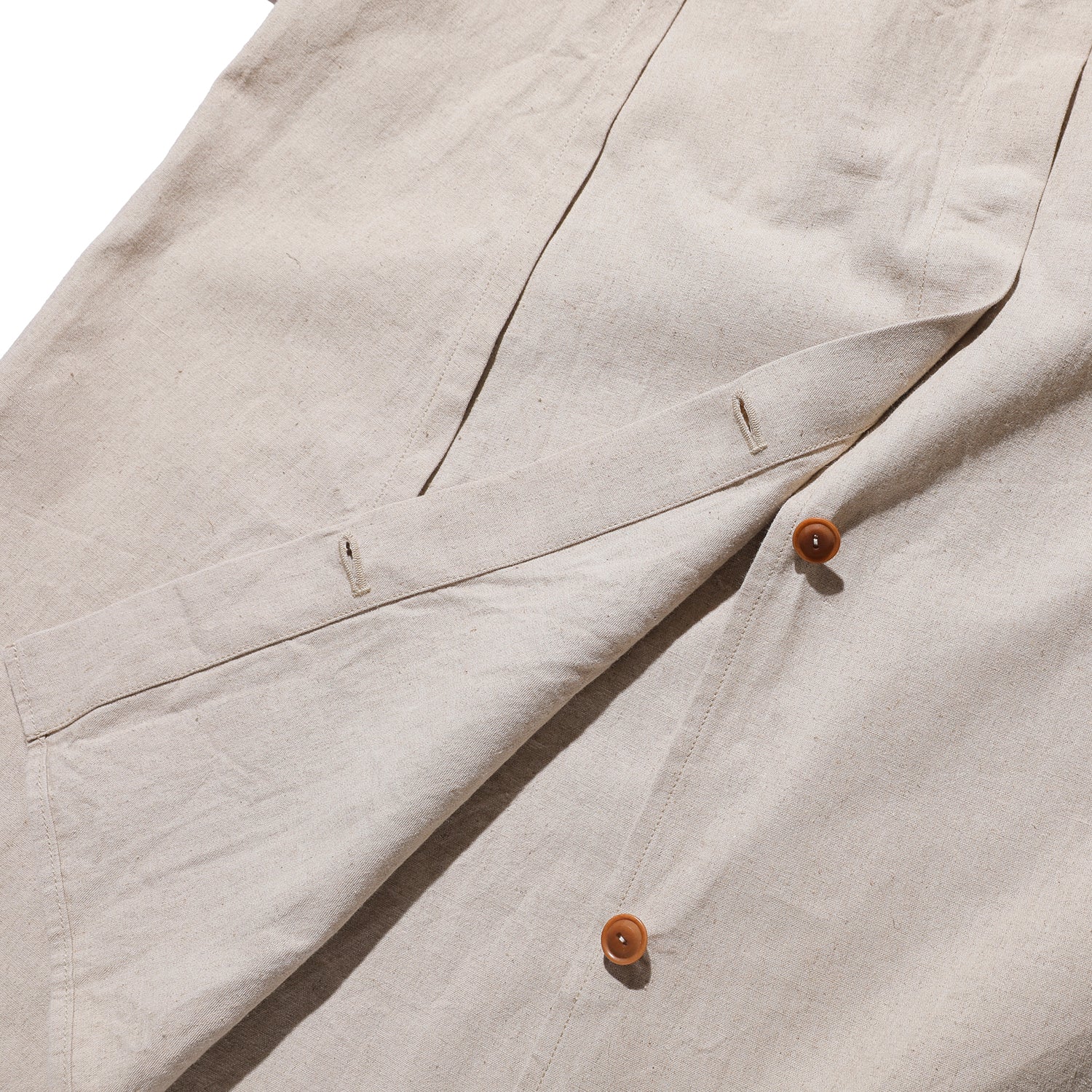 するビンテージをベースにしました。目の詰まったリネンの、手縫いで仕立てられたものです。量産品とは明らかに違う型紙や、手かがりのボタンホール、背中の裾のタックとその上にあしらわれた星形の刺繍など、現代の量産品とは明らかに違うディテールをできる限り再現しました。生地にはやや張りのある、リネンコットンのメティス(2種類以上の素材を混紡または混織した生地)を使いました。