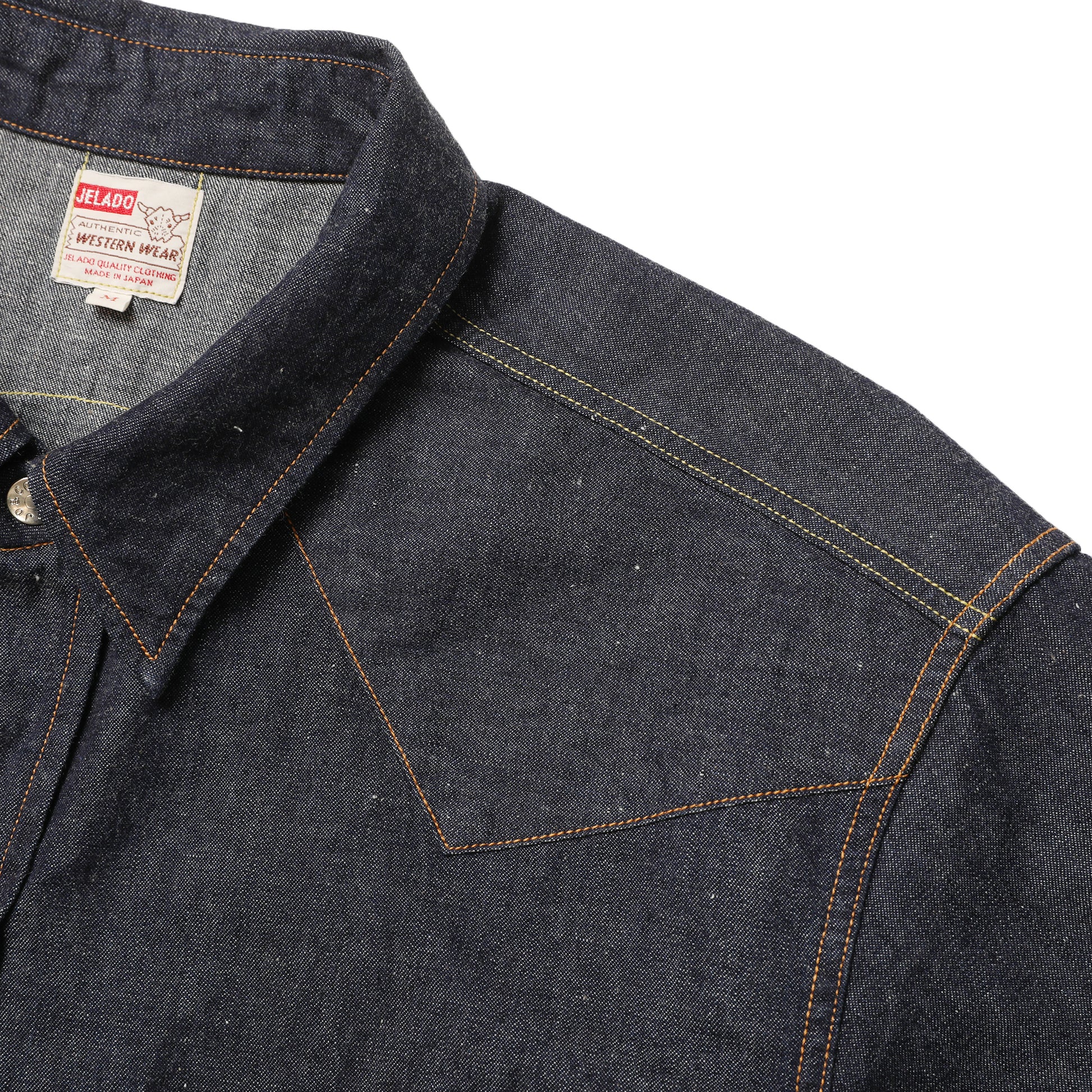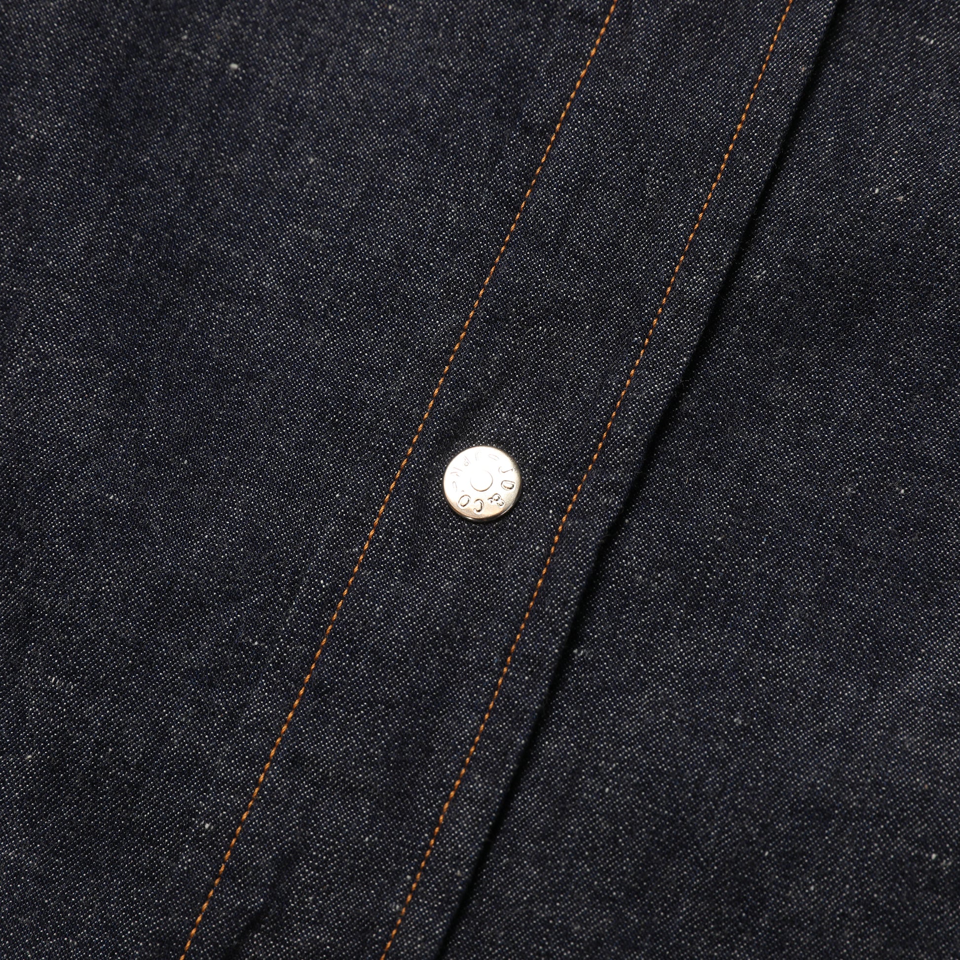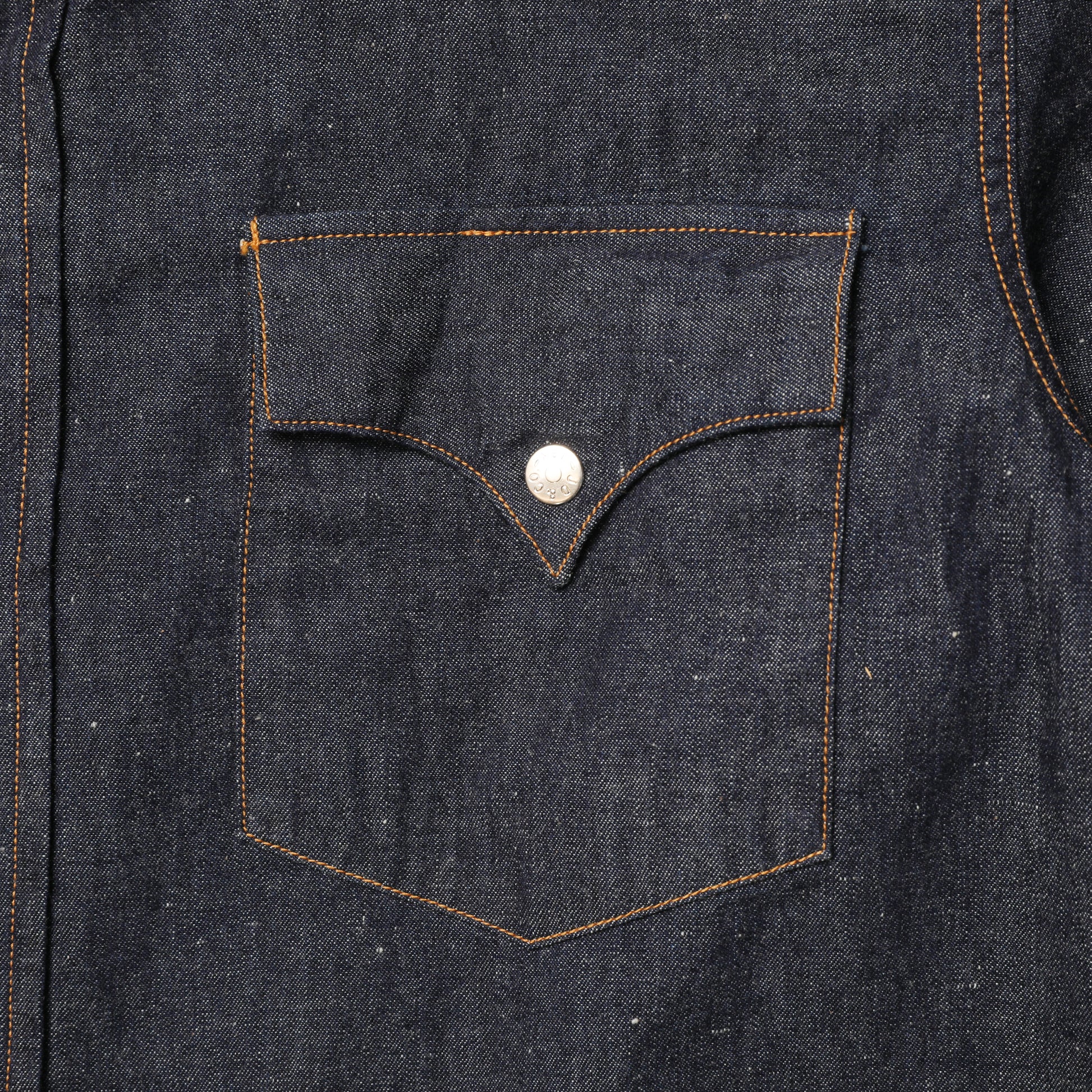 今回改めてリリースするのは、今では市場で見つけることが非常に難しくなった ショートホーンのデニムウェスタンシャツ。2025年に登場した際、発売と同時に高い注目を集め、多くの方に愛用いただいたアイテムです。その反響を受け、2026年シーズンに再び皆さまにお届けできる運びとなりました。本作は、5オンス程度の軽やかなデニムを使用し、春夏に最適な着心地と高い実用性を兼ね備えています。縫製糸の色