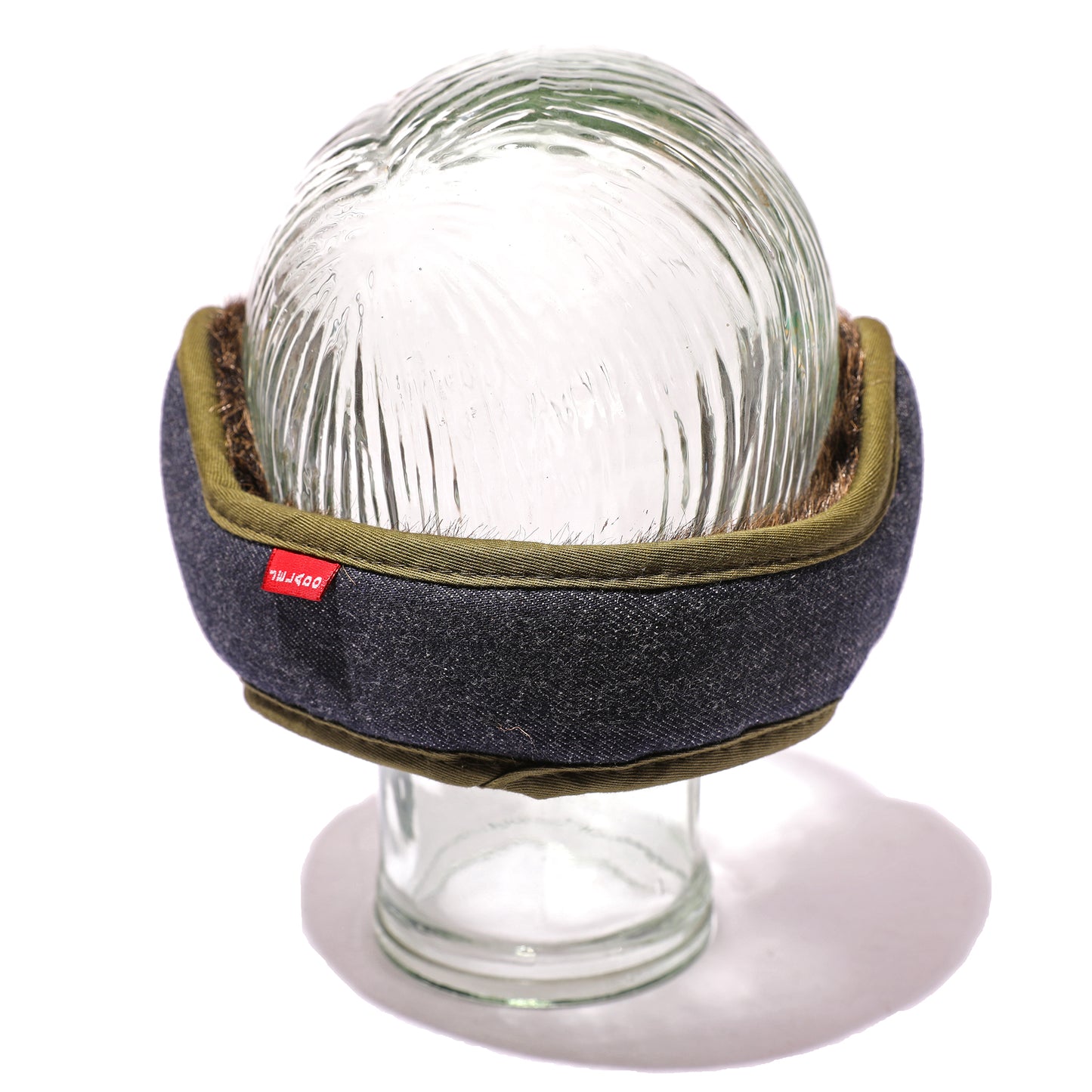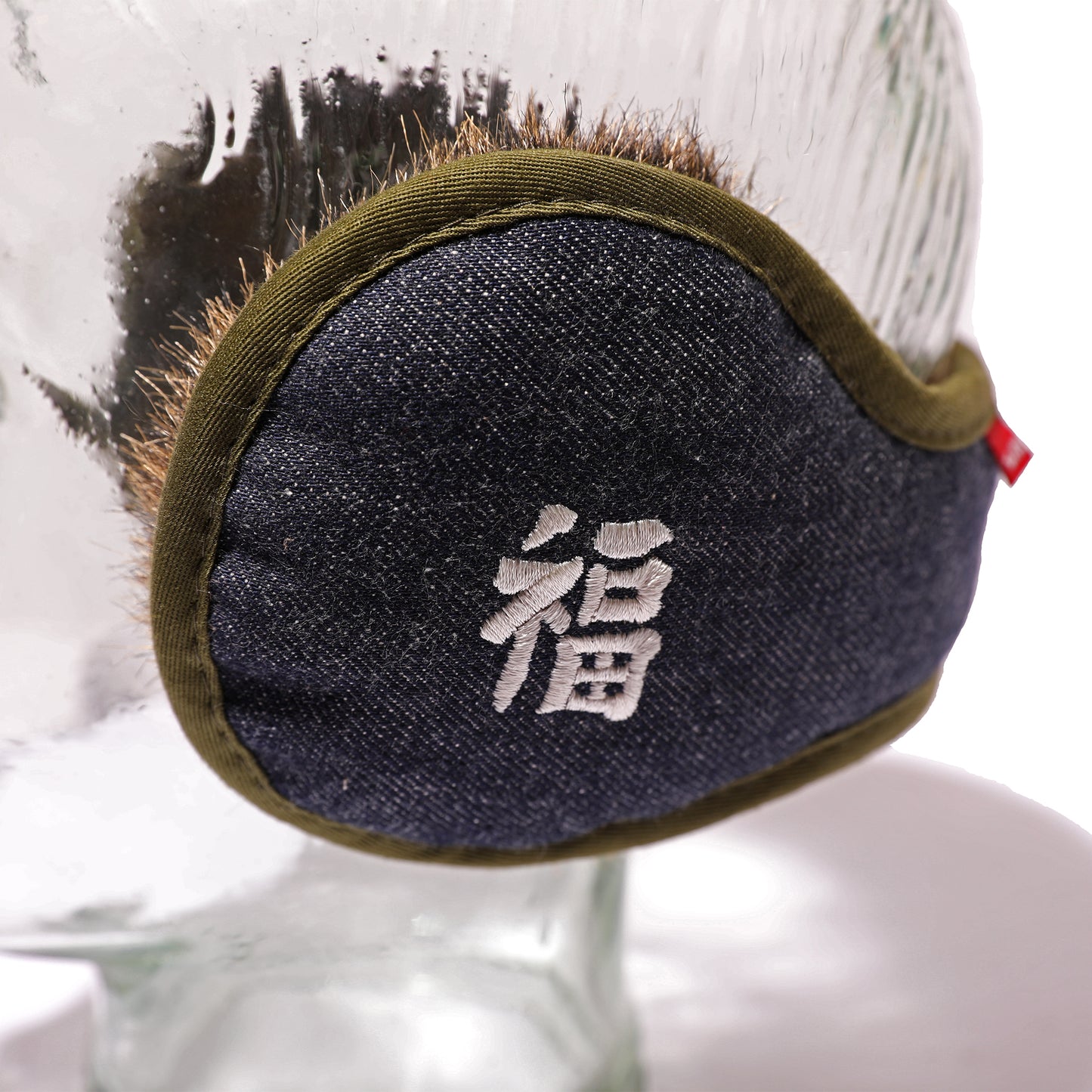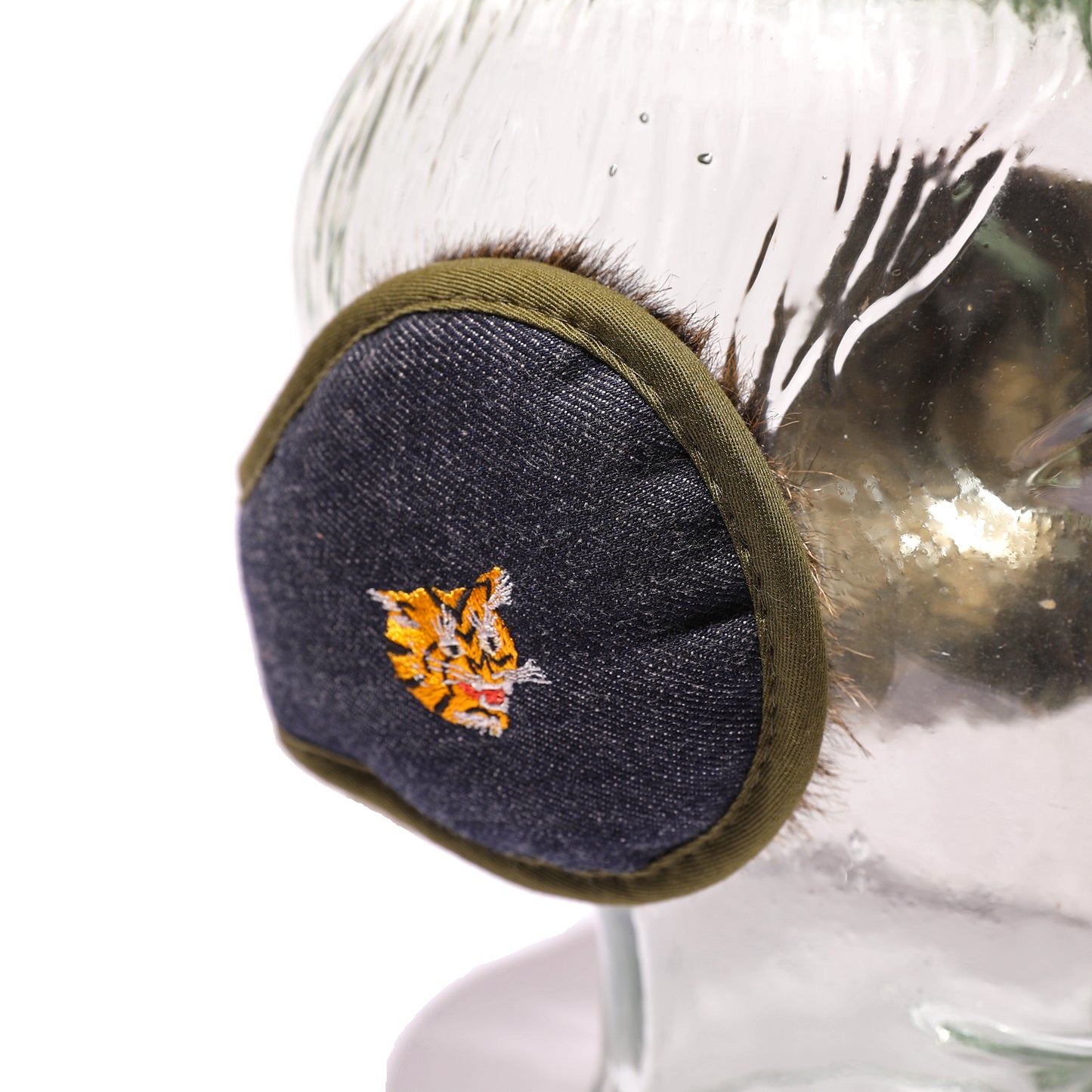 素材はラストリゾートデニムを使用し、サイドのパイピングはオリーブのツイルをつくことでアクセントを利かせました。インサイドにはアクリルファーを使用することで、保温性を上げ使い心地の良いものにしております。
