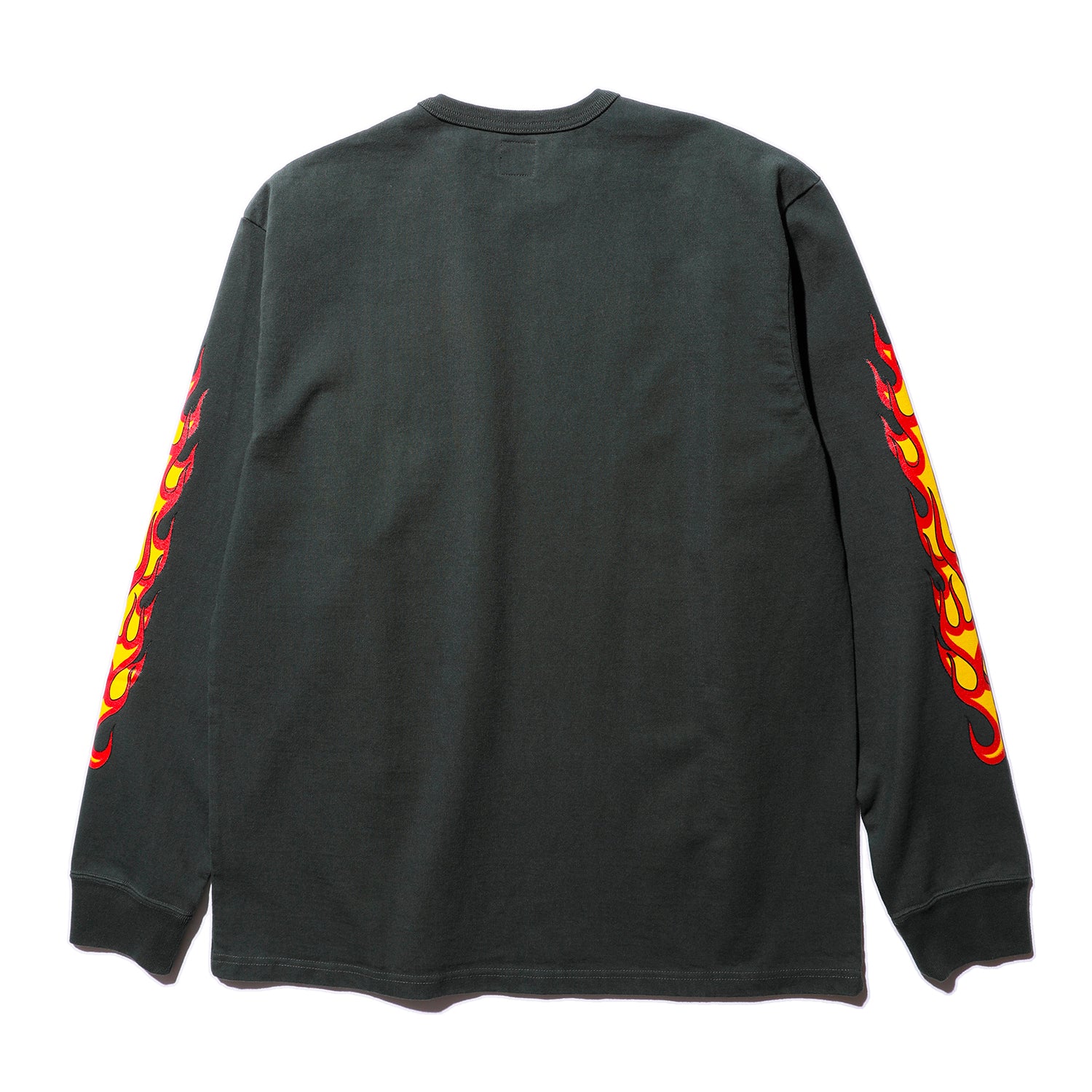 今回は、その第一弾として「FLAME SLEEVE TEE」をリリースします。90年代のリバイバルブームが再び到来している中、約30年前に人気を博した袖にファイヤーパターンが施されたプリントロンTを、より重厚感のある生地で再現しました。