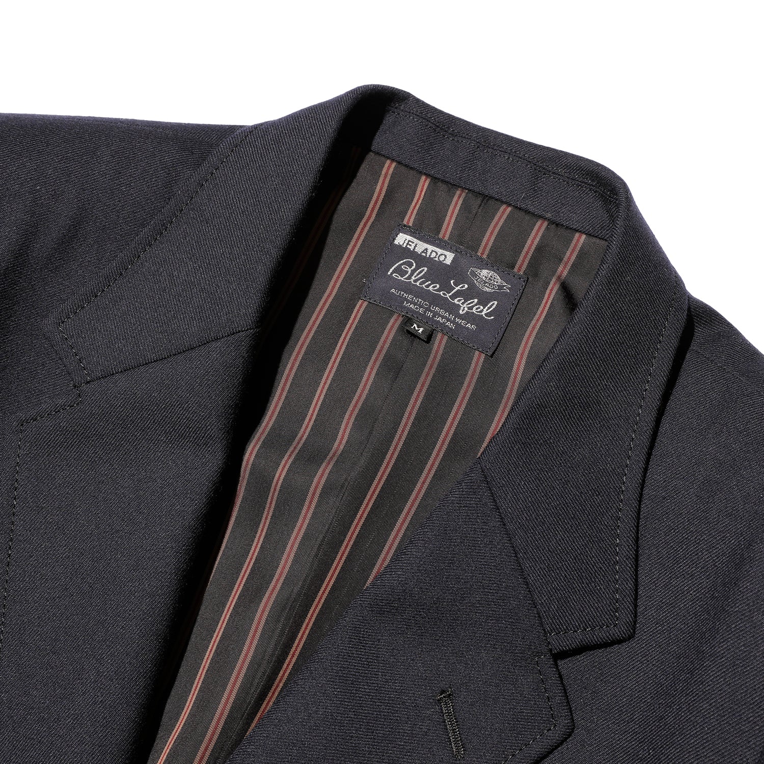 素材には、メリノウールを使用した 2/2綾織(サージ生地) を採用。トップ糸を使った先染めで、適度な毛羽感を残しつつ、高級感とカジュアルさを両立させました。しっかりとした打ち込みによる反発感と、自然なドレープ性を併せ持つのも特徴です。高級感がありながらも日常で気軽に羽織れる「紺ブレ」。デニムやチノとの相性も抜群な、この渋カジの象徴的アイテムをぜひ体感してください。