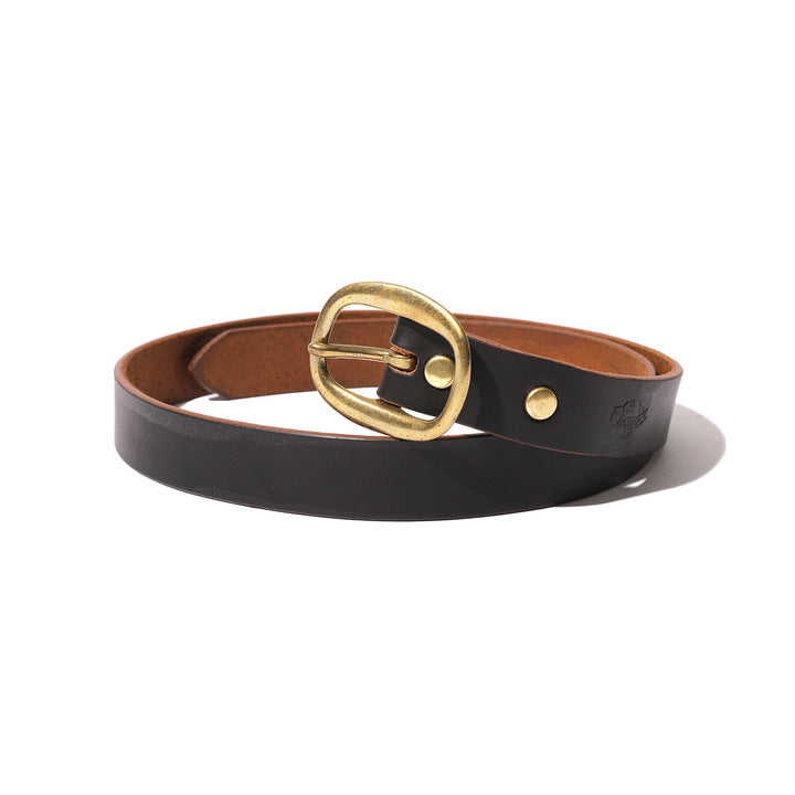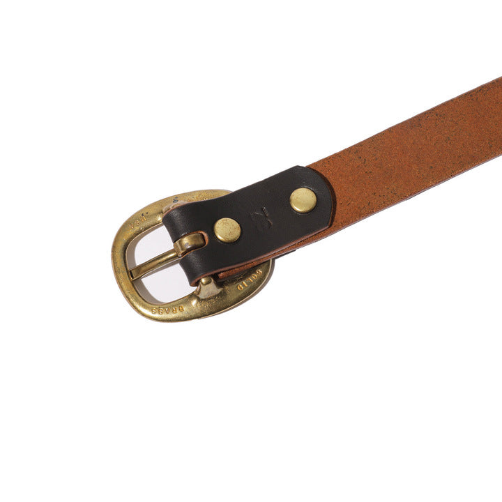 無垢な真鍮バックルと 、厚手で味わい深いフルグレインレザーを使 用し 、時を重ねるごと に深みと風格を増すよう設 計 。