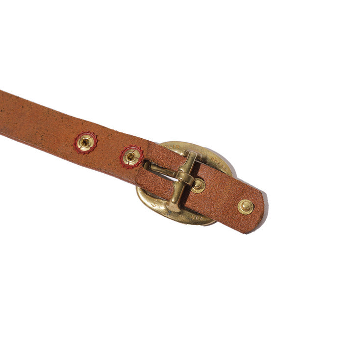 North & Juddの1960年代ごろのデッドストックで真鍮の涛物のバックルを使用し、革は 茶芯のものを今回のベルト用に生 産。