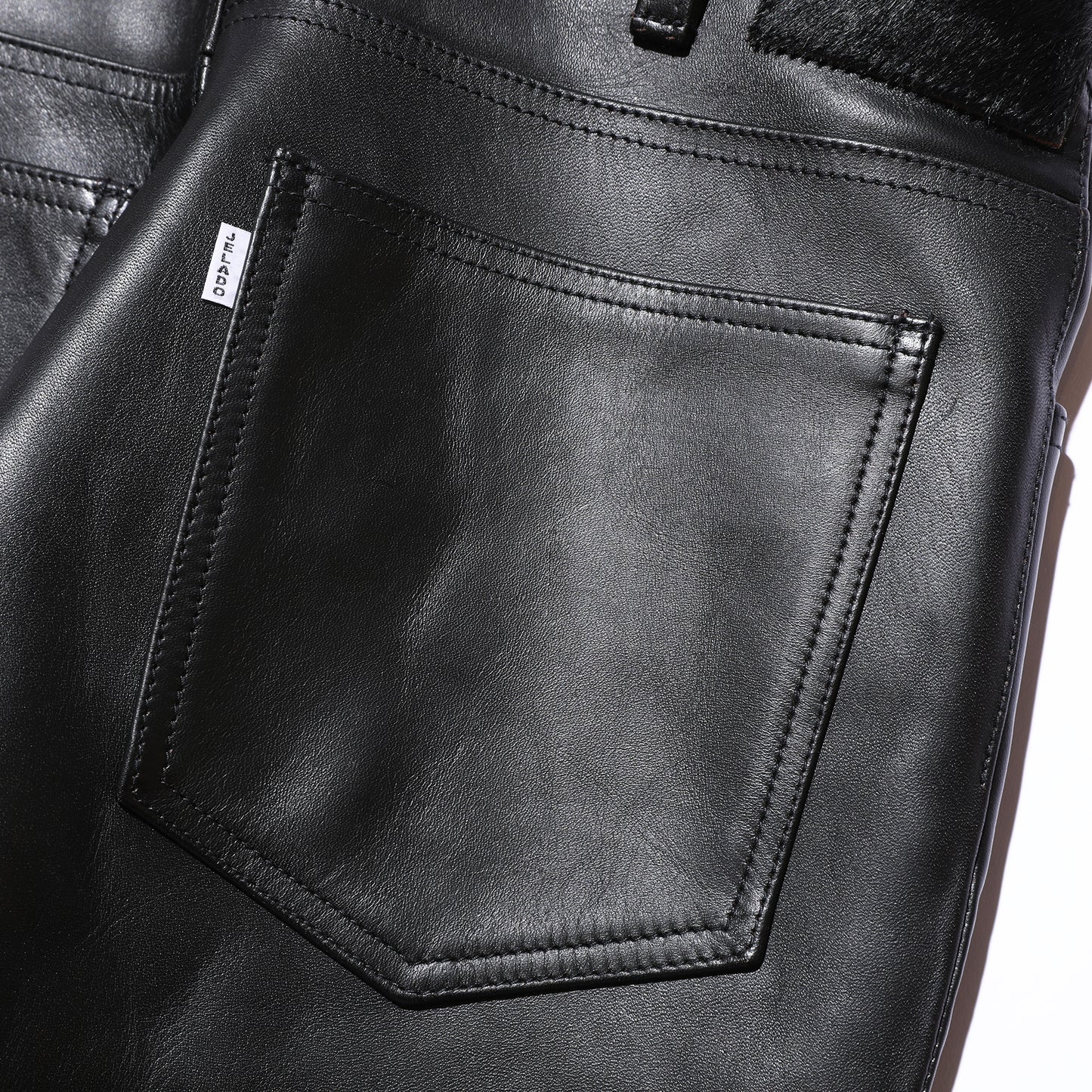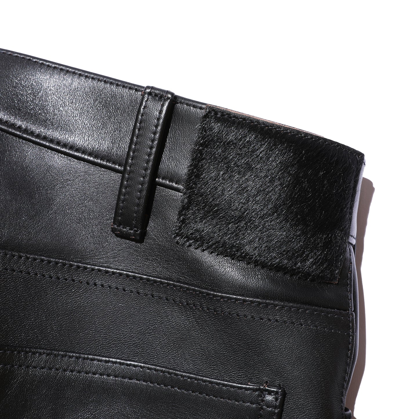 シルエットは股上の浅いスリムストレートで、レザー素材を使用することで、スタイルがより引き立ちます。レザーパンツはあまり一般的ではありませんが、ニットやナイロン製品とも相性が良く、異なるスタイルを楽しむことができる一本となっています。