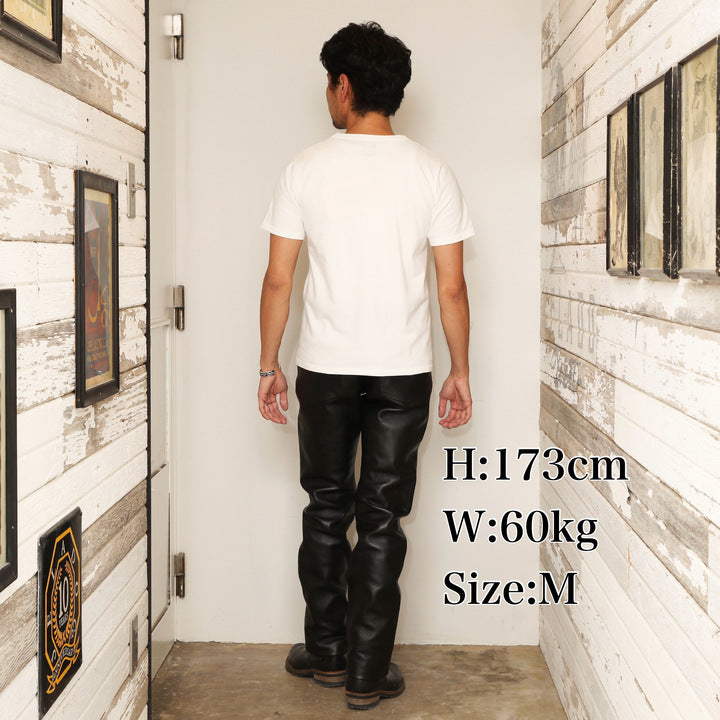 今回は、当時の後藤が熱心に買い付けていたコーデュロイパンツをベースに、レザーでの製作を行いました。