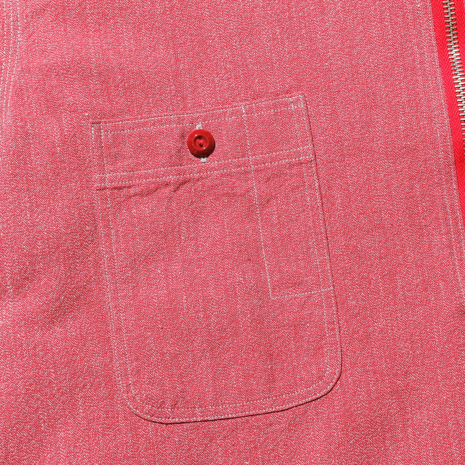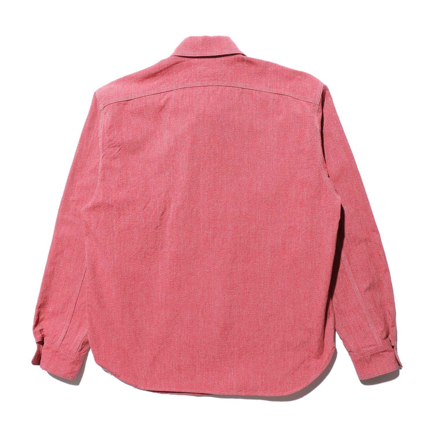 JELADOの定番「SMOKERS SHIRTS」を、クラシックな赤とネイビーの撚り杢シャンブレー生地で新たに仕立てました。経糸に色糸と細番手の白糸を撚り合わせることで、ヴィンテージらしい風合いを再現し、深みのある表情を生み出しています。 デザインのベースは1930年代の「BIG YANK」のガチャポケットシャツ。フロントの小さなポケットには、ヴィンテージならではの袋縫いを採用し、細部まで忠実に再現しました。縫製にも拘り、肩や腕部分にはトリプルステッチを施して耐久性を向上。さらに、ポケット部分にはダブルステッチを採用し、当時の雰囲気をしっかりと表現しています。 ボタンには、古いワークシャツに見られる6角形のボタンを使用。耳付きのマチ仕様とすることで、「BIG YANK」のオリジナルにあった袋縫いのマチと耳付きマチの両方のスタイルを再現しました。また、縫製には綿糸を使用しており、洗濯や乾燥機にかけることで糸が詰まり、肩や腕周りにアタリが生まれるよう工夫されています。 サイズ感は適度にスリムでスッキリとしたシルエット。存在感がありつつも、質実剛健な作りとファッション性を兼ね備えた一着に仕上げています。ワークシャツをオシャレに楽しみたい方や、本物志向の方にもご満足いただける仕上がりです。 着用を重ねることで色が落ち、ヴィンテージ特有の経年変化を楽しめるのもこのシャツの魅力。 長く愛用するほどに個々の風合いが生まれ、唯一無二の一着へと育っていきます。