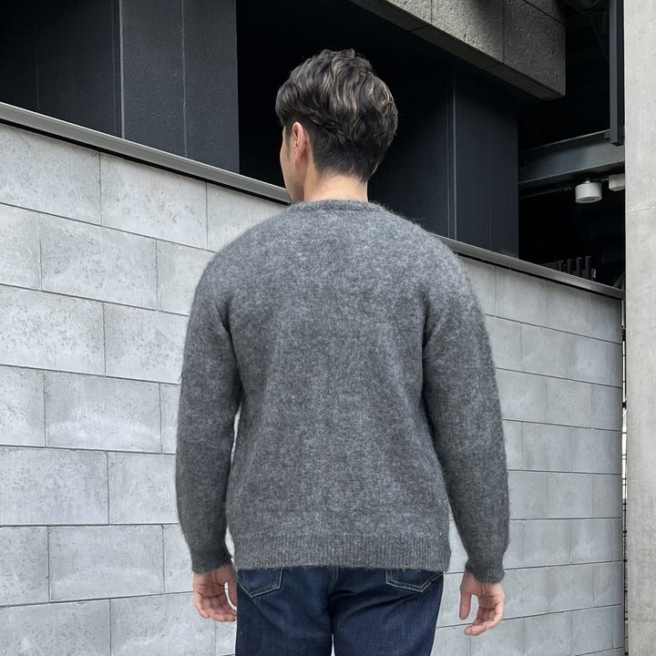 BASIC COLLECTIONから毎年好評の定番モヘアカーディガン「COBAIN」が、今季も新たな配色で登場。細く上質なキッドモヘアを使用し、極上の肌触りを実現した一着です。 今期は昨年同様の3色展開。ヴィンテージ市場でも珍しく高騰を続ける「モンドリアンチェック」2色(BRULEEとHARLEQUIN)に加え、ASHの計3パターンをラインナップしました。生地の厚みを保ちながら、ギリギリまで起毛をかけることで、軽さと暖かさを両立。レイヤードにも適した万能なアイテムです。 袖丈はやや短めに調整し、着用を重ねてもシルエットが崩れにくい仕様。デニムやロンTの上に羽織るだけで洗練されたスタイルが完成する、まさに極上の一枚。ヴィンテージの柄物モヘアカーディガンが入手困難な今、ぜひ手に入れてほしいアイテムです。
