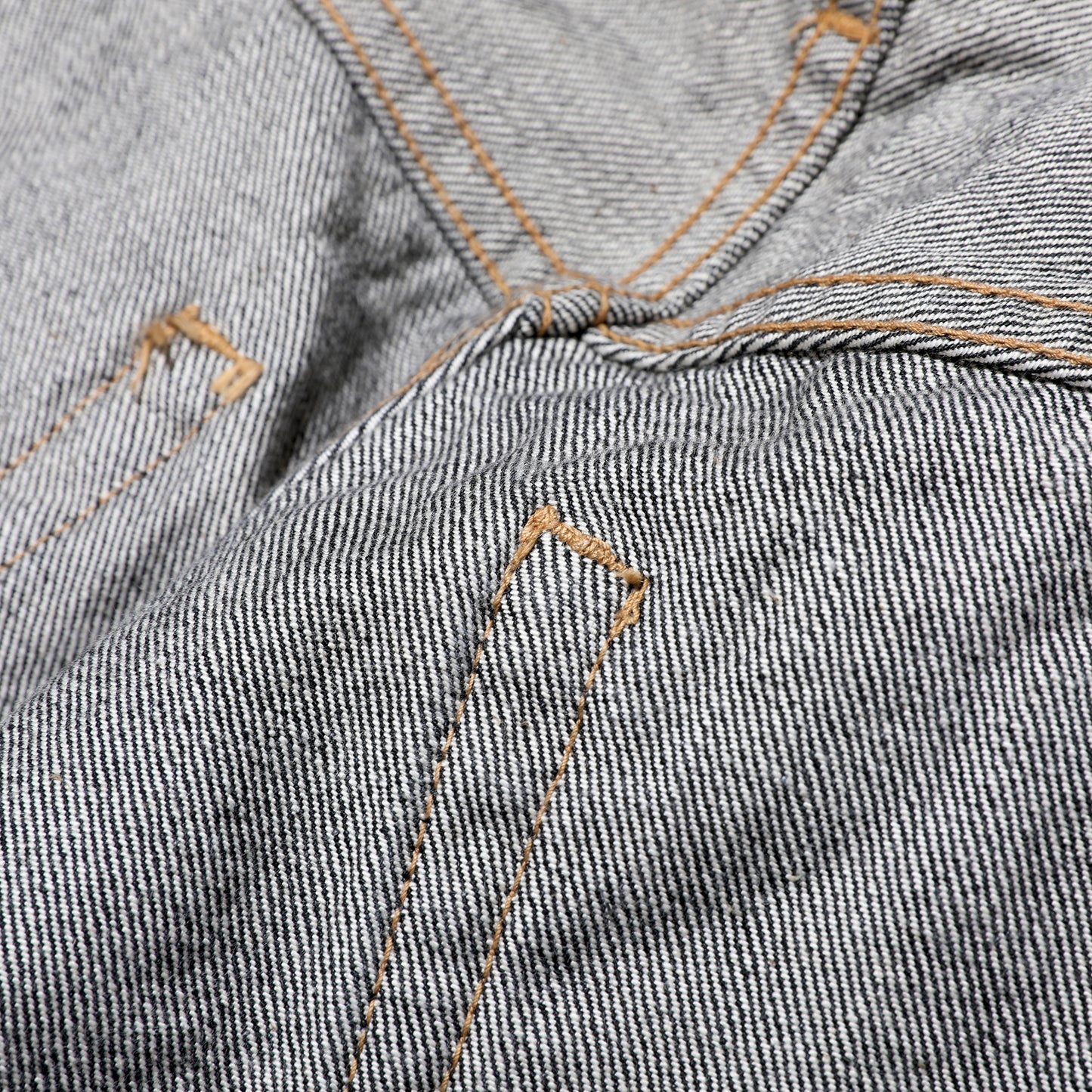 このブラックデニムは、インディゴと同様に穿くことで経年変化を楽しむことができ、風合い豊かなタテ落ちが得られます。