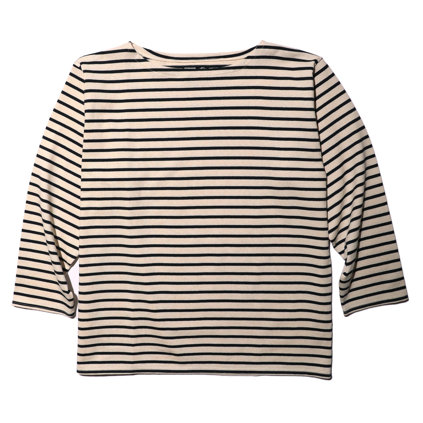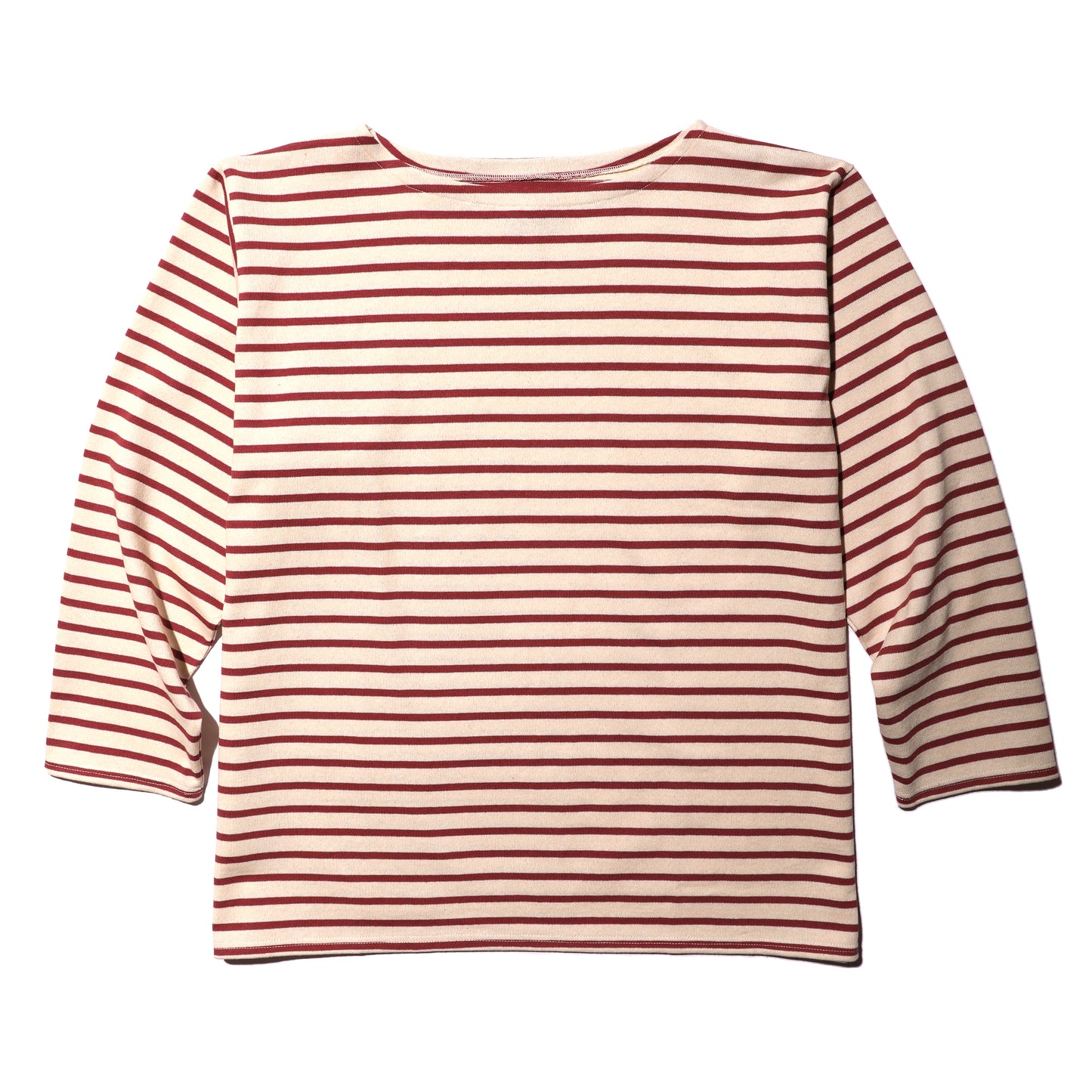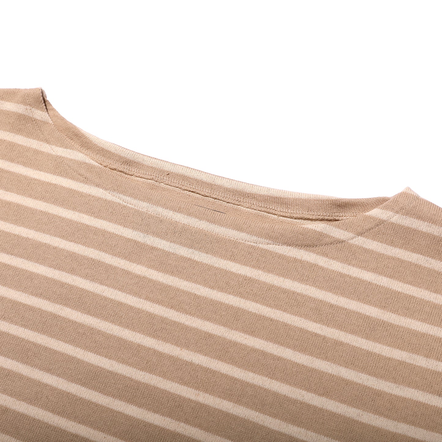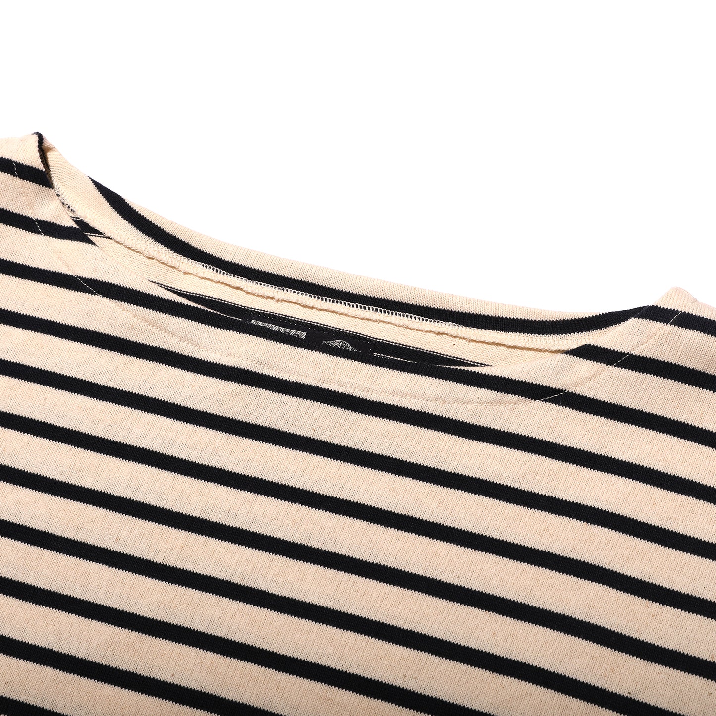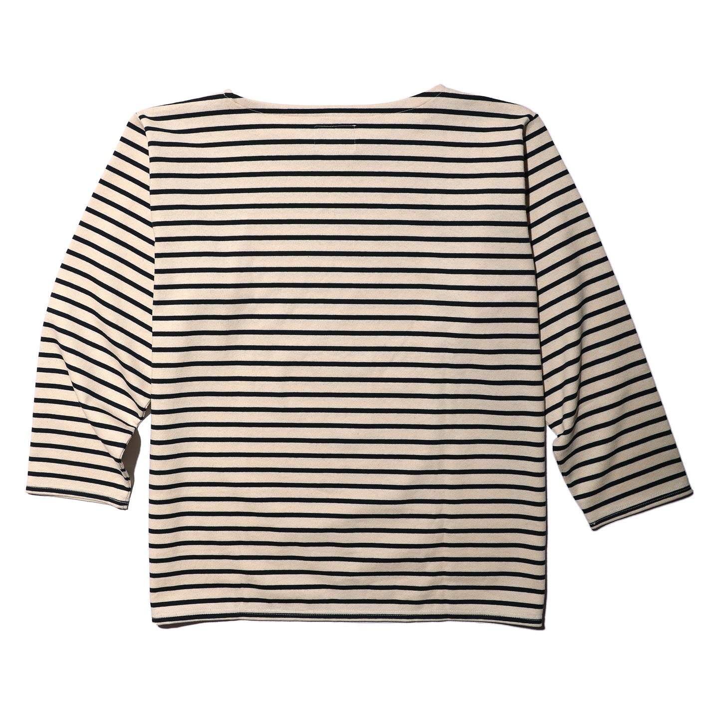 このアイテムは、16/2の先染ボーダー生地を使用して仕立てられました。初めてリリースされた際の素材を選んで使用しています。ボートネック特有の広い横幅を持つ襟は、独自の雰囲気を楽しむことができます。