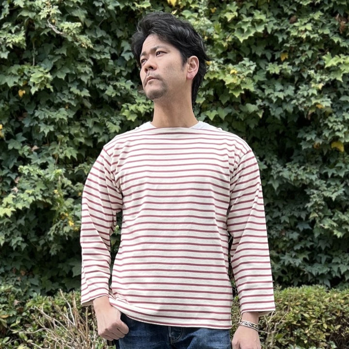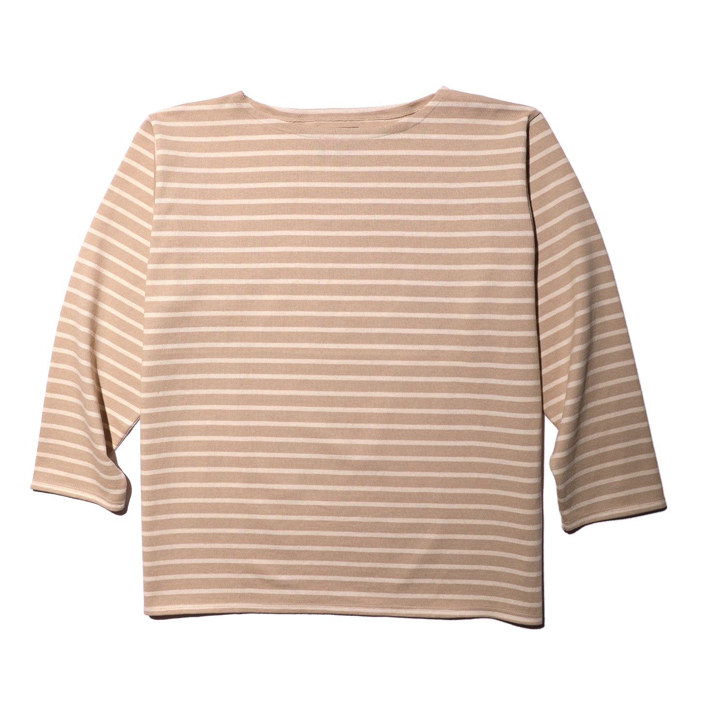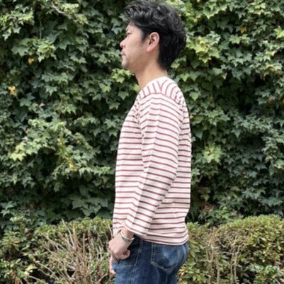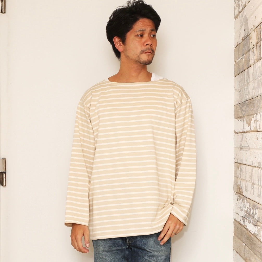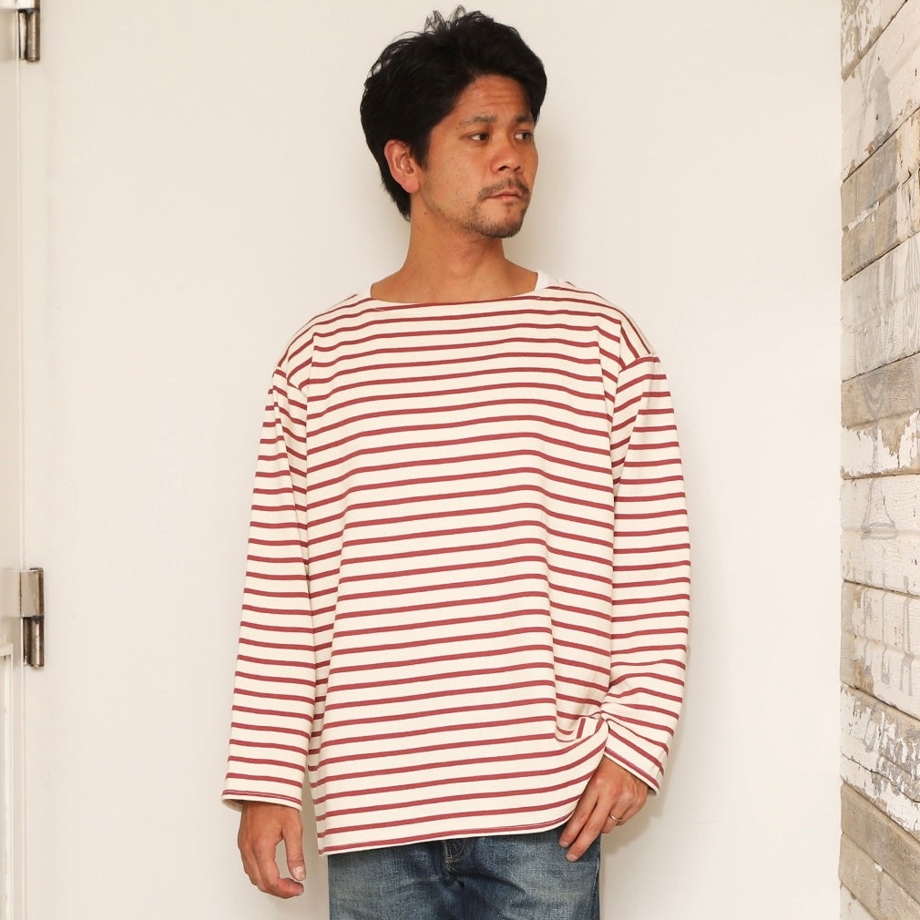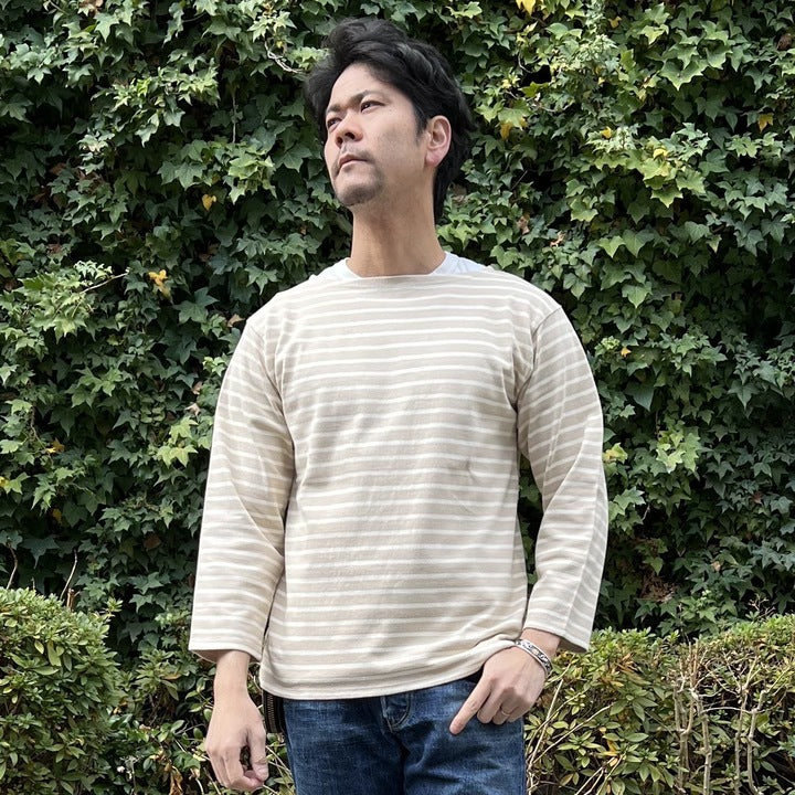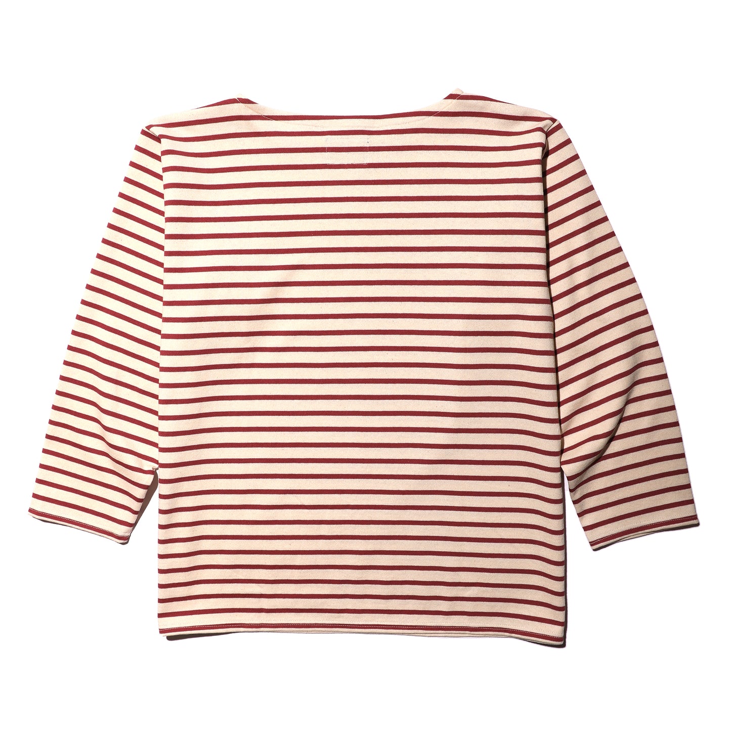 このアイテムは、16/2の先染ボーダー生地を使用して仕立てられました。初めてリリースされた際の素材を選んで使用しています。ボートネック特有の広い横幅を持つ襟は、独自の雰囲気を楽しむことができます。