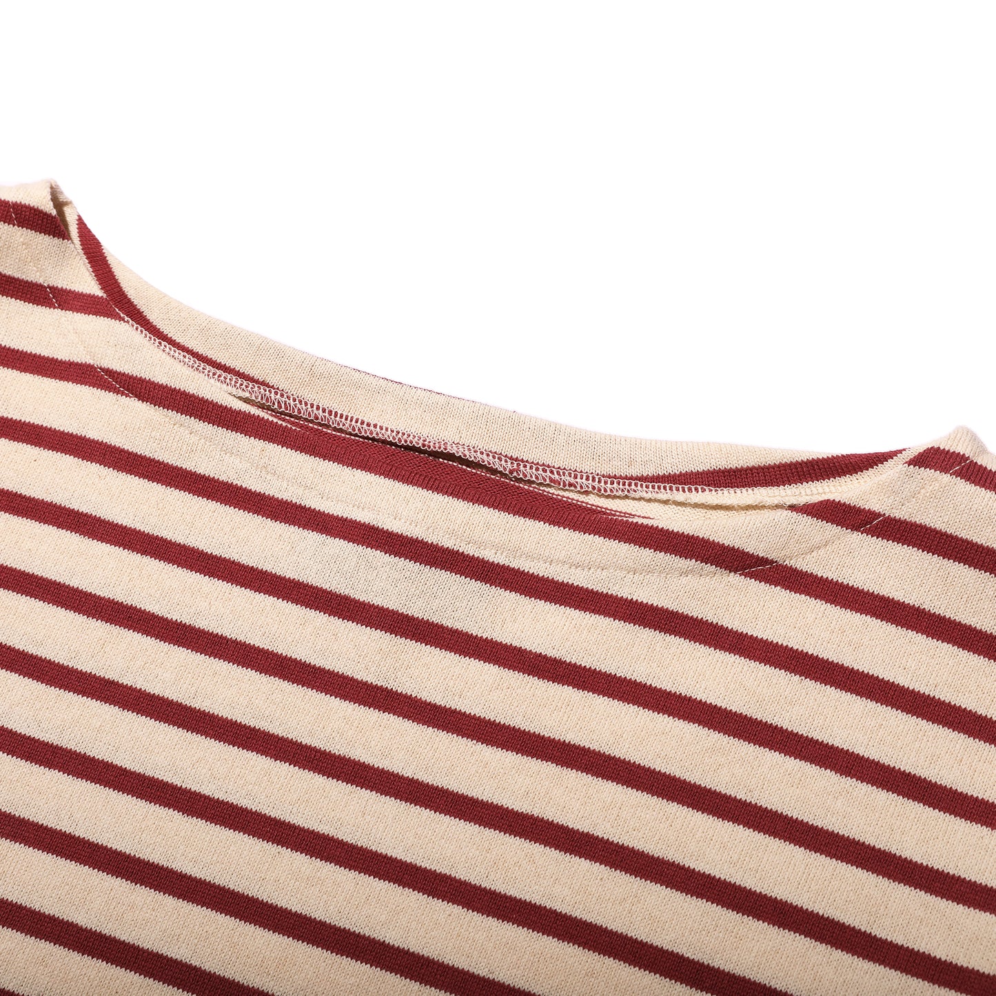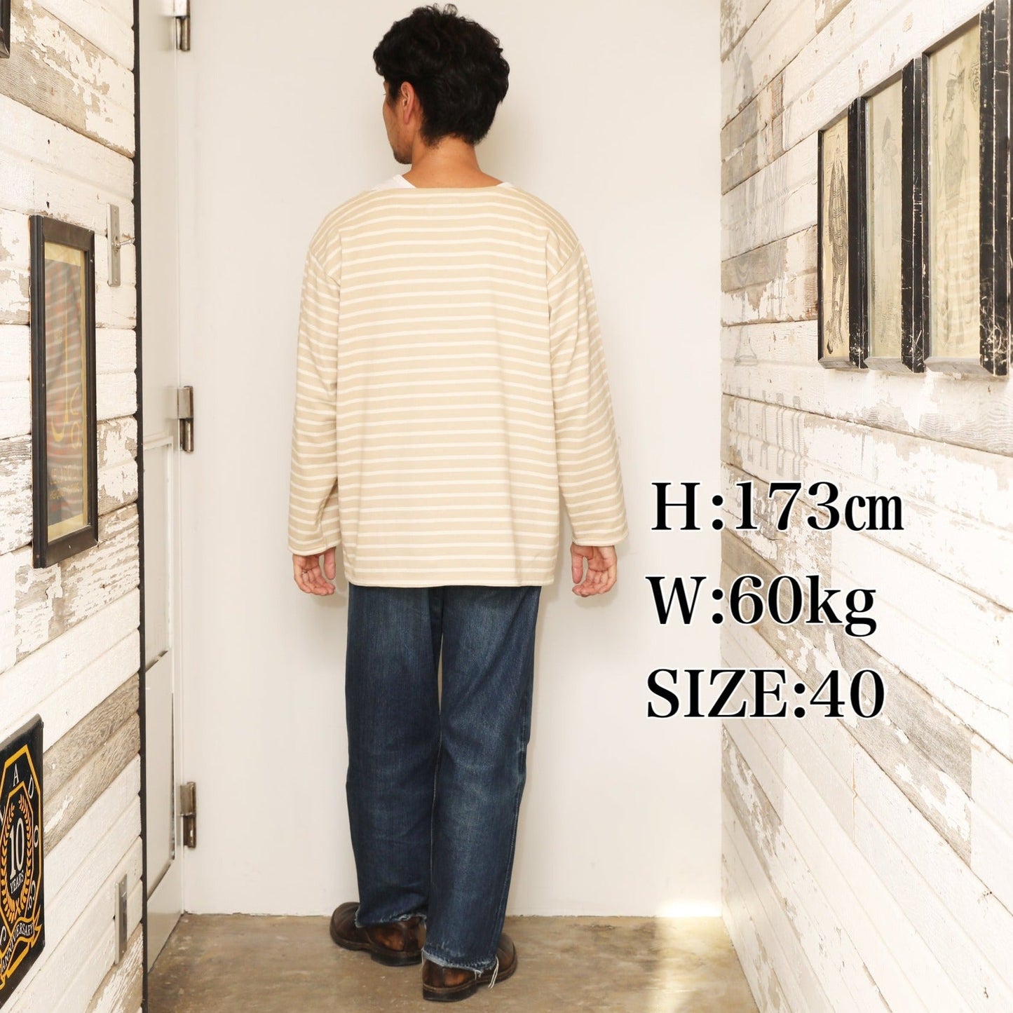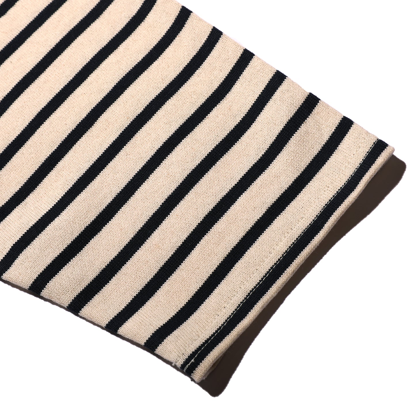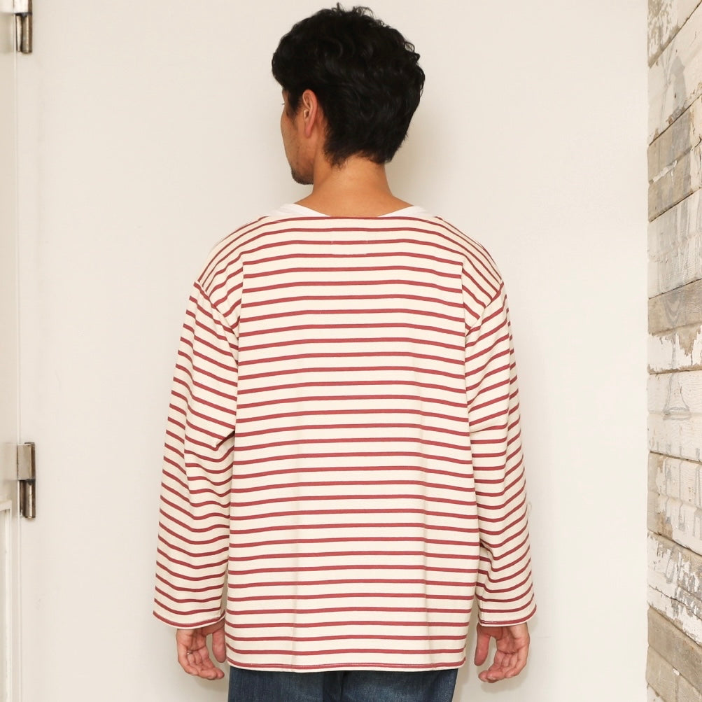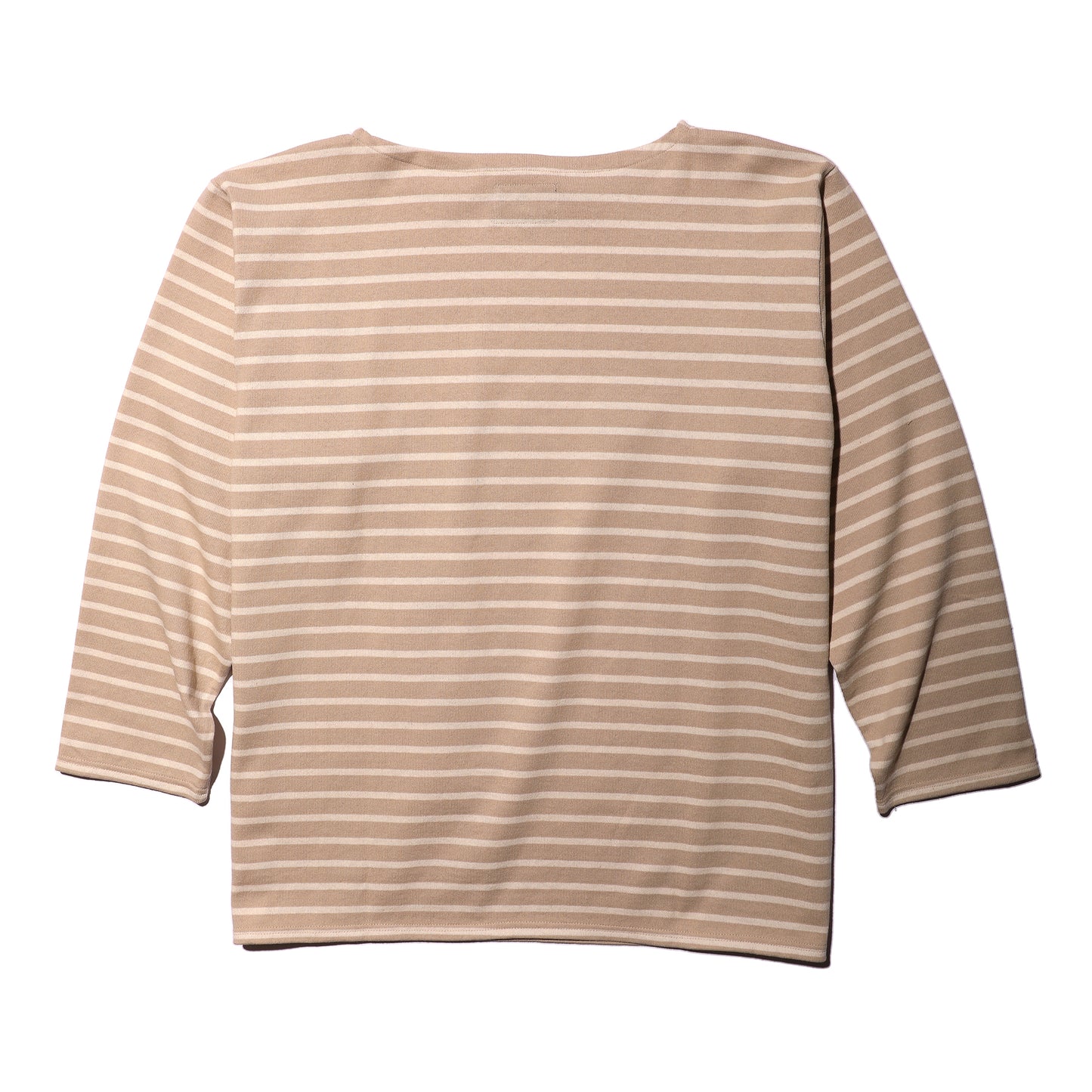このアイテムは、16/2の先染ボーダー生地を使用して仕立てられました。初めてリリースされた際の素材を選んで使用しています。ボートネック特有の広い横幅を持つ襟は、独自の雰囲気を楽しむことができます。