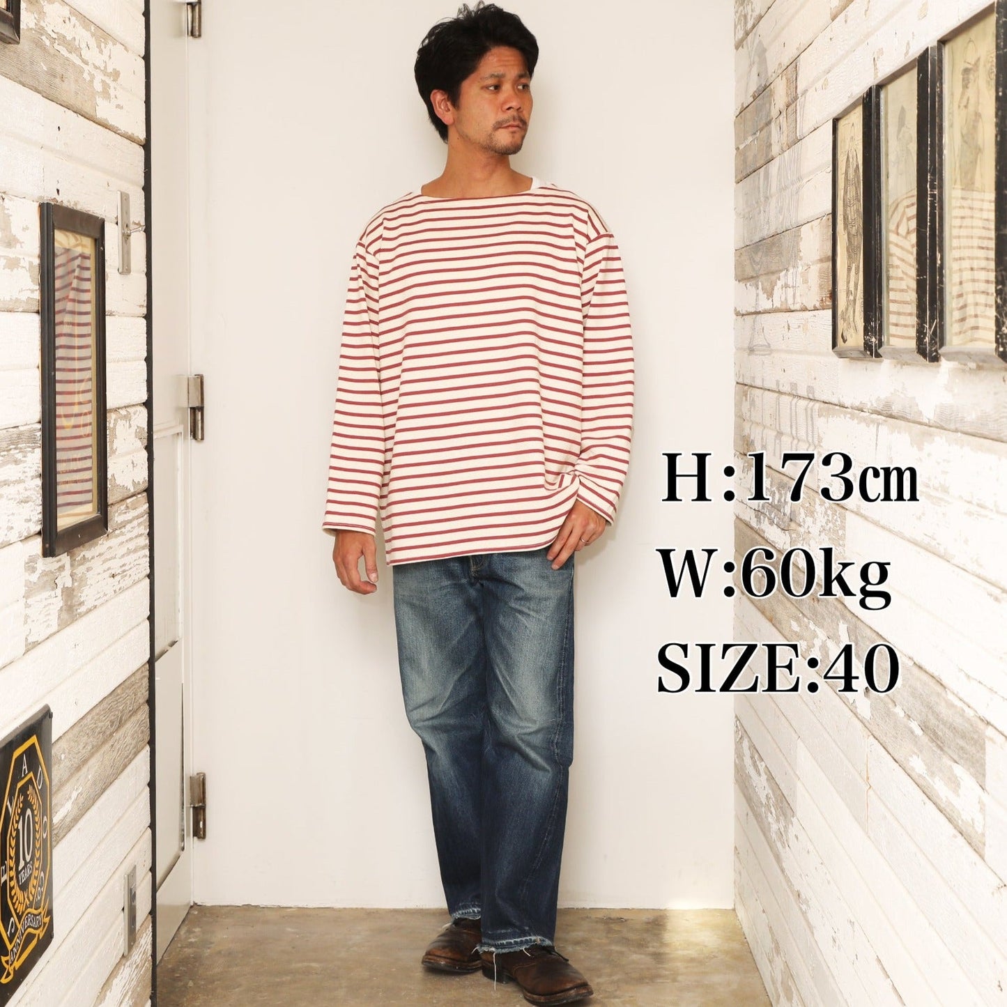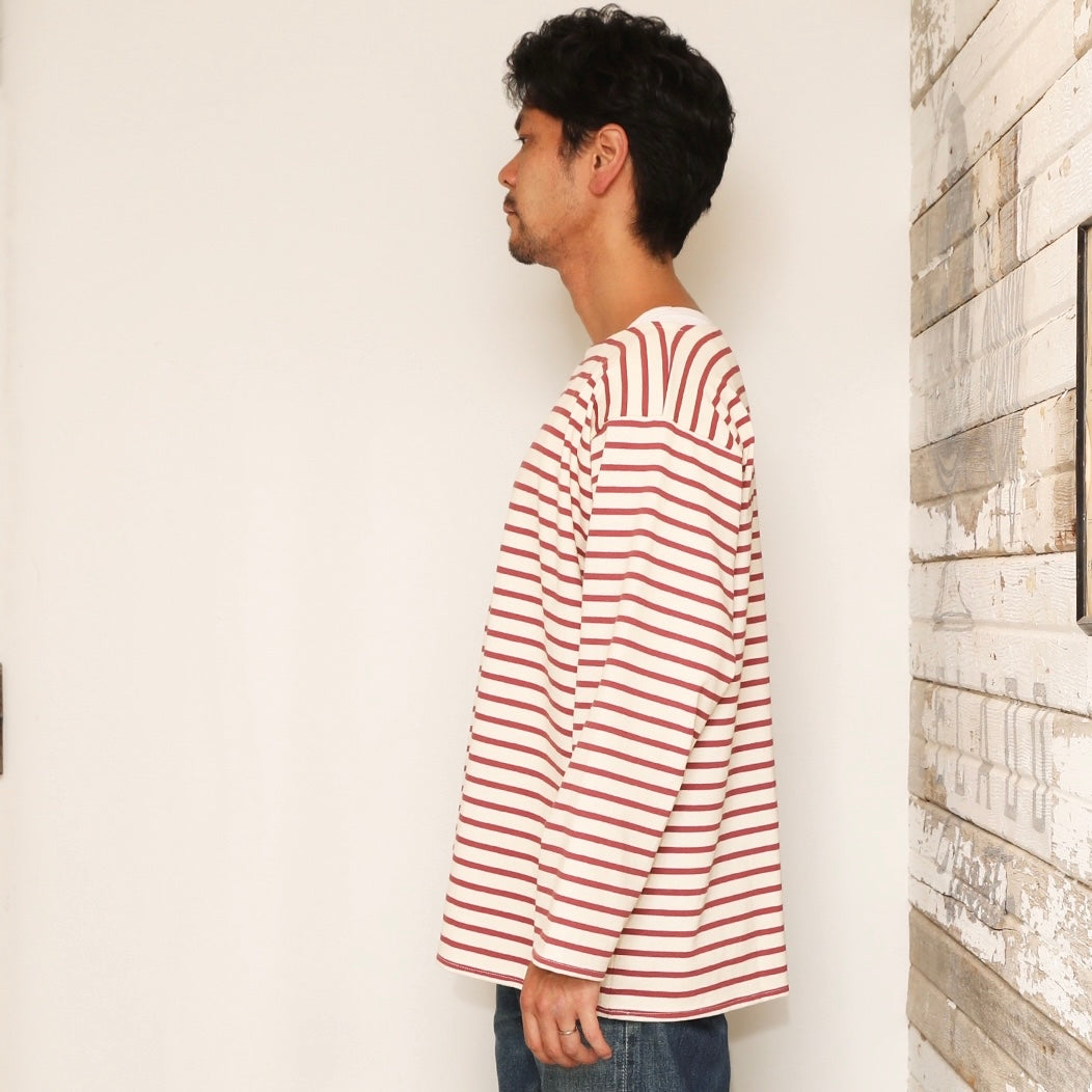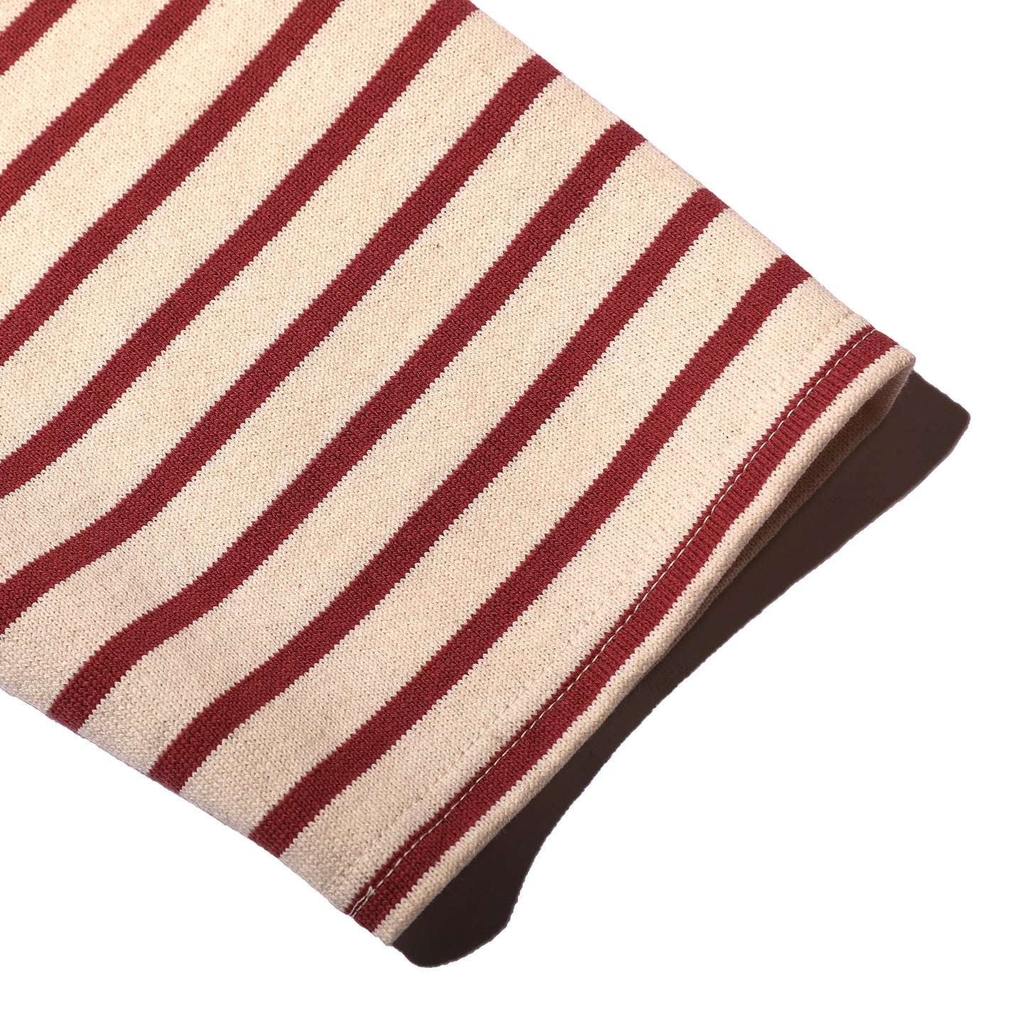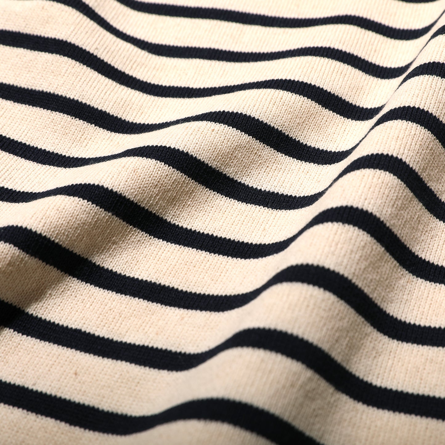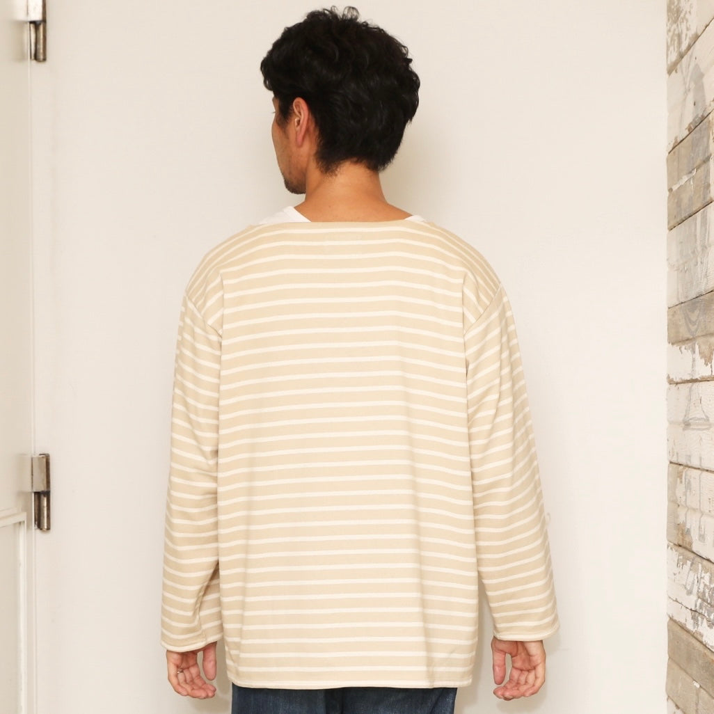 このアイテムは、16/2の先染ボーダー生地を使用して仕立てられました。初めてリリースされた際の素材を選んで使用しています。ボートネック特有の広い横幅を持つ襟は、独自の雰囲気を楽しむことができます。