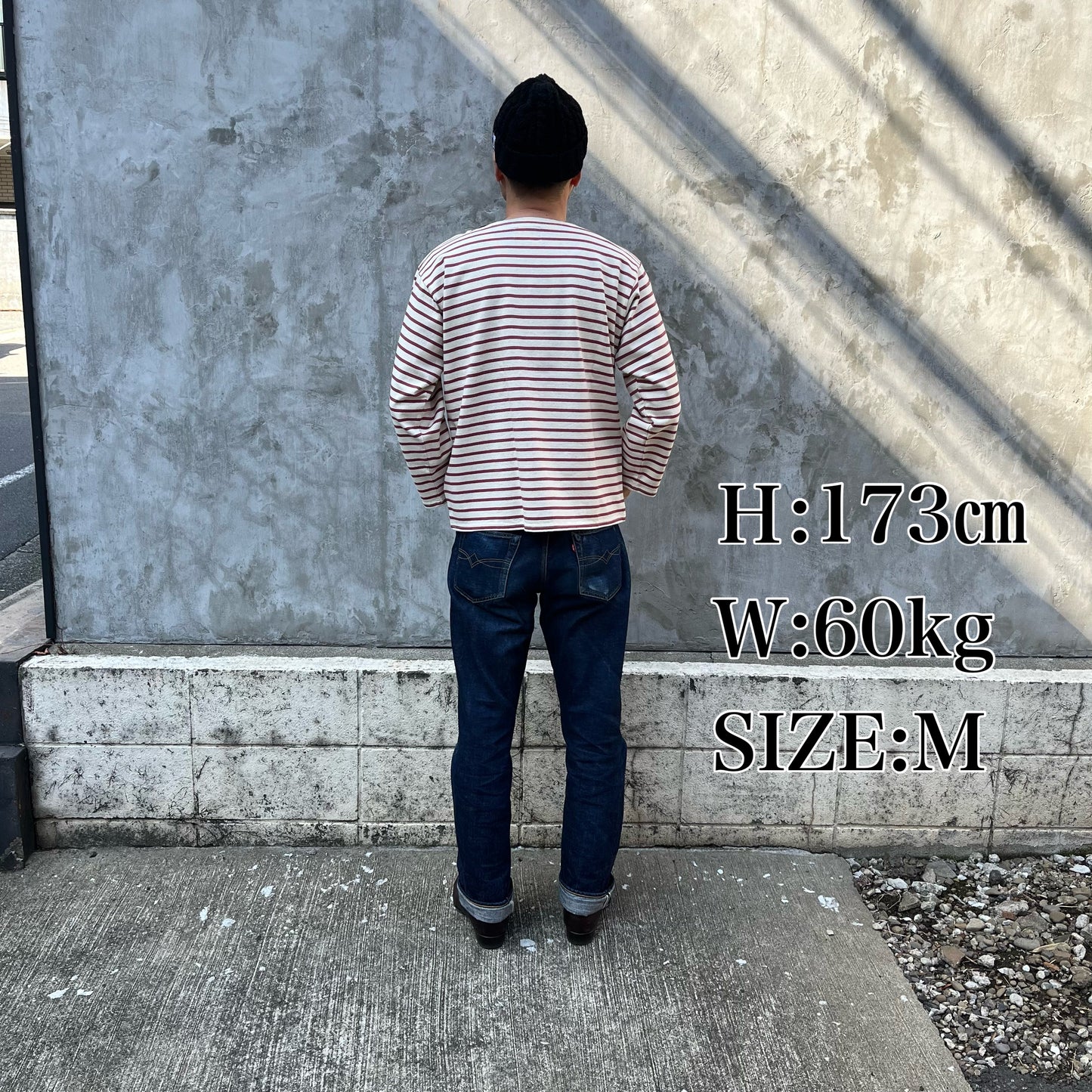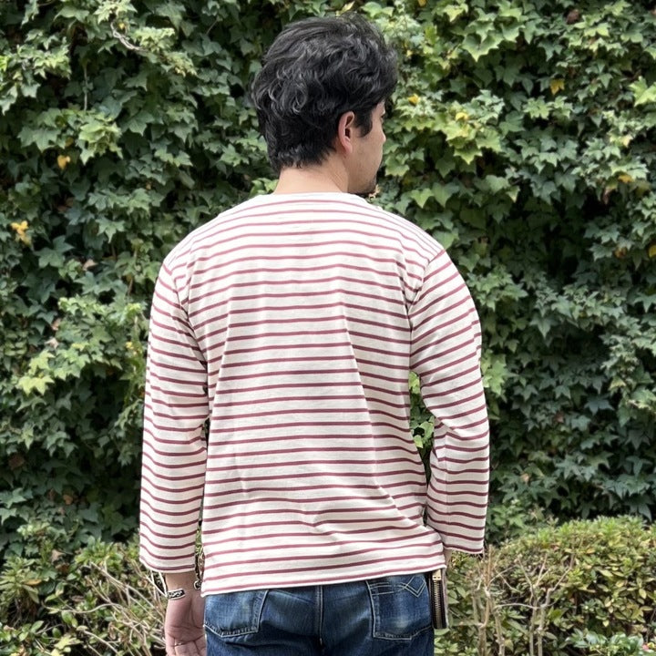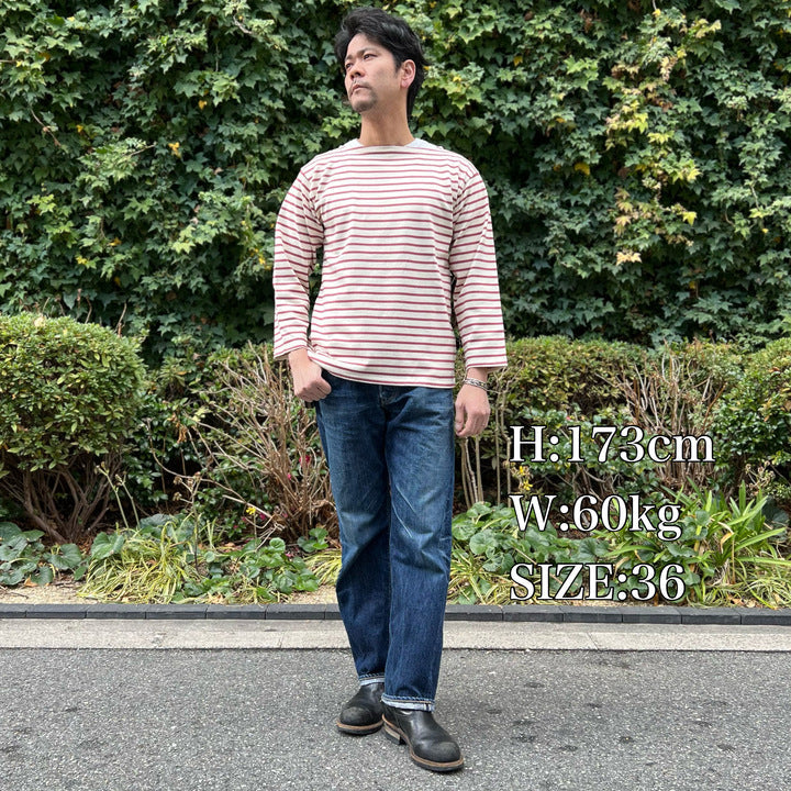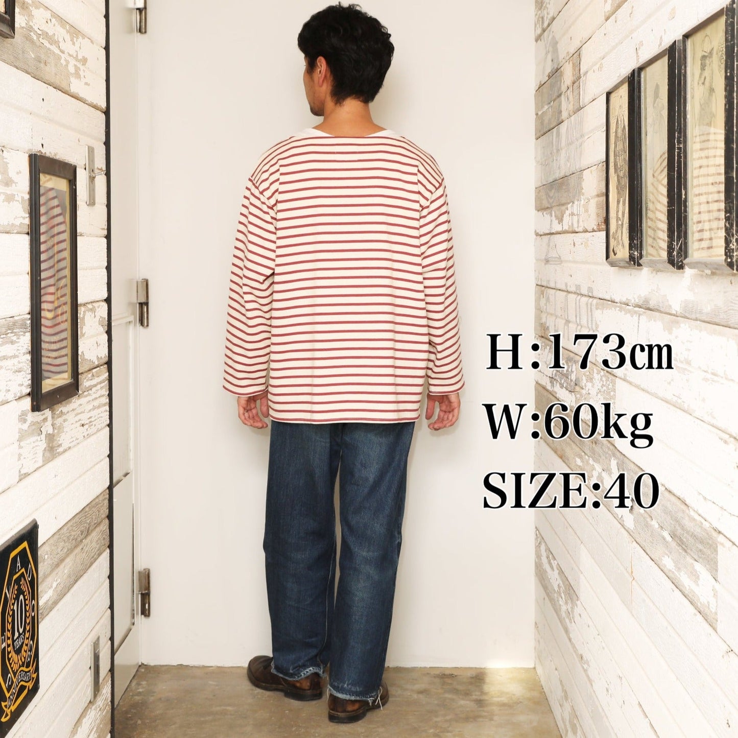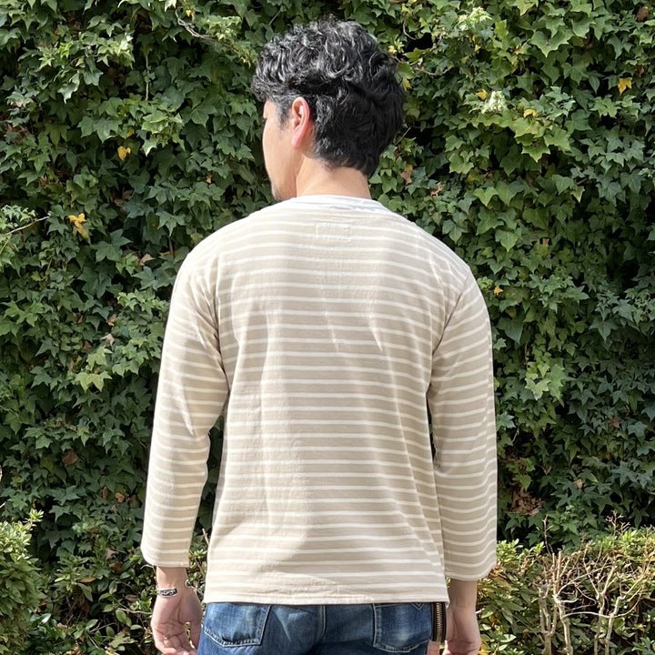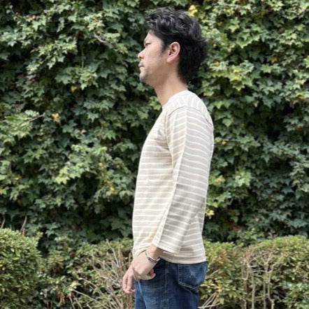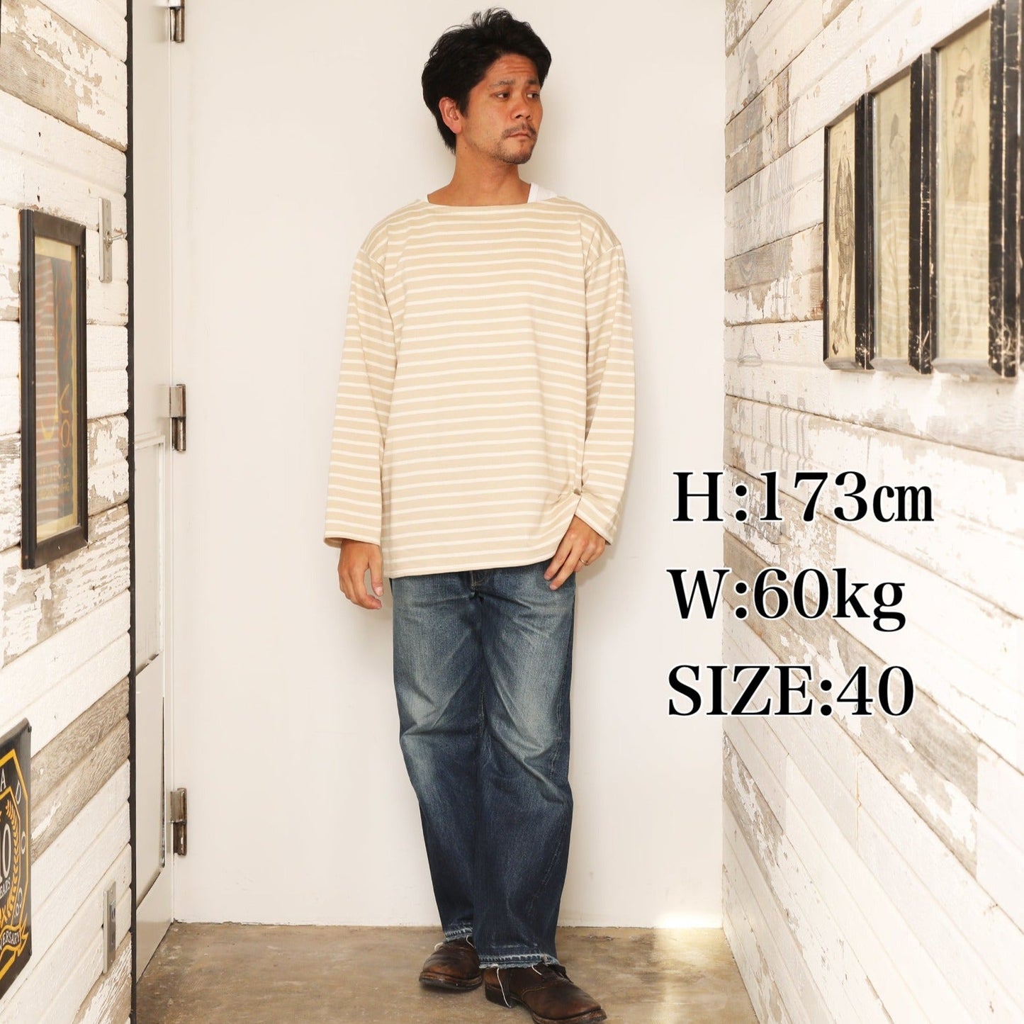 このアイテムは、16/2の先染ボーダー生地を使用して仕立てられました。初めてリリースされた際の素材を選んで使用しています。ボートネック特有の広い横幅を持つ襟は、独自の雰囲気を楽しむことができます。