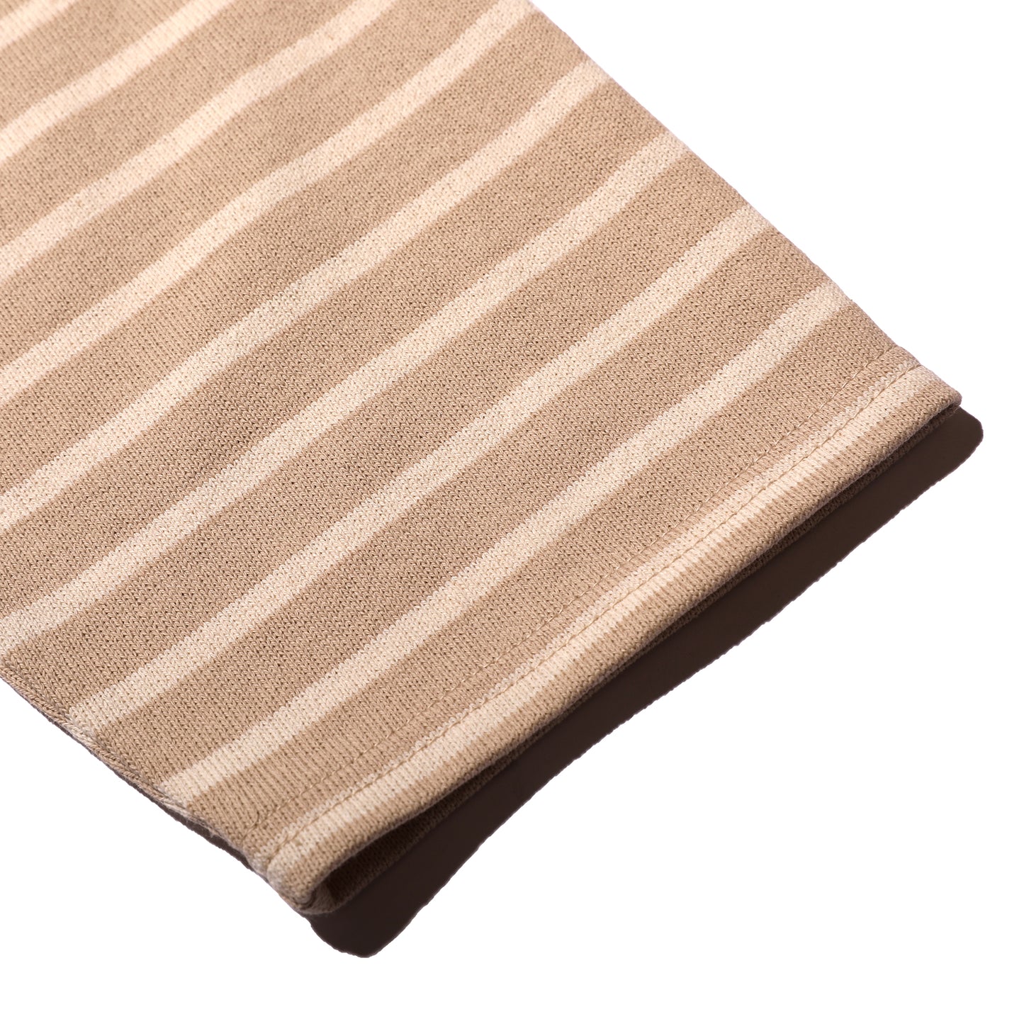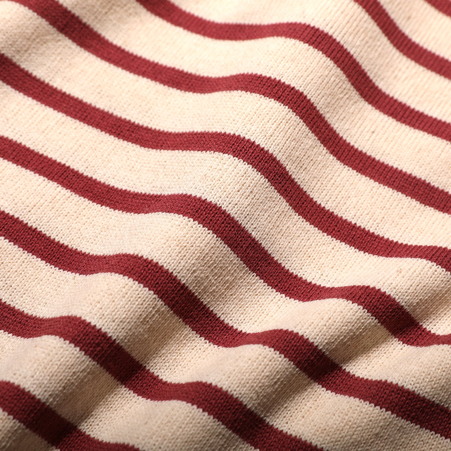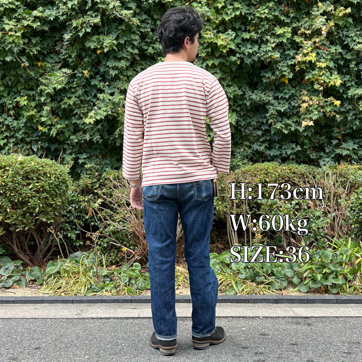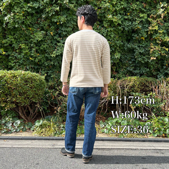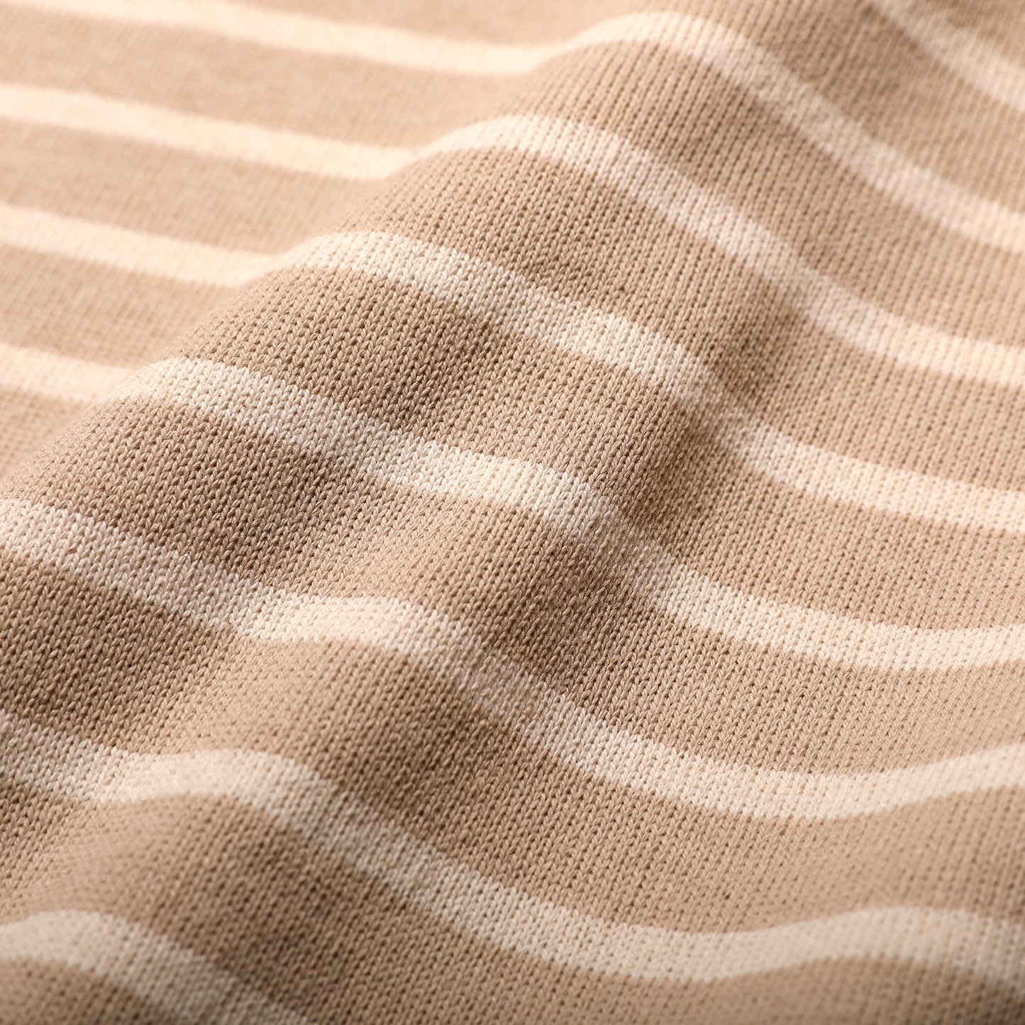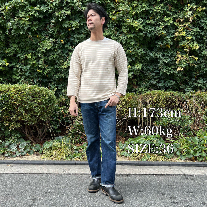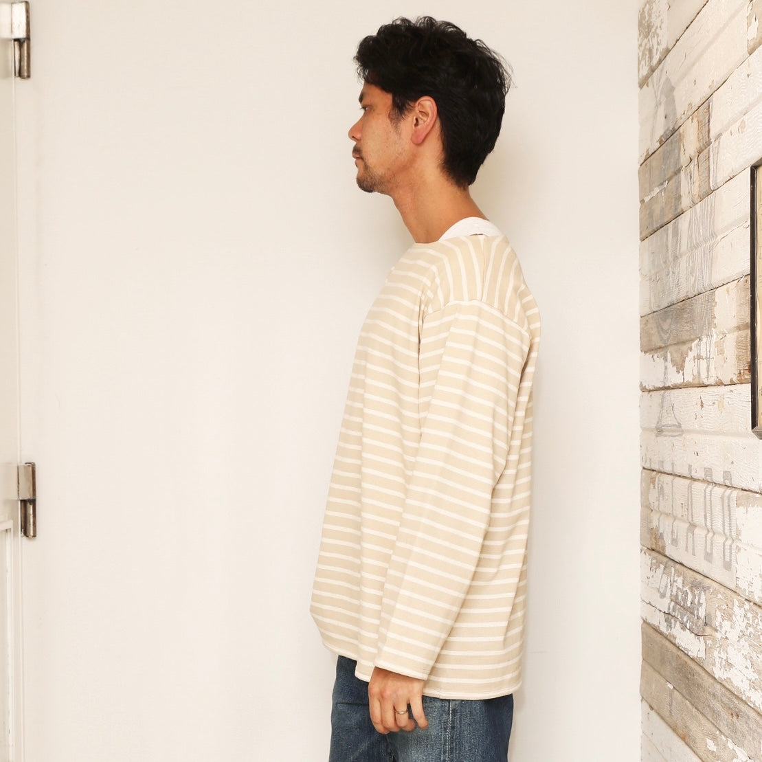 このアイテムは、16/2の先染ボーダー生地を使用して仕立てられました。初めてリリースされた際の素材を選んで使用しています。ボートネック特有の広い横幅を持つ襟は、独自の雰囲気を楽しむことができます。