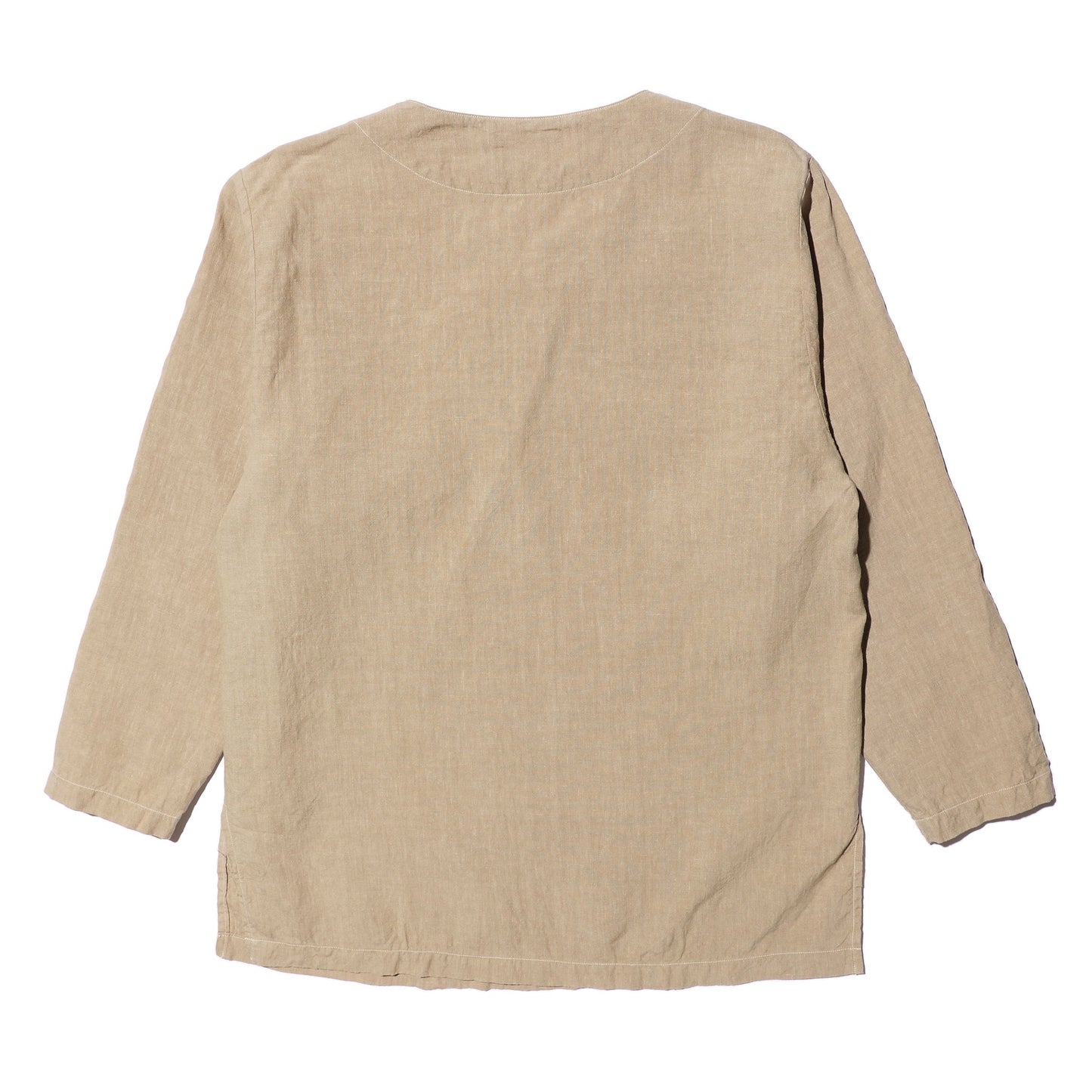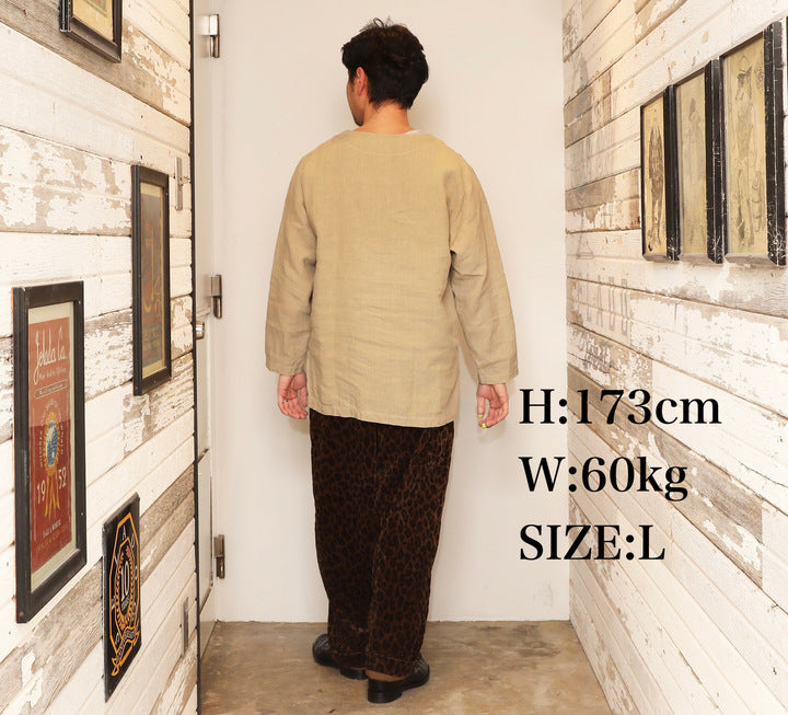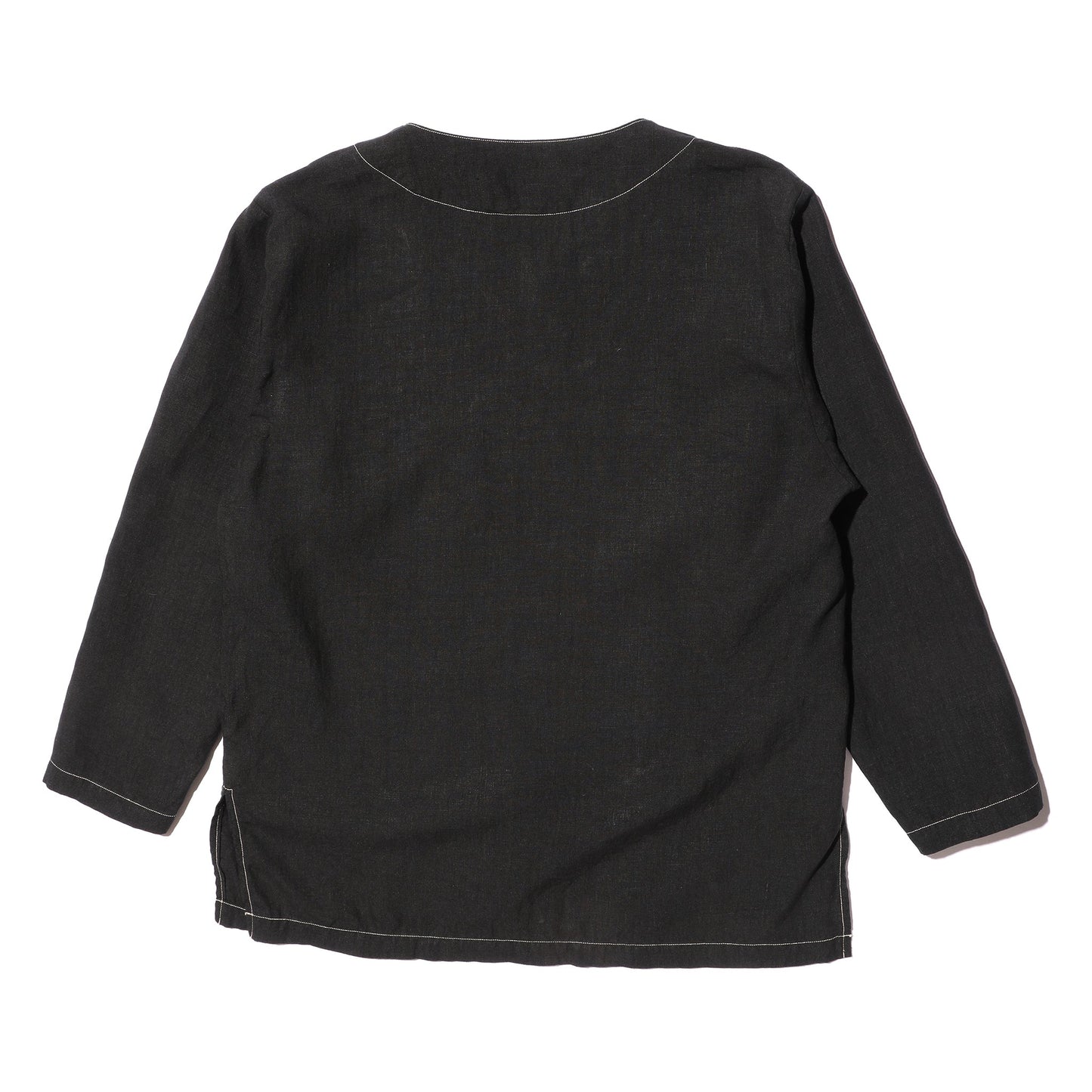 シンプルながらもボタンのないデザインが特徴で、カットソーには出せない大人なゆるさが感じられるシャツに仕上がっています。