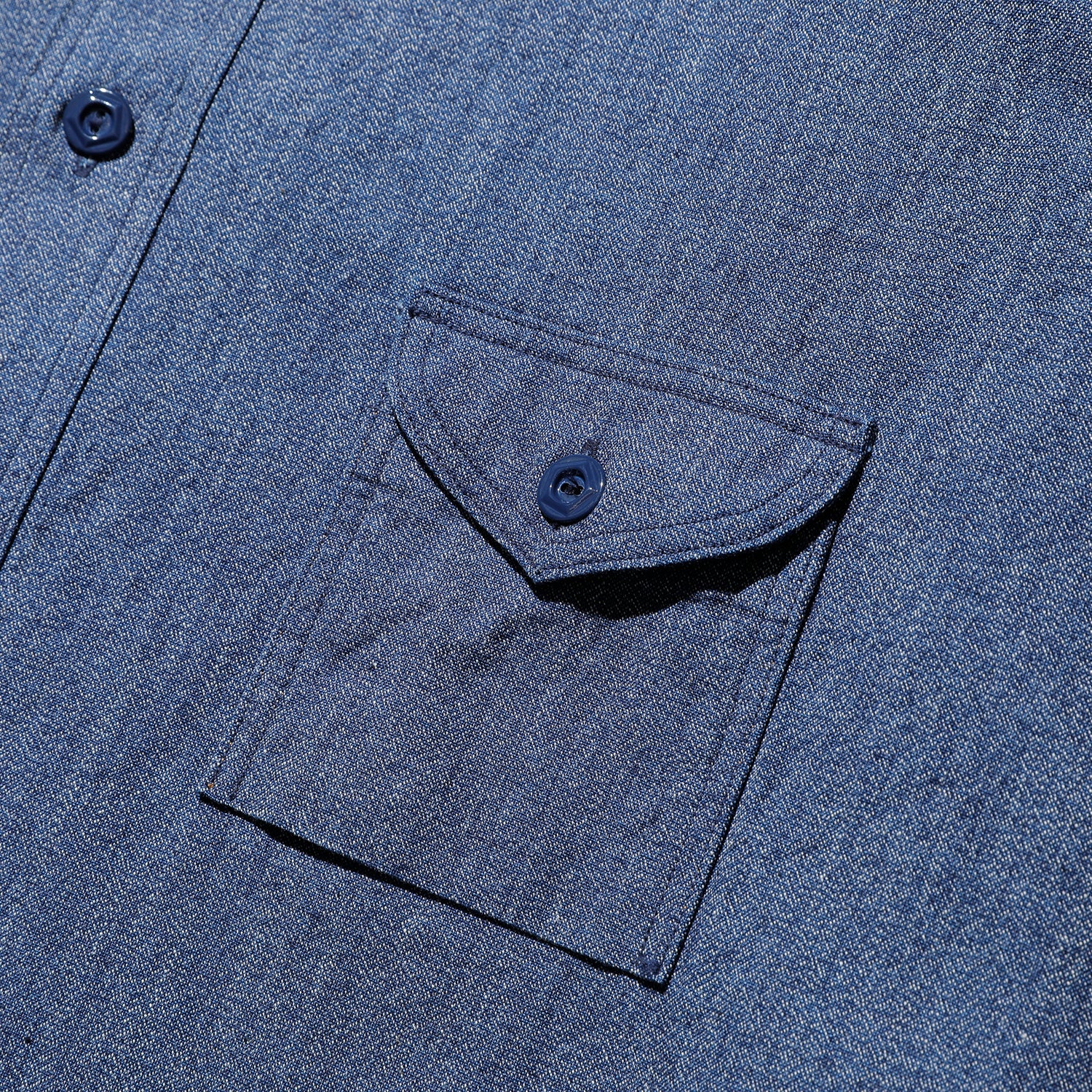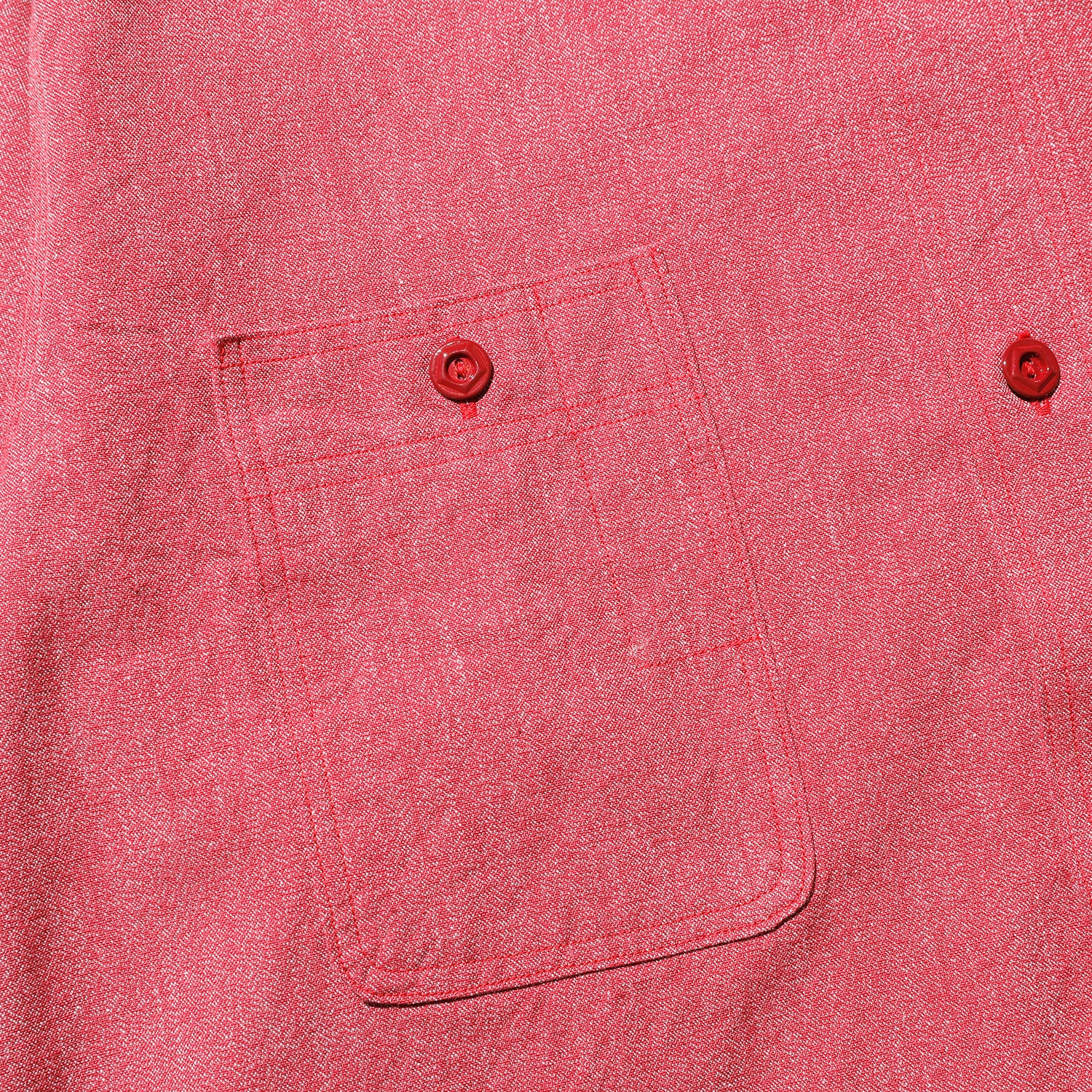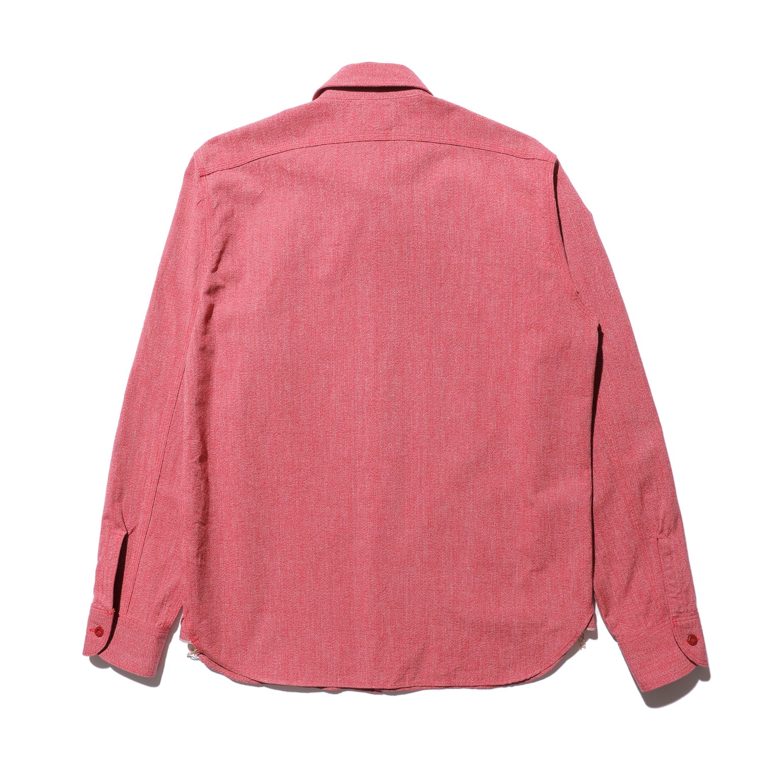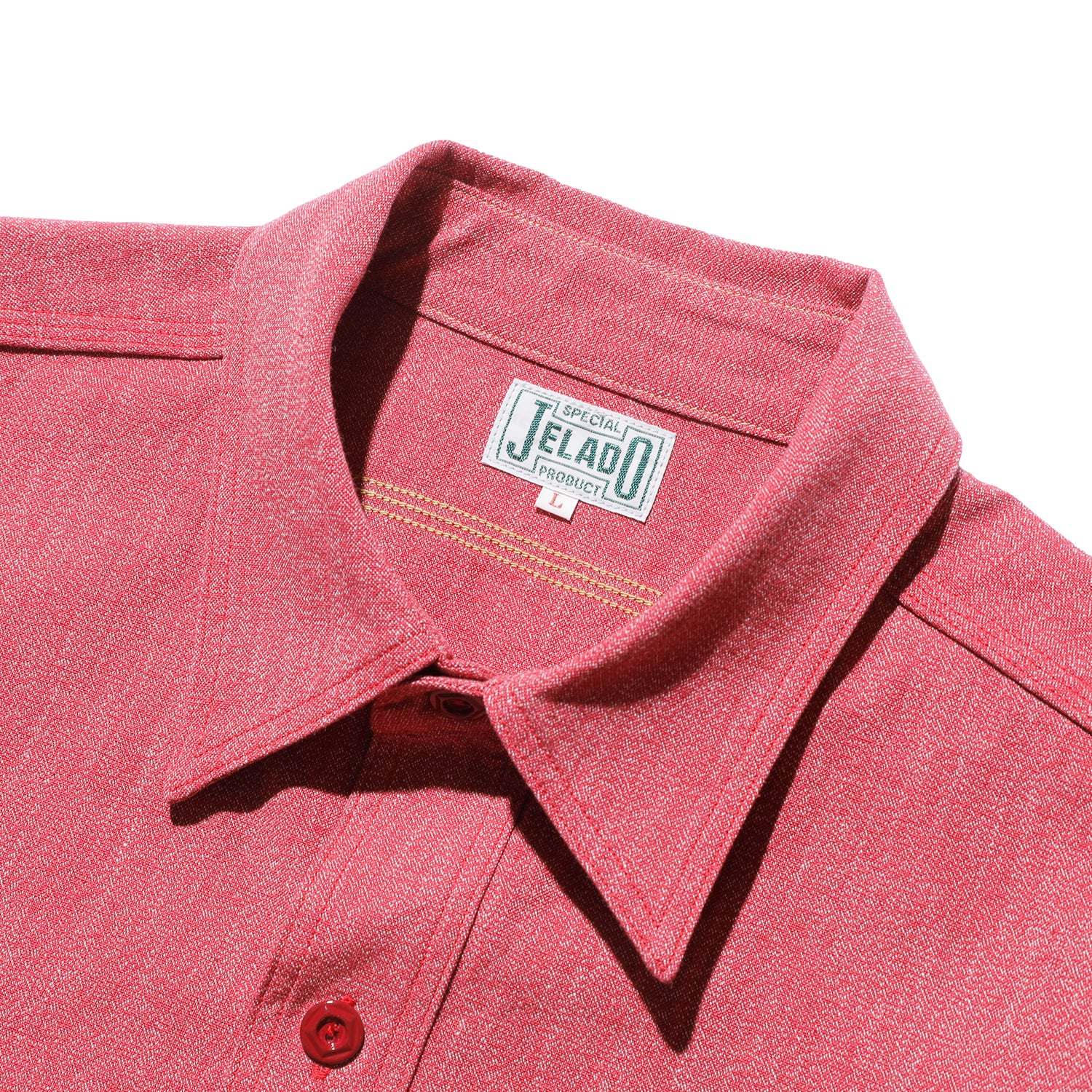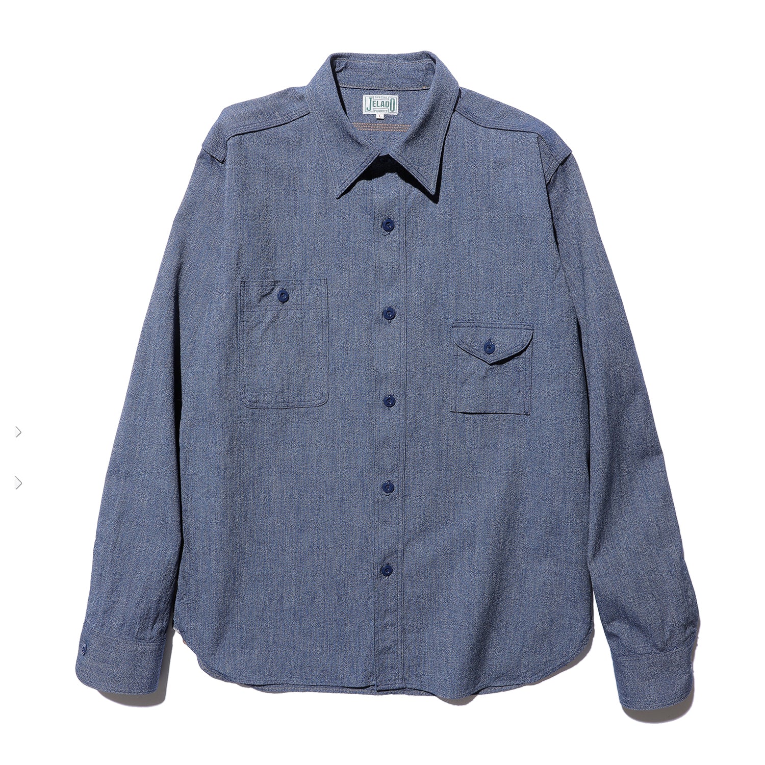 前回のリリースとは異なり、今回はシナモンのオリジナルシャンブレーではなく、レッドとネイビーの撚り杢シャンブレーを使用しました。このアイテムは、JELADOが収集する1930〜40年代のヴィンテージシャツ「BIG YANK」をベースに、左右非対称のガチャポケット、小さなチンストラップ「チョコチン」、セパレートカフスなど、当時のディテールを忠実に再現しています。生地は力織機を用いて織り上げ、細かな運針ピッチを施すことで、当時の生地の風合いやシワ感を再現。ヴィンテージ特有の雰囲気をしっかりと表現しました。インディゴのワークウェアからチノパンまで幅広いスタイリングに馴染む、汎用性の高い一着に仕上げています。繊細なディテールとヴィンテージの魅力が融合した特別なシャツ。この機会にぜひ手に取っていただき、ファッションの幅を広げる一枚としてご検討ください。