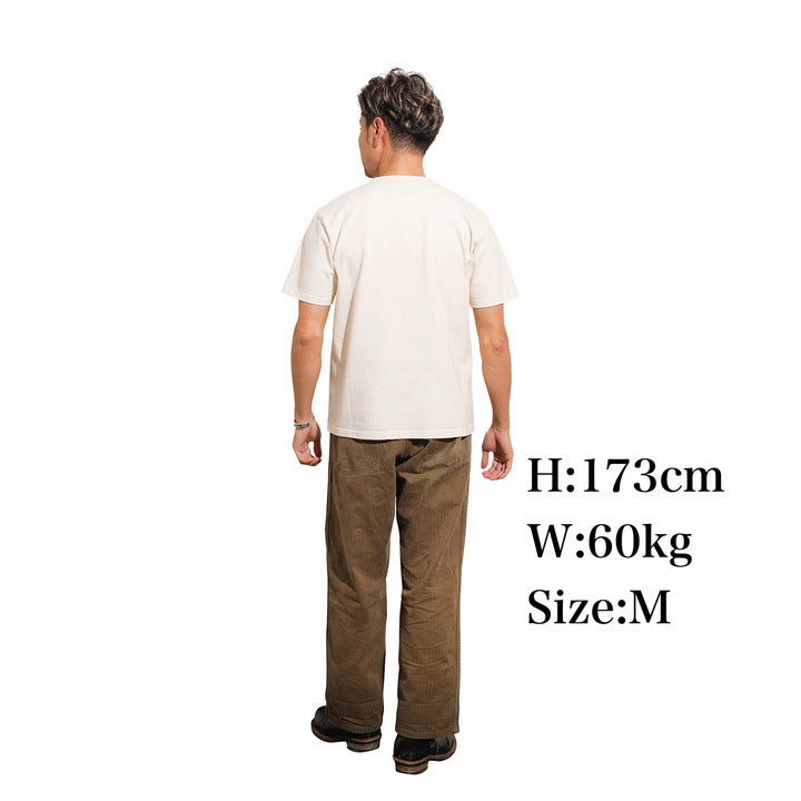 20/2スーパー度詰め天竺を使用した、とんでもなくごついボディの素材を使いTシャツにしております。長年着てもヘタることなく、ずっと形を守ったとんでもなく素材にこだわったTシャツになります。