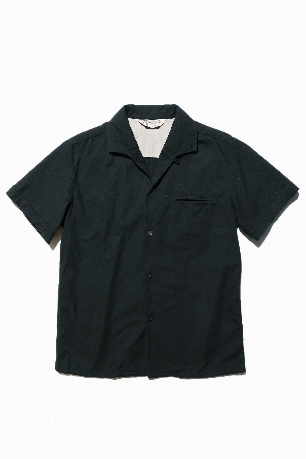 襟元が特徴的なイタリアンカラーのオープンシャツ。