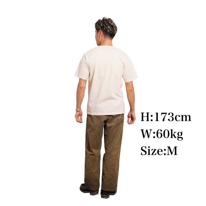 14/-丸胴のミディアムウェイトボディで編み立てており、着用とともにプリントも経年変化を楽しめます。