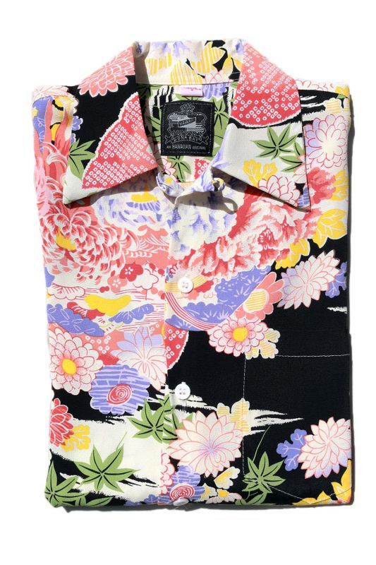 ベースとなるオリジナルは1930年代で、恐らくアロハシャツ歴史に残る、「アロハシャツ」という言葉を、商標登録した「エラリーチャン」のキングスミスブランド。