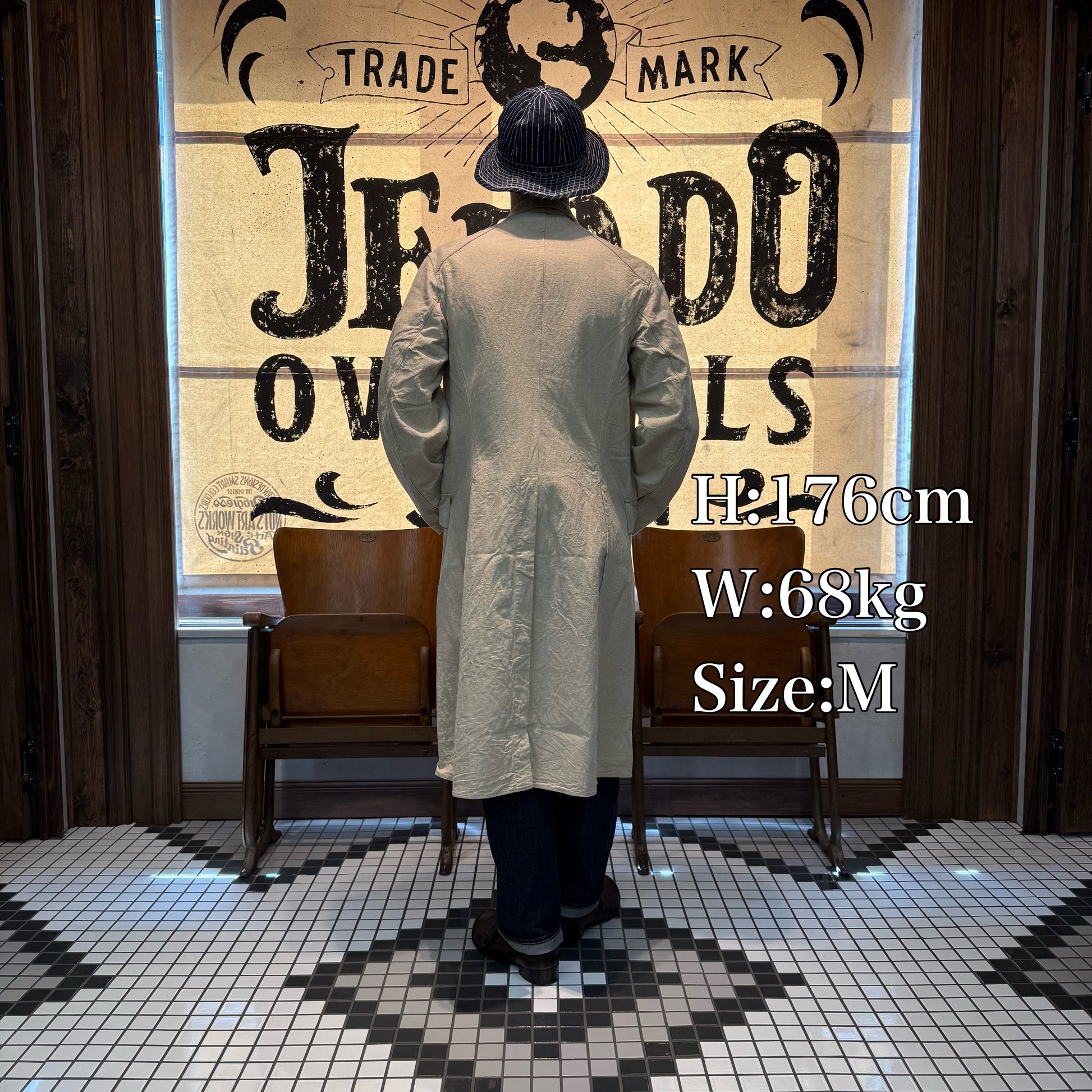 1910年。アメリカでの自動車の世帯普及率はわずか 2%でした。大衆の足は主に、馬車、馬、自転車で、自動車は一部の富裕層だけが所有できるものだった時代です。19世紀末から馬や馬車に乗る時に埃よけに着ていた、ダスターコートが流行したのがこの頃です。当時の自動車は、ドアもない完全なコンバーチブルだったため、運転中はタイヤが土埃を舞い上げます。服が埃まみれになるのを防ぐダスターコートは、自動車を運転できる富裕層のステータスシンボルだったのかもしれません。当時のダスターコートは、主に薄手の生成リネンまたはコットン製の丈の長いコートです。The 2 Monkeys のダスターコートは、鈴木が所有