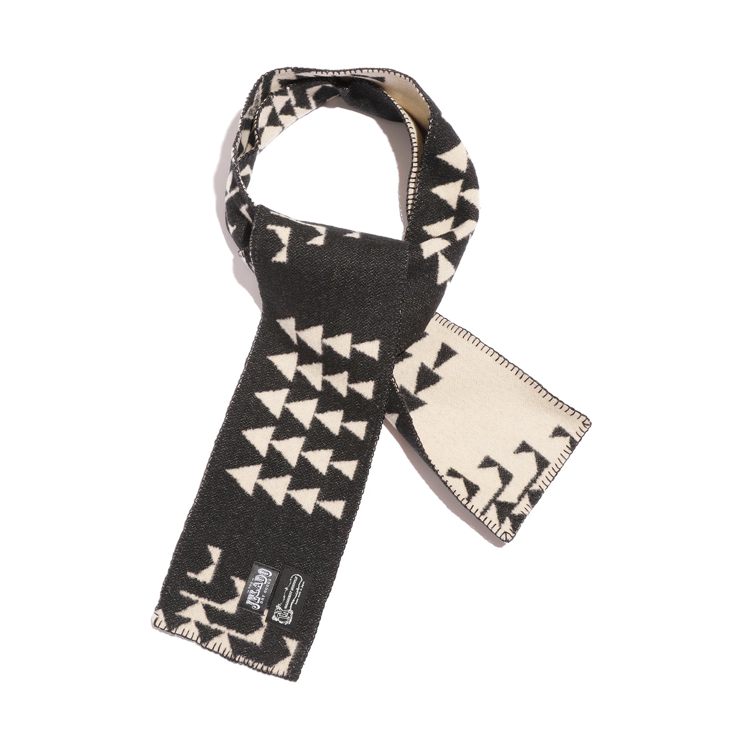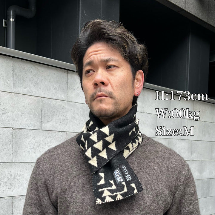 「Tribe Muff」は、ネイティブアメリカンの伝統美にJELADO独自の解釈を加えた、スリムシルエットのウールマフラー。素材には、過去にリリースされた希少なヴィンテージ・ブランケット柄のウールを贅沢に使用。