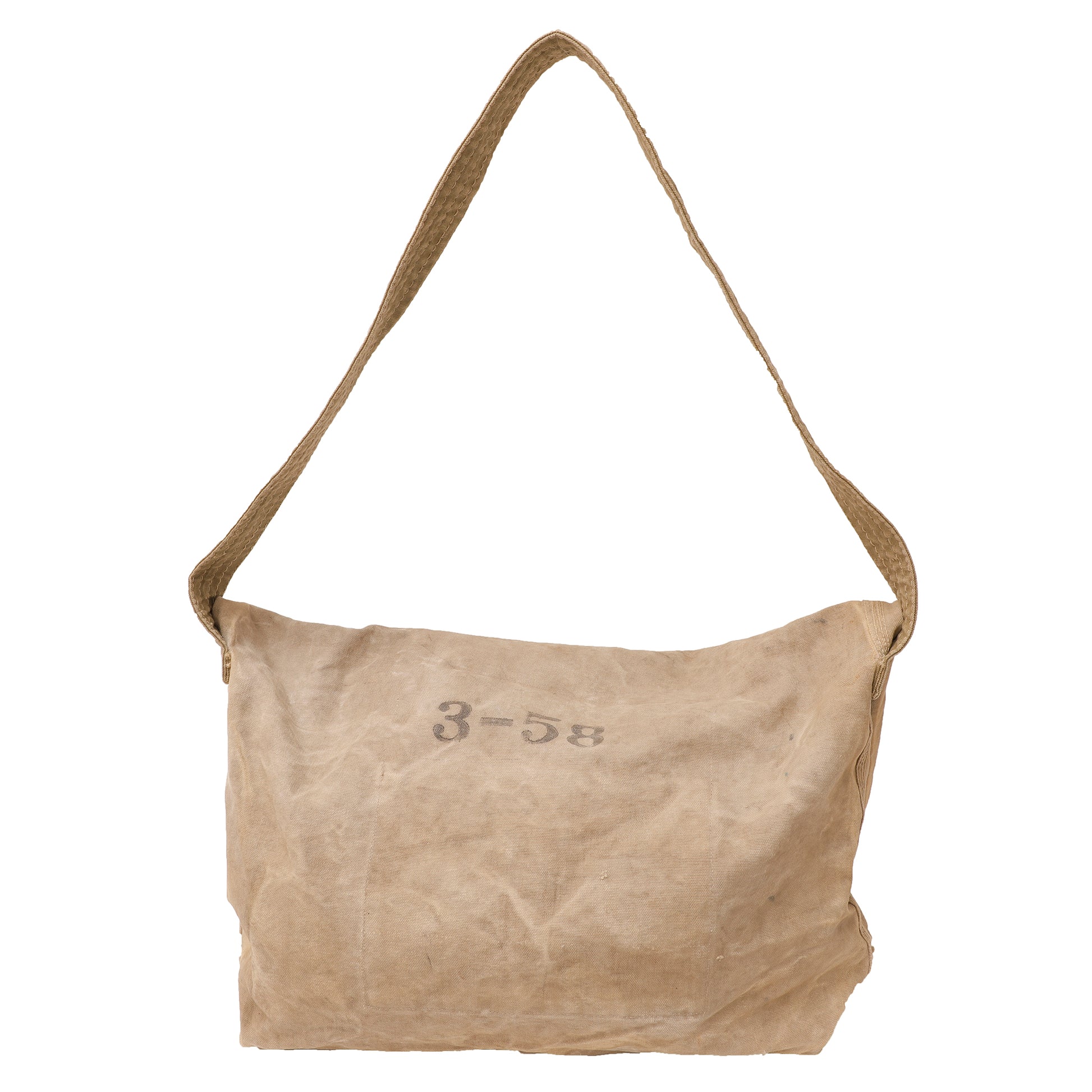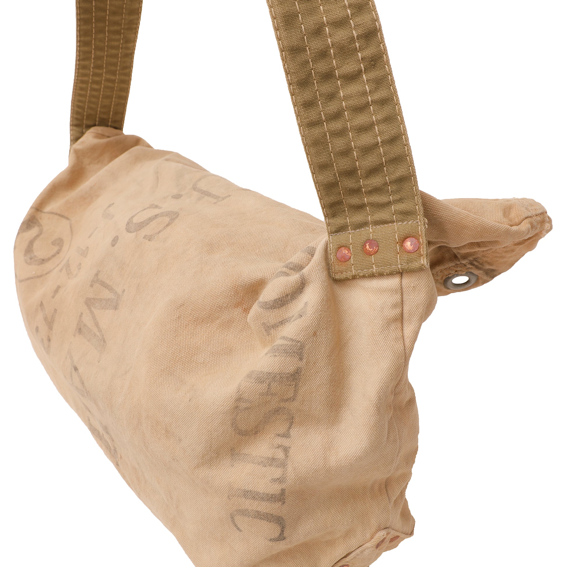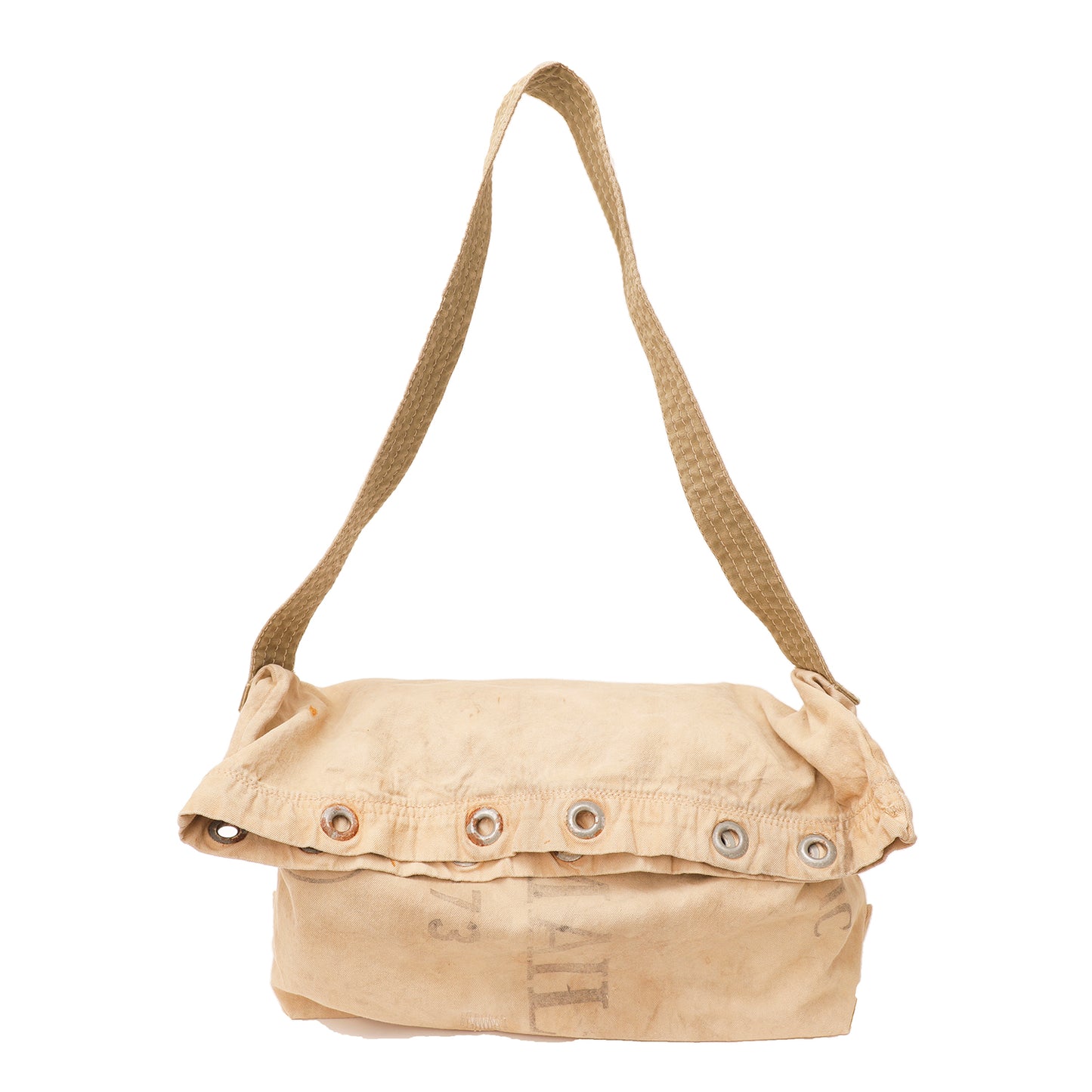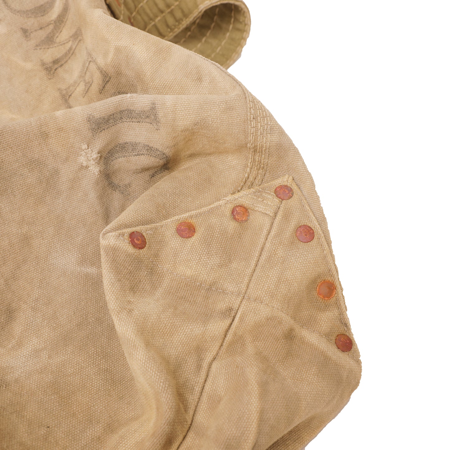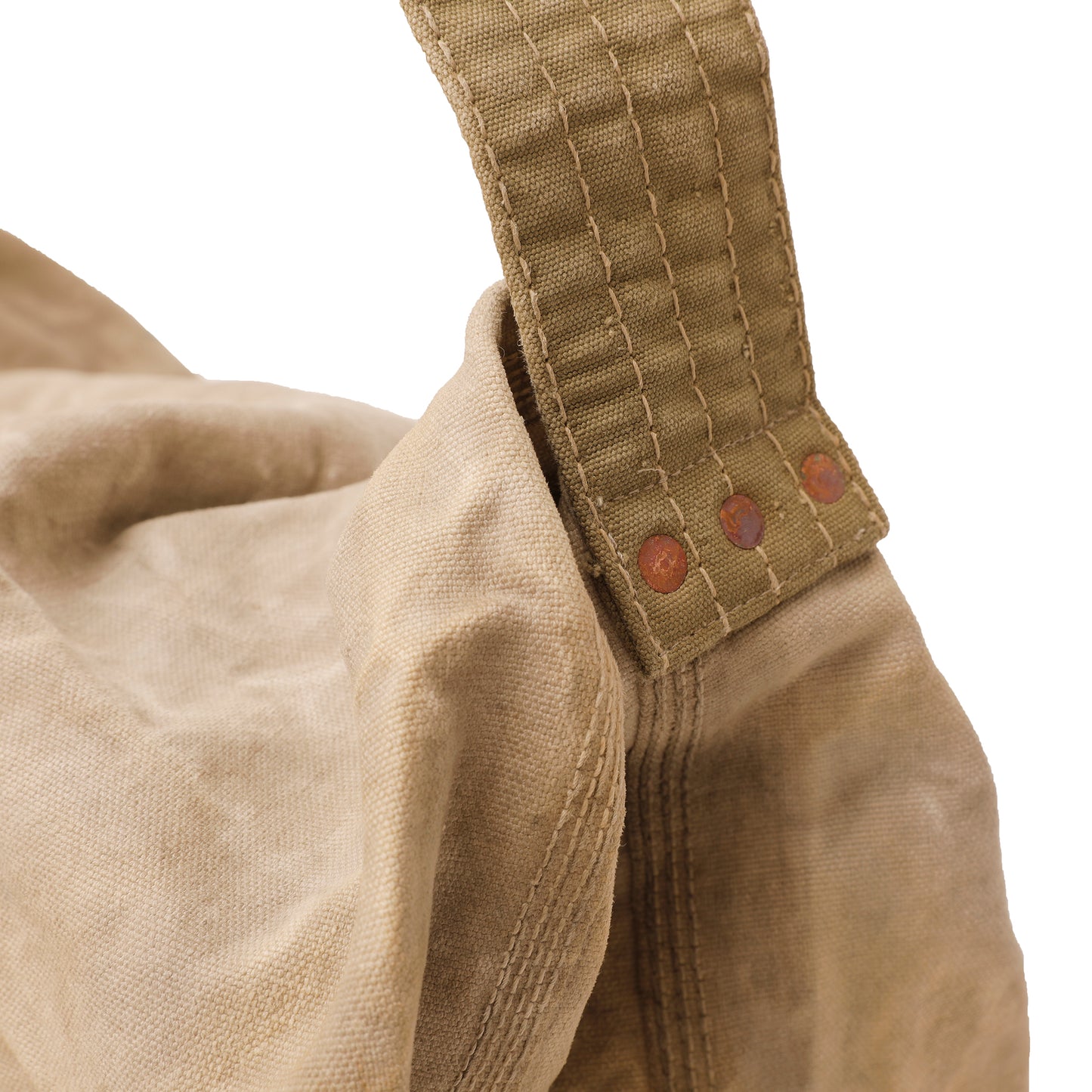 使 い 古 さ れ た ヘビーデューティー な ダ ッ フ ル バ ッ ク を 解 体 • 再 構 築 し 、 現 代 の ラ イ フ ス タ イ ル に 再 投 影 し た 「 Paperboy Satchel」、20 世 紀 初 頭 の アメリカで 新 聞 配達 を し て い た 少 年 た ち が 使っていた ショルダーバッグ に ル ー ツ を 持 つ 。 厚 手 の キ ャ ン バ ス 生 地 と 大 容 量 の 設 計 は 、 雨 や 風 から 新 聞 を 守り な が ら 、 ストリート を 駆 け 抜 け る タ フ な 仕 事 に 耐 え る た めのものであった 。 " Paparboy Satchel "は ヴ ィ ン テ ー ジ Duffie Bag を最 大 限 に 活かしミニマル に 再 構 築 。 元 の 開口 に機 能 性 を 持 た せ フ ラ ッ プ に 。 別 の ヴ ィ ン テ ー ジ 生 地 で 幅 広 の ストラップ 部 分 を 作 成 す る こ と で Paperboy Satchel の イ メ ー ジ ヘ 。現 在 の Messenger Bag と も 思 え る デ ザ イ ン に 。 左 上 部 は アメリカ 合 衆 国 郵 便 公 社 (USPS)な ど の 郵 便 機 関が 国 内郵 便 物の 運搬用 に 庭 際 に 使 用 し て い た 郵 便 袋の ヴ ィ ン テ ー ジ 。 左 下 の こ の 厚 手 の カーキ の キ ャ ン バ ス は お そ ら く WWII前期の アメリカ軍が 使 用 し て い た Barracks Bagで あ る と 思 わ れ る 。