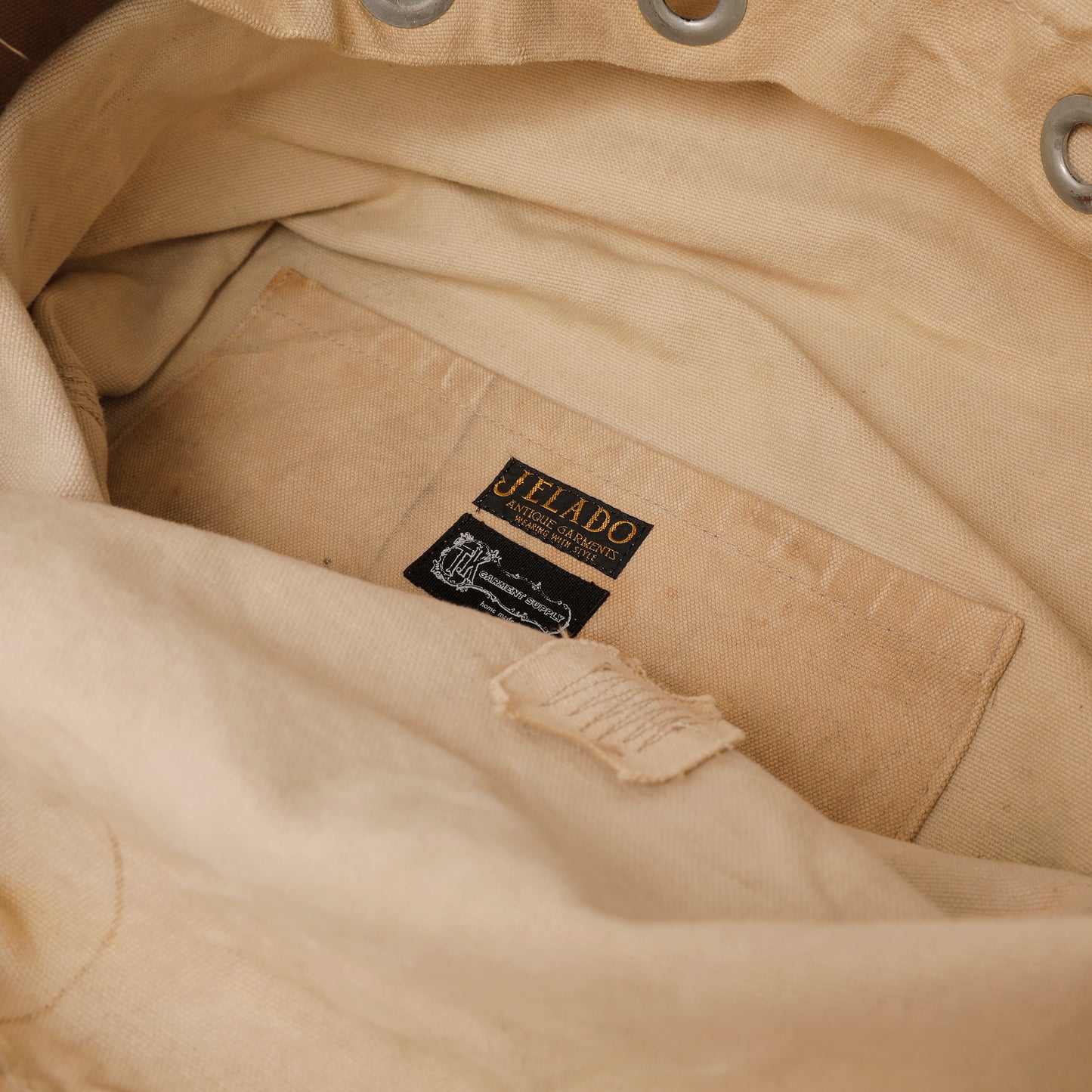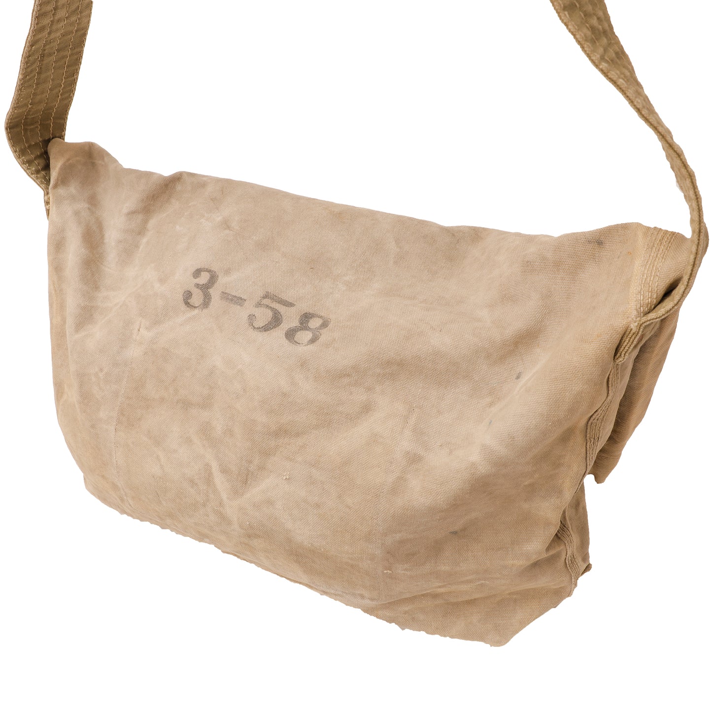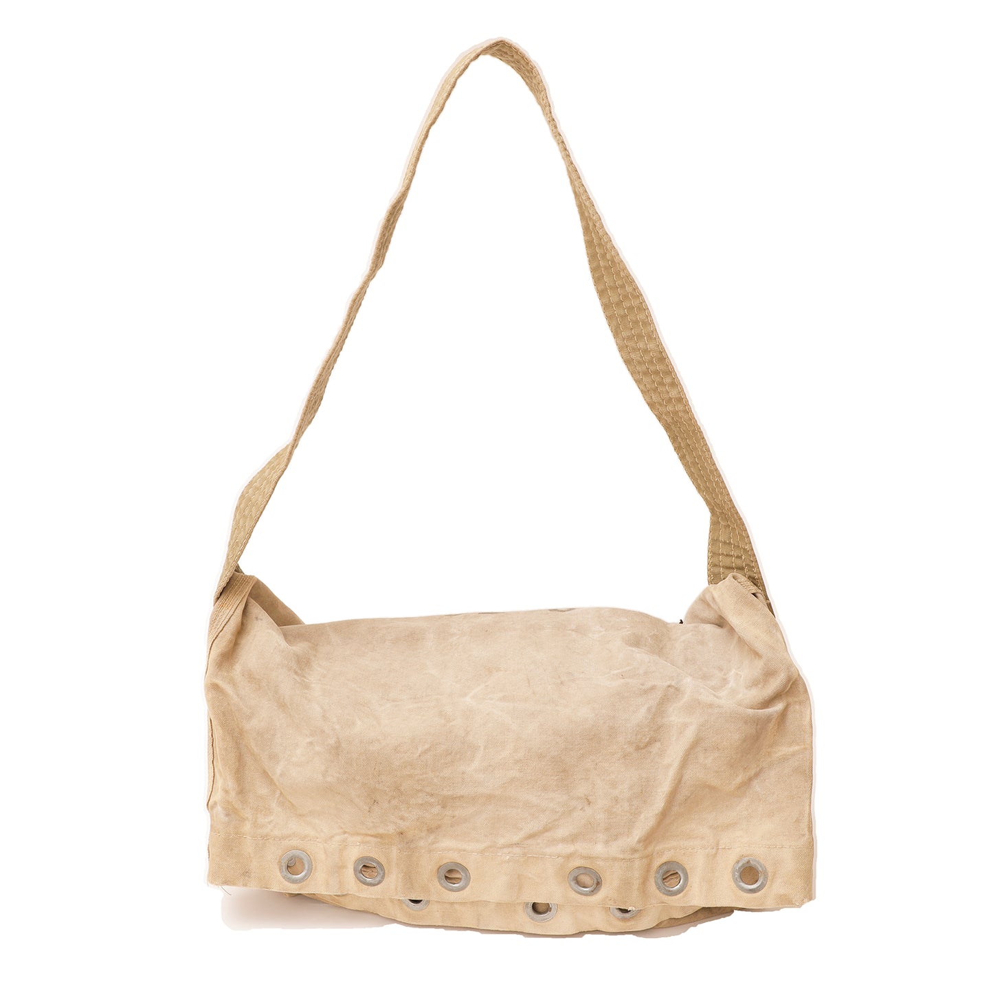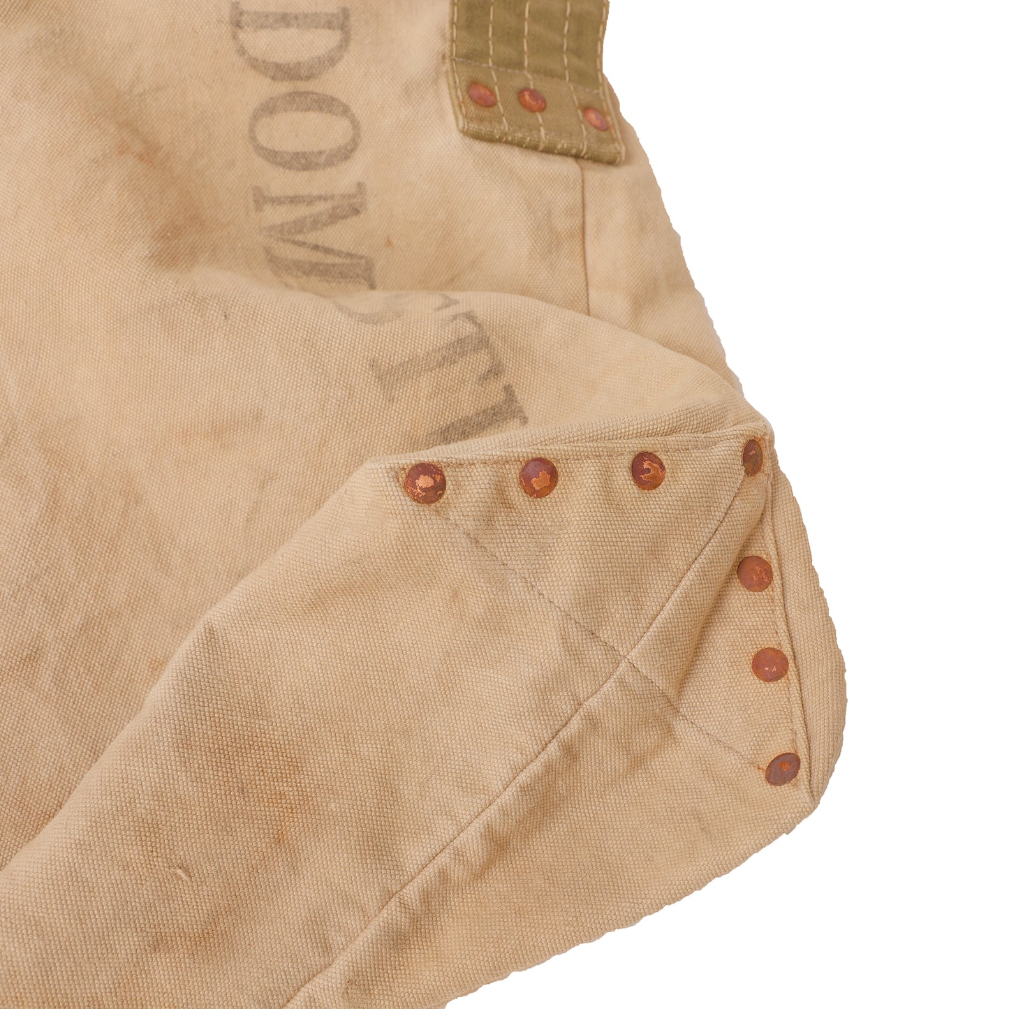 使 い 古 さ れ た ヘビーデューティー な ダ ッ フ ル バ ッ ク を 解 体 • 再 構 築 し 、 現 代 の ラ イ フ ス タ イ ル に 再 投 影 し た 「 Paperboy Satchel」、20 世 紀 初 頭 の アメリカで 新 聞 配達 を し て い た 少 年 た ち が 使っていた ショルダーバッグ に ル ー ツ を 持 つ 。 厚 手 の キ ャ ン バ ス 生 地 と 大 容 量 の 設 計 は 、 雨 や 風 から 新 聞 を 守り な が ら 、 ストリート を 駆 け 抜 け る タ フ な 仕 事 に 耐 え る た めのものであった 。 " Paparboy Satchel "は ヴ ィ ン テ ー ジ Duffie Bag を最 大 限 に 活かしミニマル に 再 構 築 。 元 の 開口 に機 能 性 を 持 た せ フ ラ ッ プ に 。 別 の ヴ ィ ン テ ー ジ 生 地 で 幅 広 の ストラップ 部 分 を 作 成 す る こ と で Paperboy Satchel の イ メ ー ジ ヘ 。現 在 の Messenger Bag と も 思 え る デ ザ イ ン に 。 左 上 部 は アメリカ 合 衆 国 郵 便 公 社 (USPS)な ど の 郵 便 機 関が 国 内郵 便 物の 運搬用 に 庭 際 に 使 用 し て い た 郵 便 袋の ヴ ィ ン テ ー ジ 。 左 下 の こ の 厚 手 の カーキ の キ ャ ン バ ス は お そ ら く WWII前期の アメリカ軍が 使 用 し て い た Barracks Bagで あ る と 思 わ れ る 。