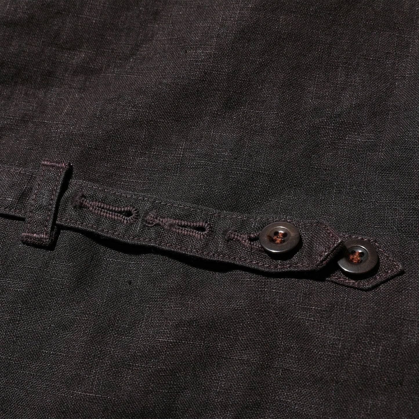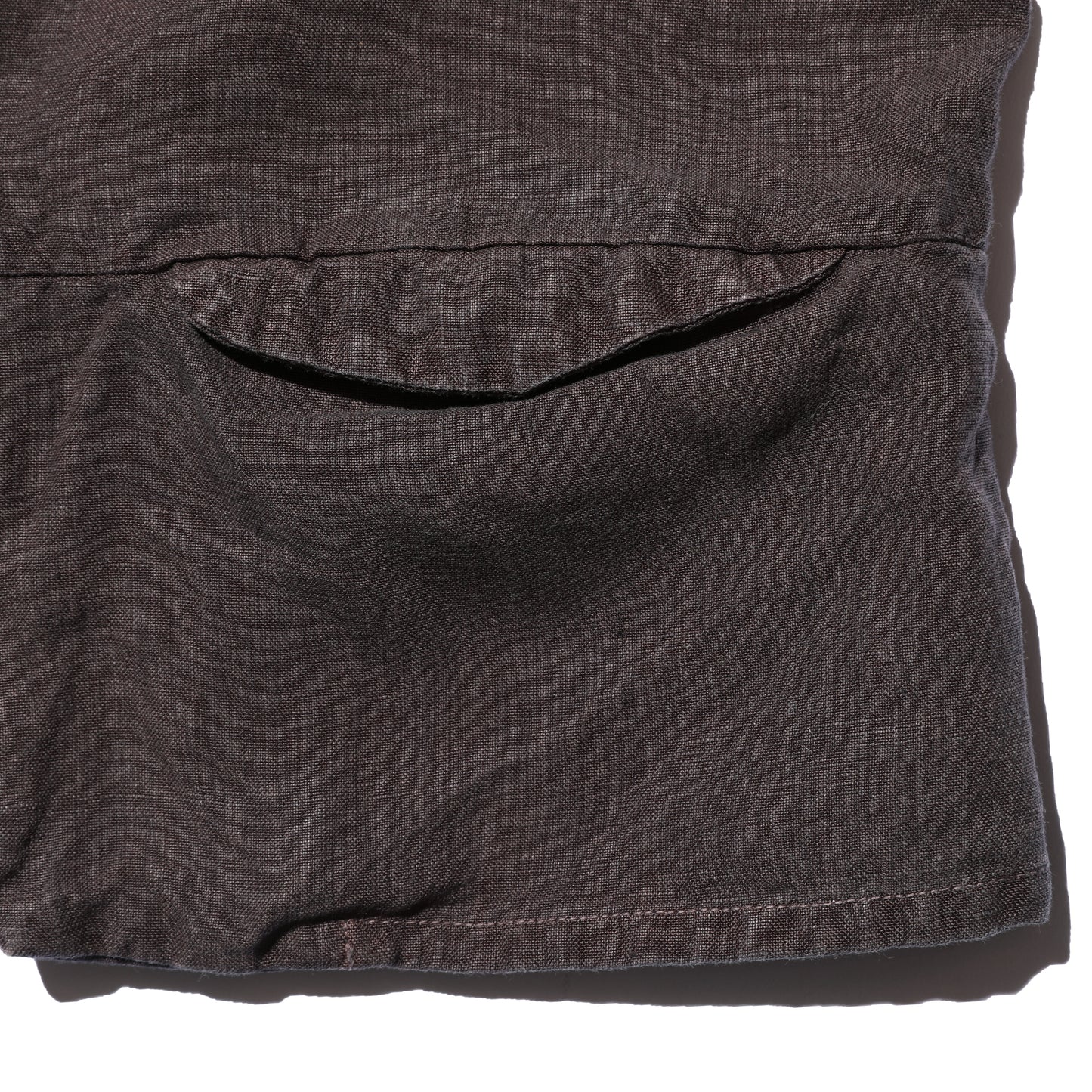 「1735 リネンコート」とセットアップの「1760 リネンベスト」は、18世紀後半に、ヨーロッパの男性が上着の下に来ていた「中着」とも呼ぶべき袖付きの襟なしジャケットであったウエストコートから袖がなくなり、今日で言うベストとなった頃のものをベースにしたものです。現在、ベストをイギリスではウエストコートと「コート」と上着を指す言葉で表現していることや、フランス語ではベスト(veste)という言葉がジャケットを意味することは、18世紀を通して、この「中着」が袖付きの丈の長いものから、丈が短くなり袖が無くなった歴史から来るものです。元は袖が付いていたウエストコートから袖が無くなった1760年当時。その時代のウエストコートのスタイルを取り入れ、やや薄手のリネンで作った 、1760 リネンベストは気軽に着ることができるベストです。