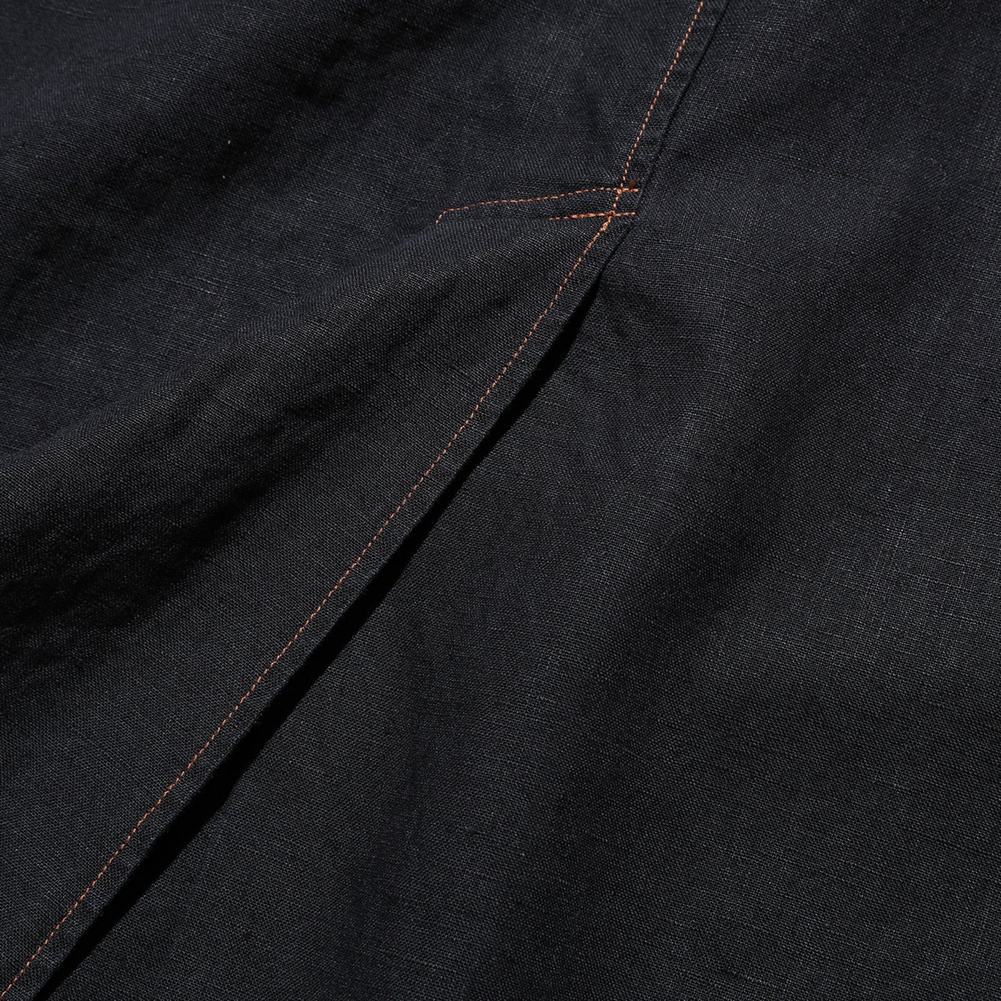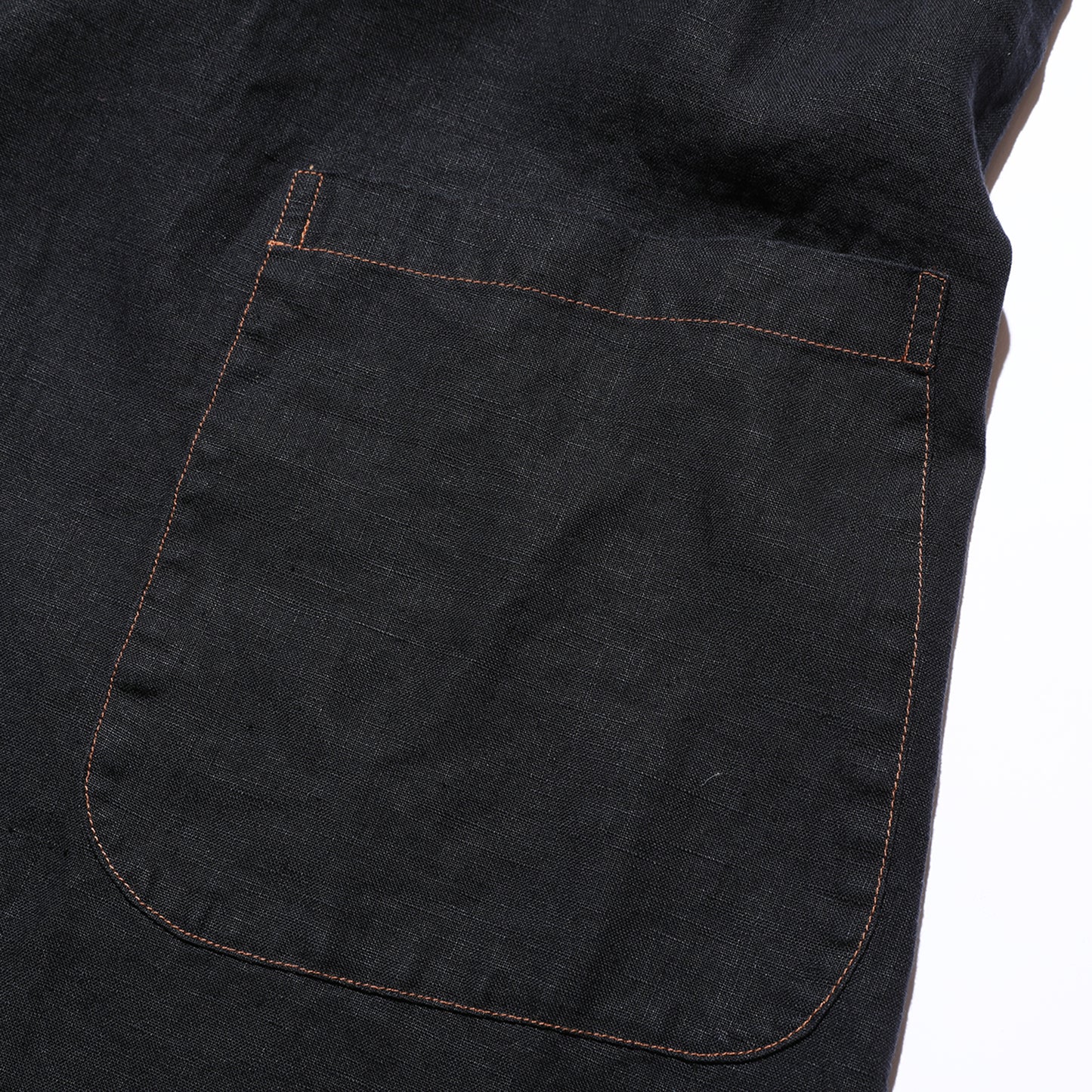 古い時代のフランスのアトリエコートは、リネン素材のものが多く、襟の形などにアメリカのものとは違ったスタイルが垣間見られます。そうしたものをイメージしてデザインした、リネン素材のアトリエコート。リネンの持つ自然で素朴な風合いと古き良き時代のテーストが、ワークスタイルに柔らかさとフランスらしい洒脱さを加えます。
