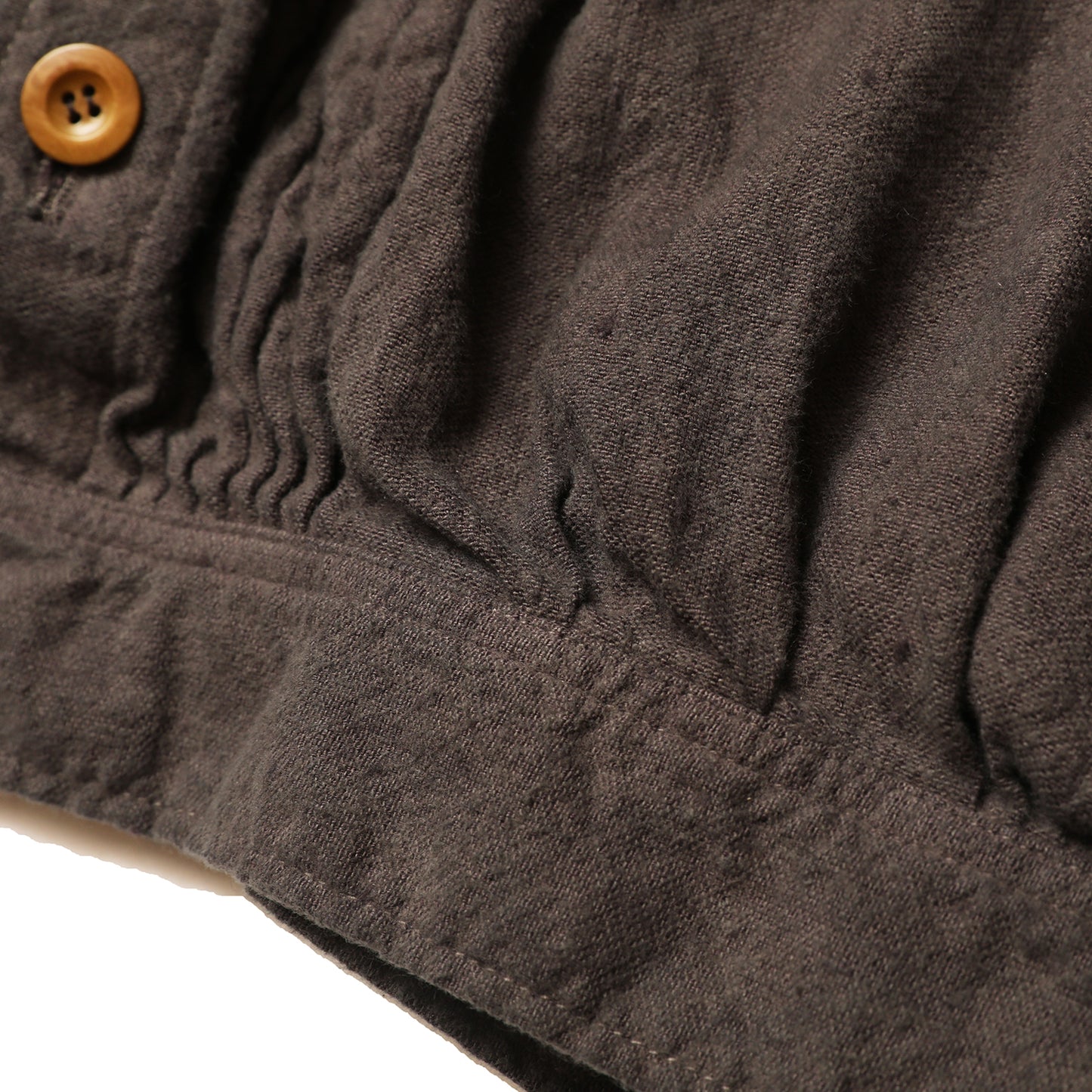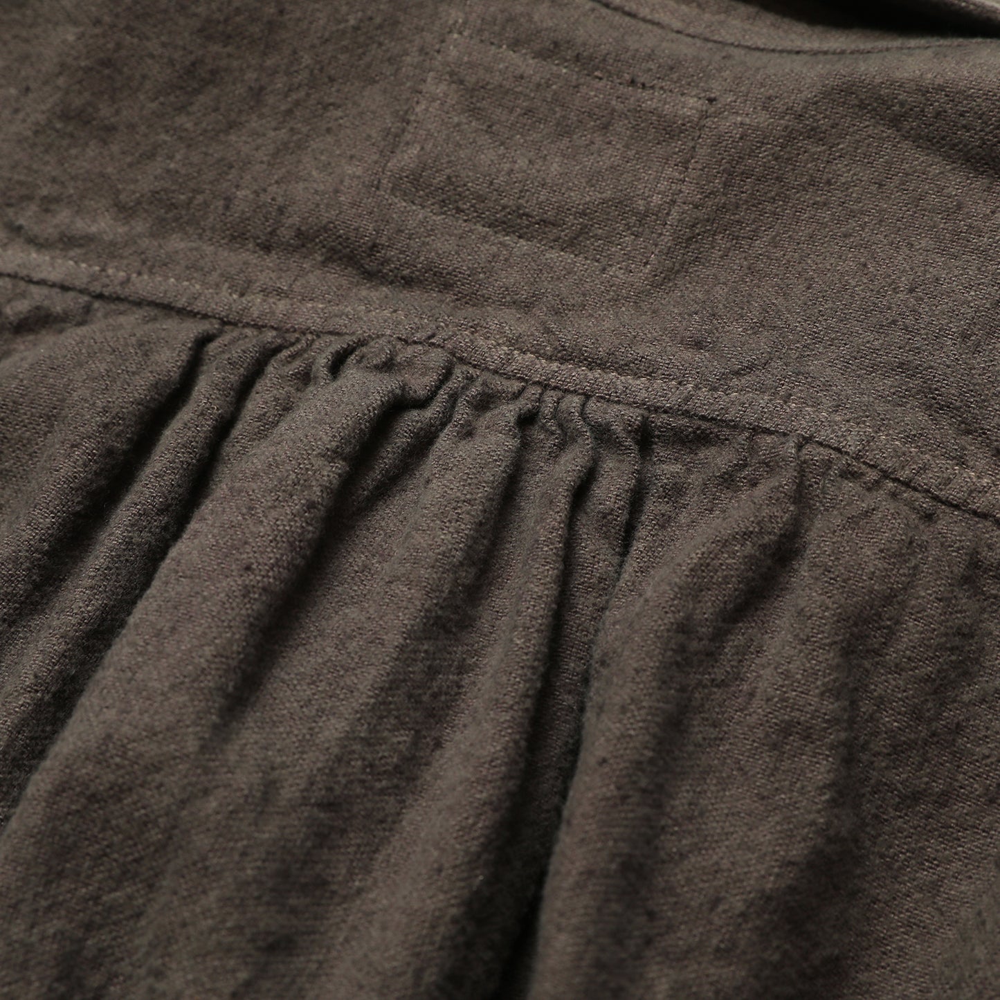 ブランドの定番アイテムとなったフレンチワークブラウスを、ネップ、ケバ感のある、柔らかなコットン・リネン素材で作りました。