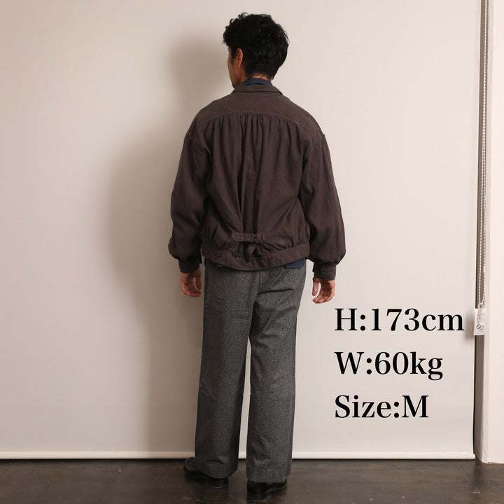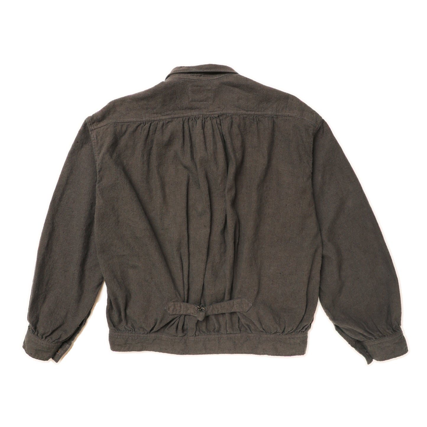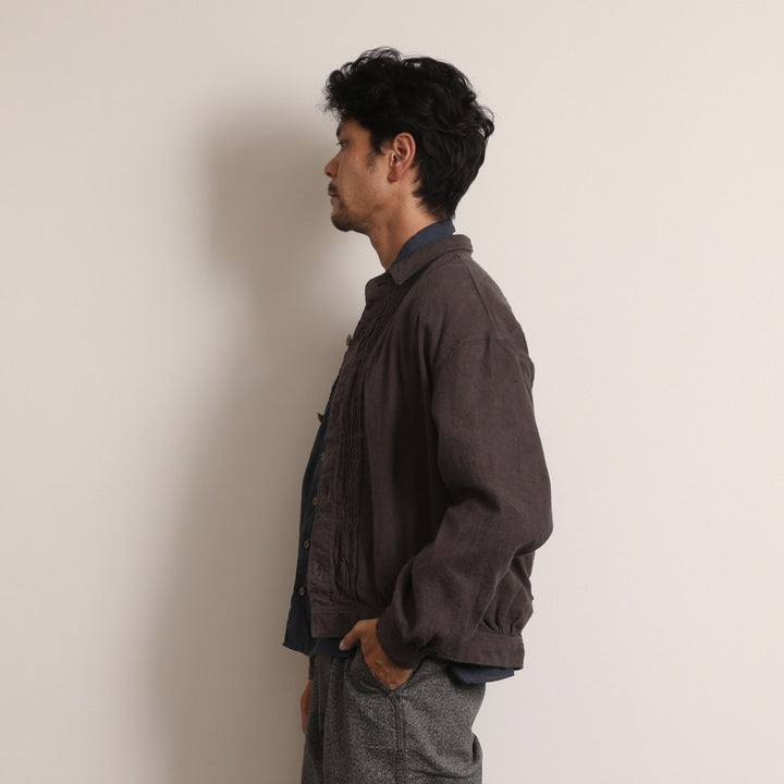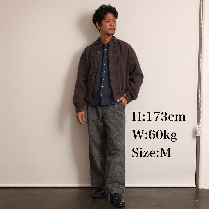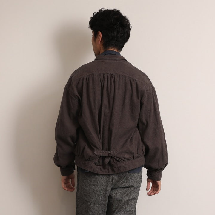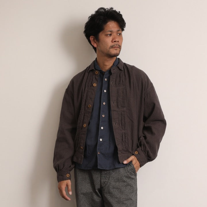 おそらく19世紀後半(1850〜1900年)にフランスで撮られた写真に見られるワークブラウスを着想元に。デニムジャケットの発展のごく初期に影響を与えたか、それとも影響を受けたものか……。ひょっとするとデニムジャケットのルーツかもしれない、と思わせるディテールを持つ興味深いジャケットです。どこかフレンチな雰囲気を持たせながら、デニムやチノなどに自然にコーディネートできるのも魅力です。