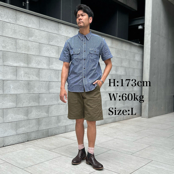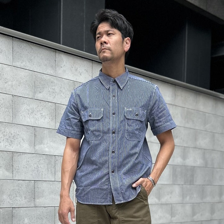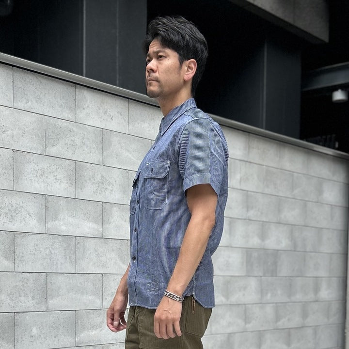 定番のUnionworkers S/S Shirt Chambrayを基に素材を変えて本製品を製作いたしました。