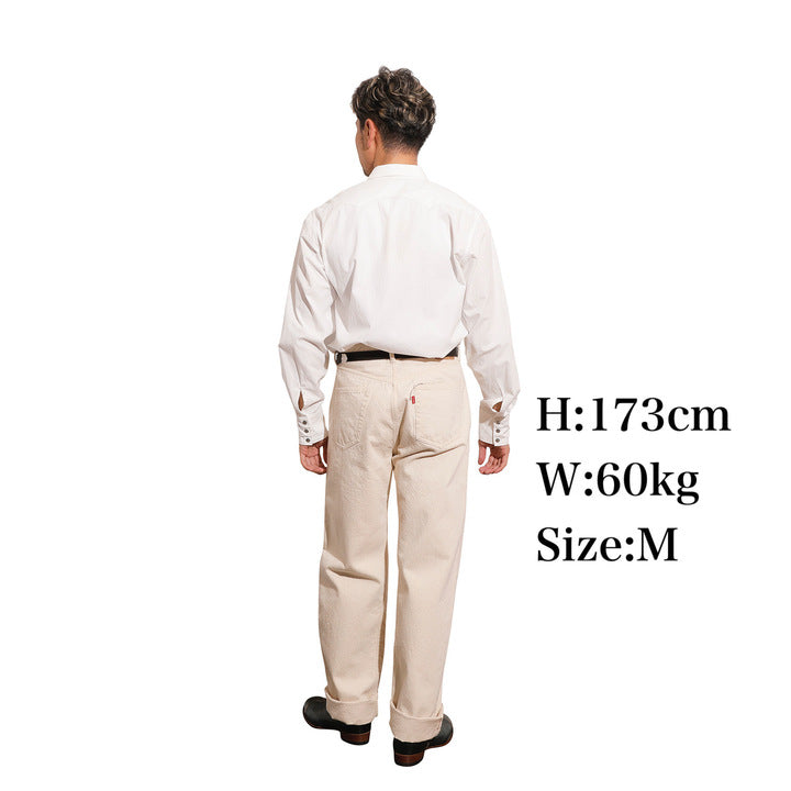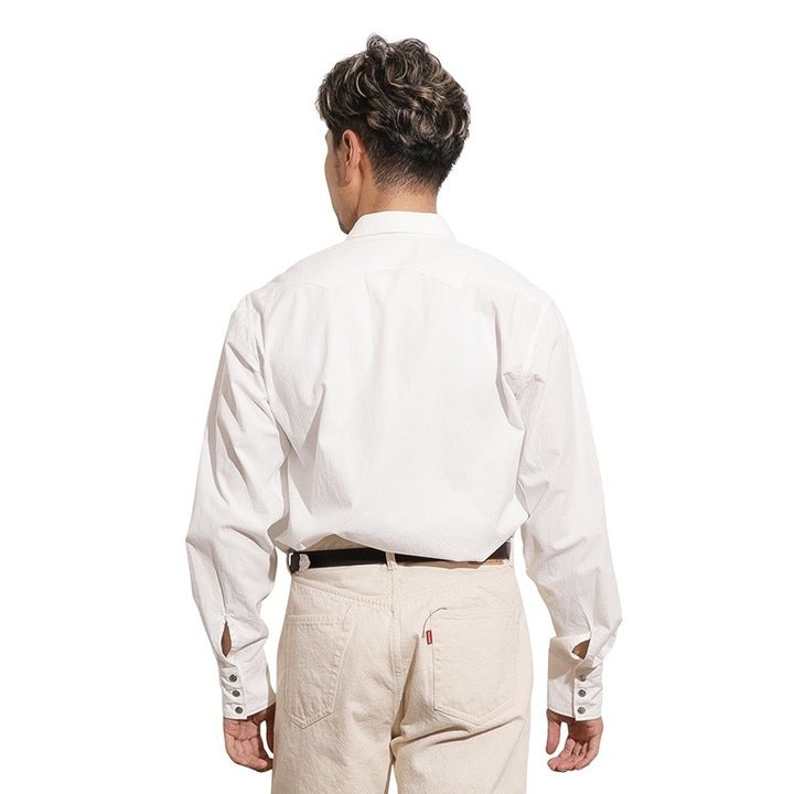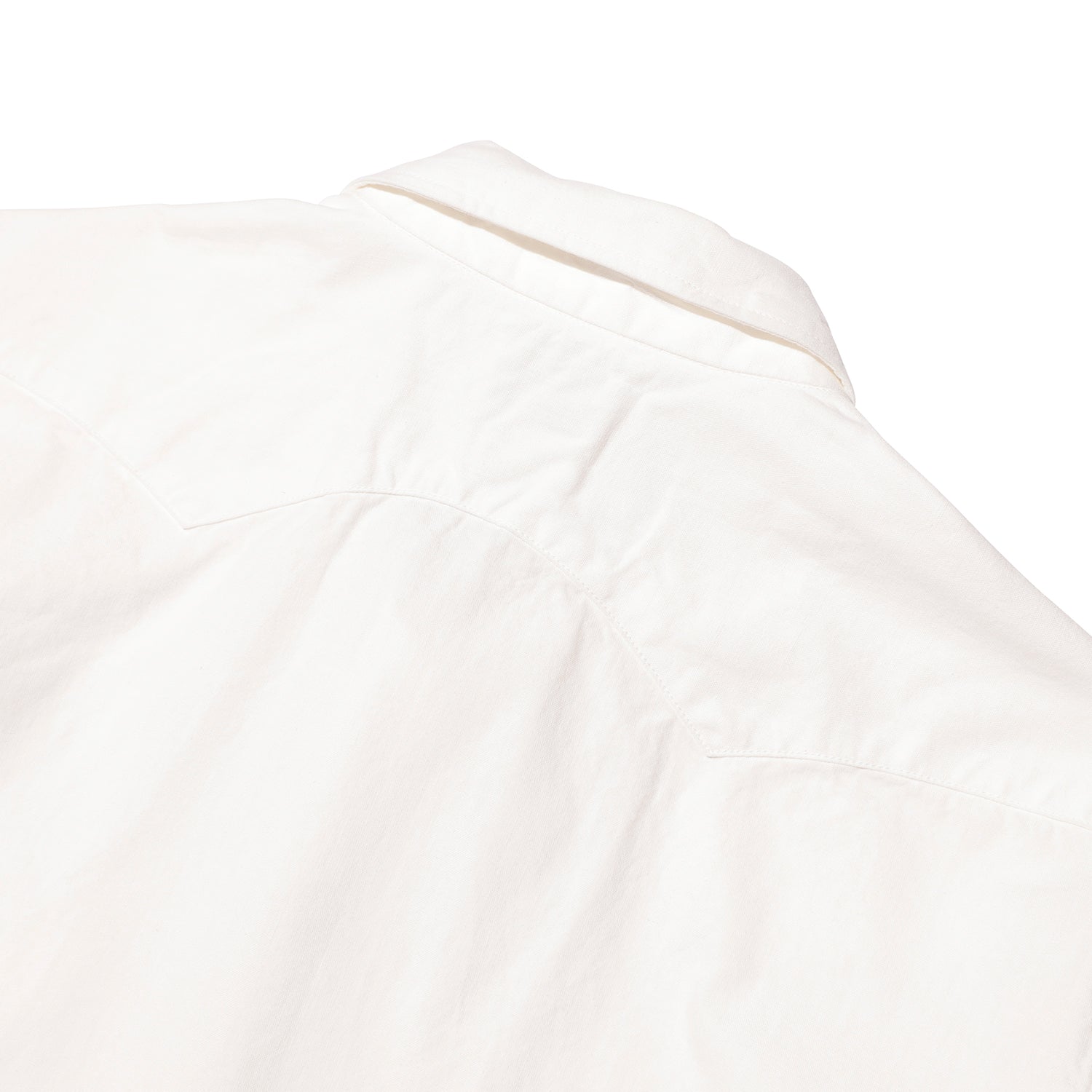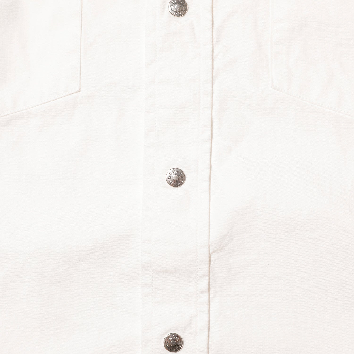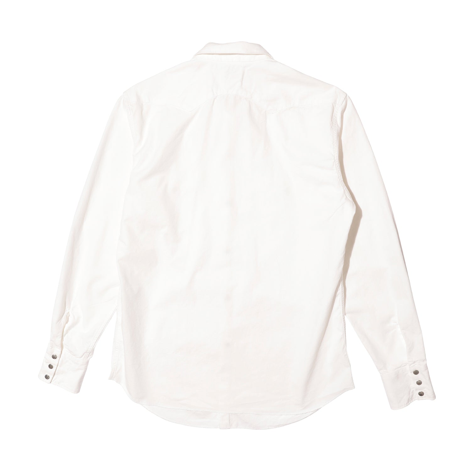 2026年のコレクションテーマは 「SHIBU-KAJI」。 1980年代後半から1990年代にかけて、東京・渋谷を中心に流行した渋カジをベースに、現代らしいエッセンスをプラスしたコレクションです。 若き頃の懐かしさを漂わせながらも、普遍的で長く愛用できるプロダクトを展開しています。 その中でも注目したいのが、今では入手困難となったショートホーンのデニムウェスタンシャツ。 ヴィンテージの雰囲気を忠実に再現しながら、現代的なアレンジを加えた一着です。 当時のディテールを徹底的に研究し、リベット型のスナップボタンもオリジナルで製作。 素材には、春らしい軽やかさを感じるセルヴィッチ付きのホワイトシャンブレーを採用しました。 デニムやチノとの相性も抜群で、幅広いスタイルに活躍する汎用性の高い一枚です。