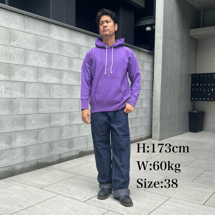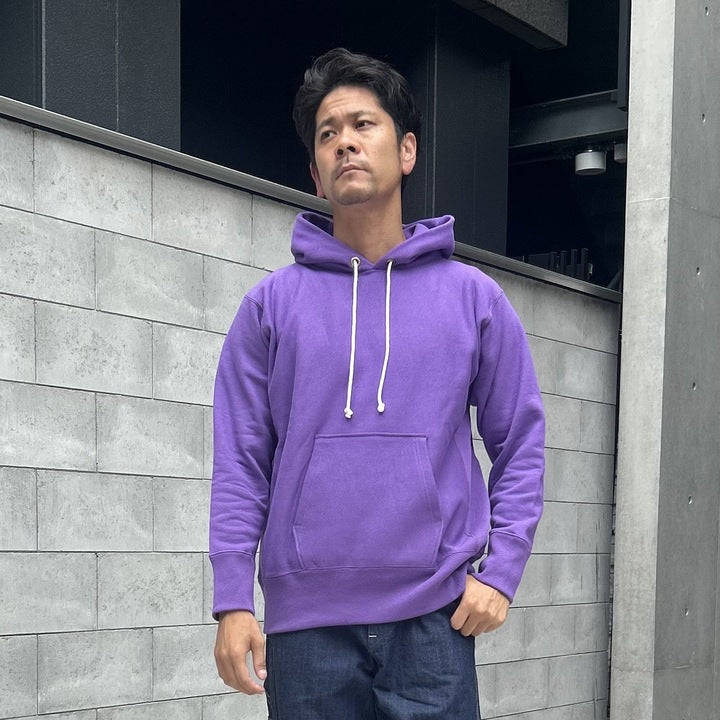 2025年のコレクションテーマは「THE CREAM OF THE CACHE」。これは「最上のコレクション」を意味し、JELADOの秘蔵ヴィンテージアイテムを再現します。その一環で、ライディングハイさんと新型WARM UP PARKAをリリース。クルーネック同様、ブラック、グラスグリーン、グレープの3色展開で、着やすいカラーリングを提案しています。80年代リバースパーカーをベースに縫製。素材は綿100%の米綿混空紡糸を採用。表糸14番手、中糸20番手、裏糸10番手で、裏糸のボリュームを増やすため編み機を改造。ゲージは12Gで編み立て、専用針を開発しました。起毛加工は米式起毛機でヴィンテージ特有の裏毛起毛を再現。脱脂処理で乾いた生地感や編み目の表情を忠実に再現しています。脇パネルはヴィンテージ仕様のフラットシーマを使用。堅い生地を縫い上げるため、優れた工場と連携しました。カラーは90年代の珍しい色を再現。昔懐かしのスタイルがよく似合う、そんなパーカーとなります。サイズはM、L、XL、50の4サイズ展開ですので、大型体型の方にもおススメです。