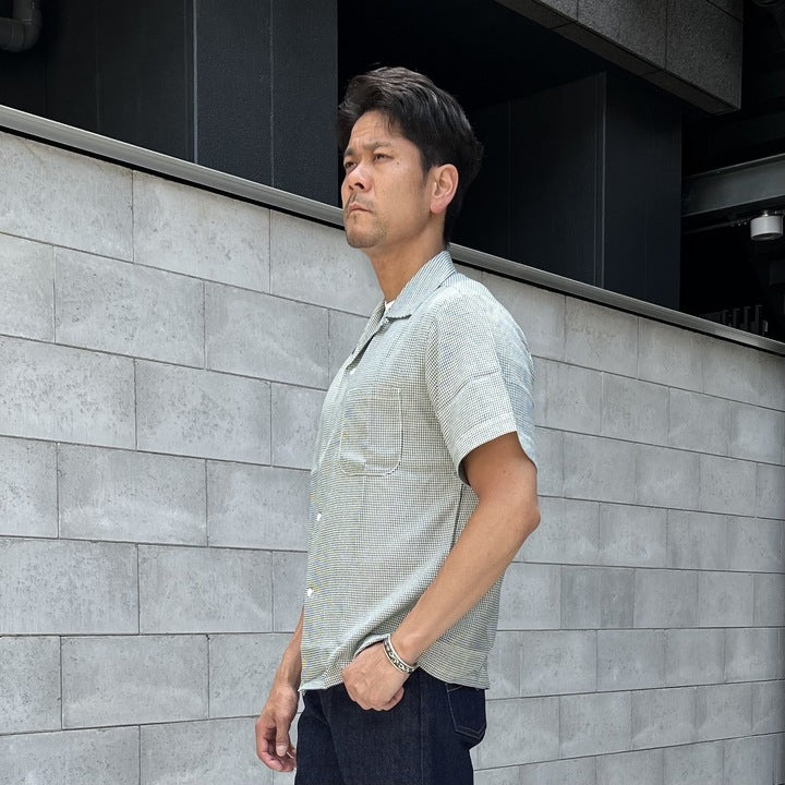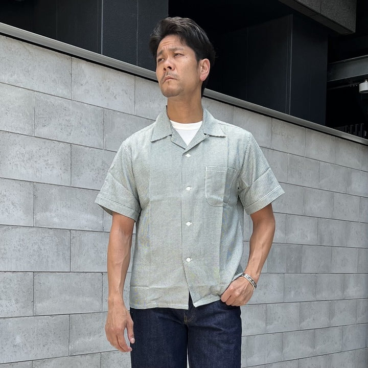 このオープンカラーシャツは、デニムやチノパン、ブラックデニムとも相性が良く、レーヨン生地の千鳥格子柄が特に目を引くアイテムです。
